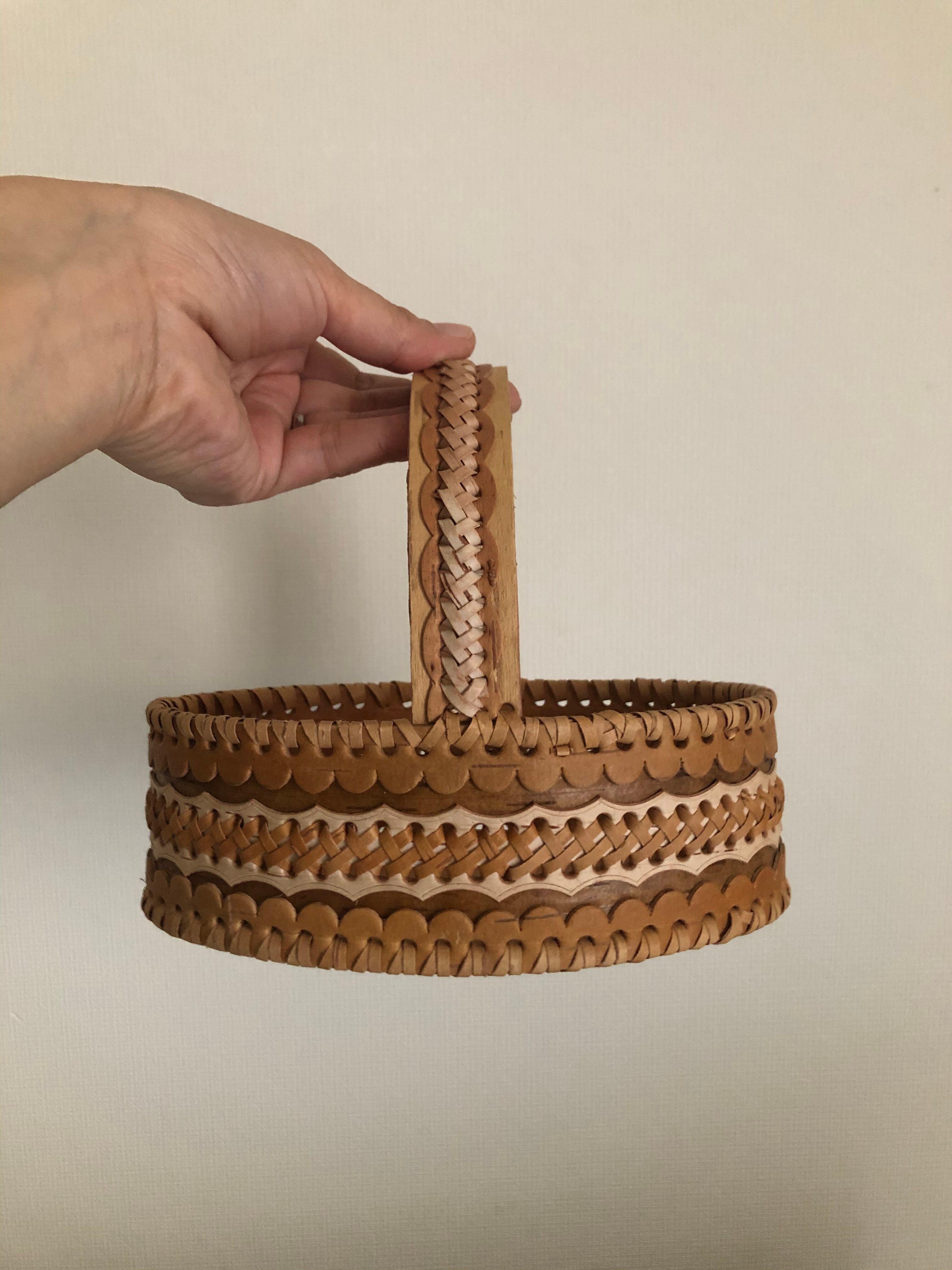 ロシアの白樺細工、ベレスタの持ち手付きの楕円型のバスケットなります。