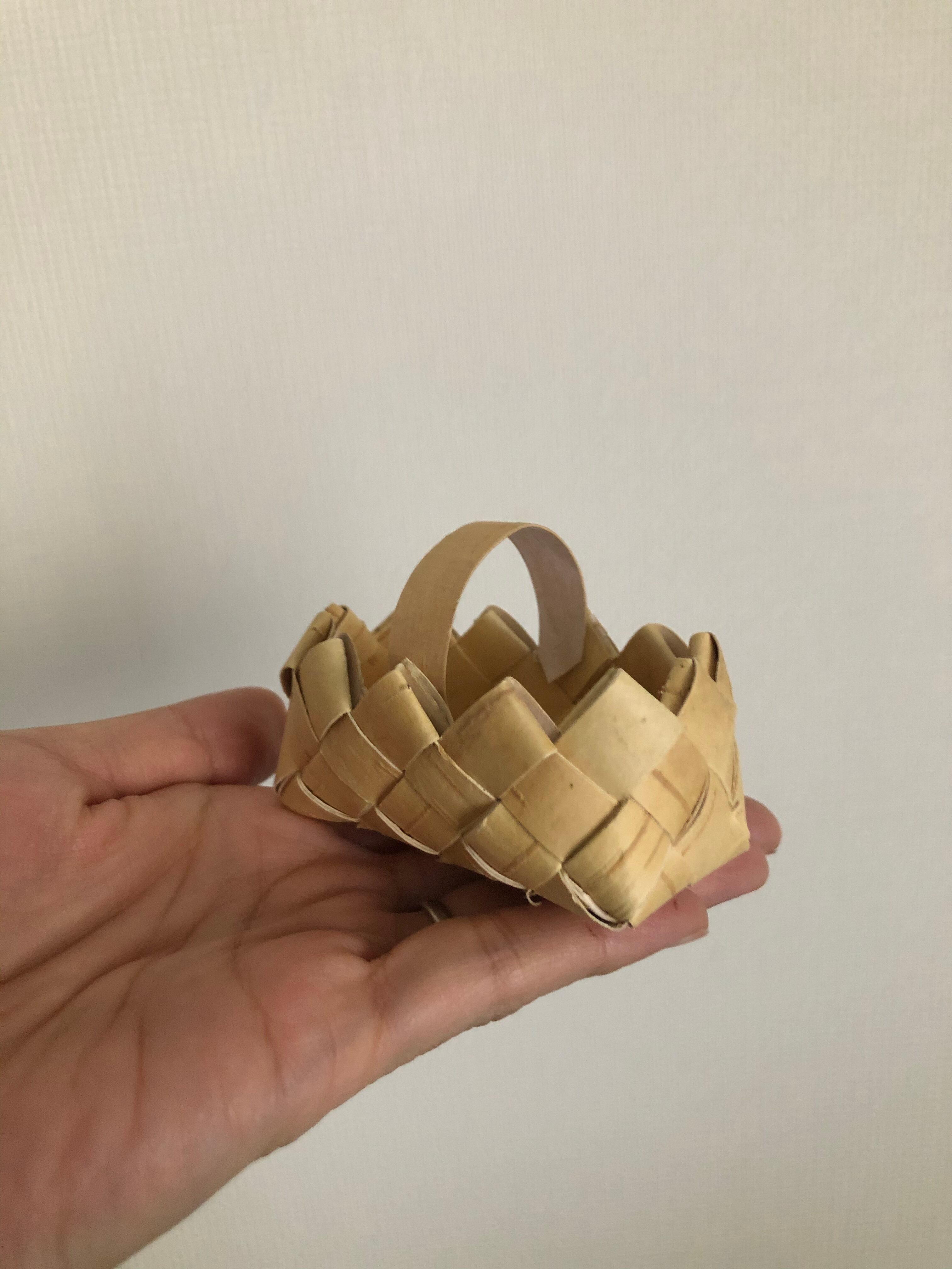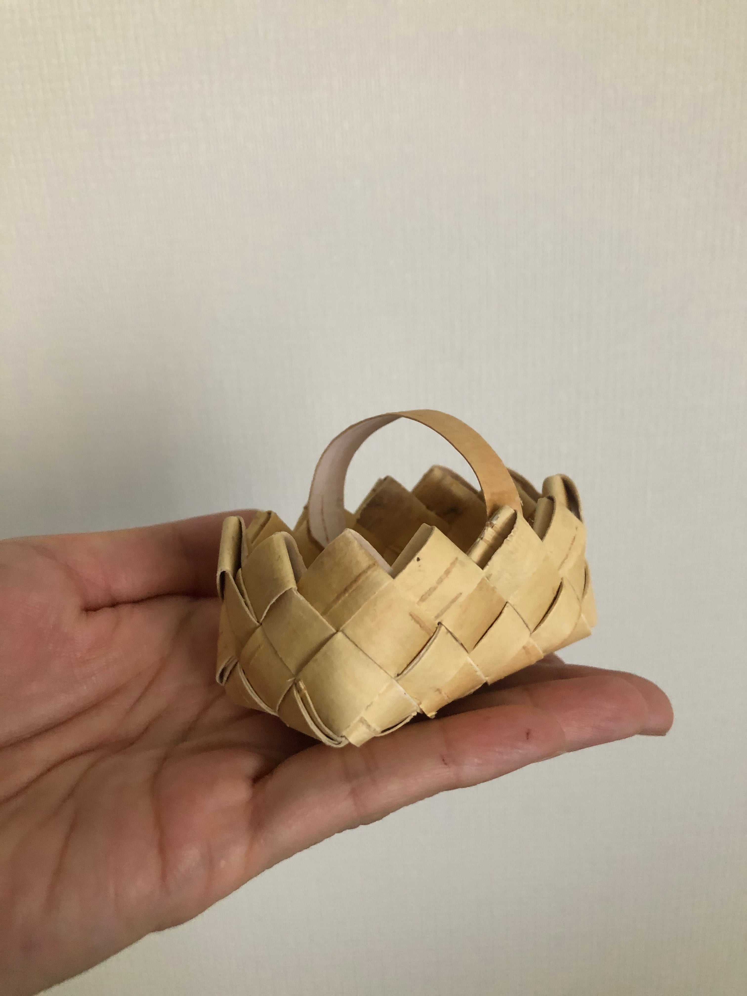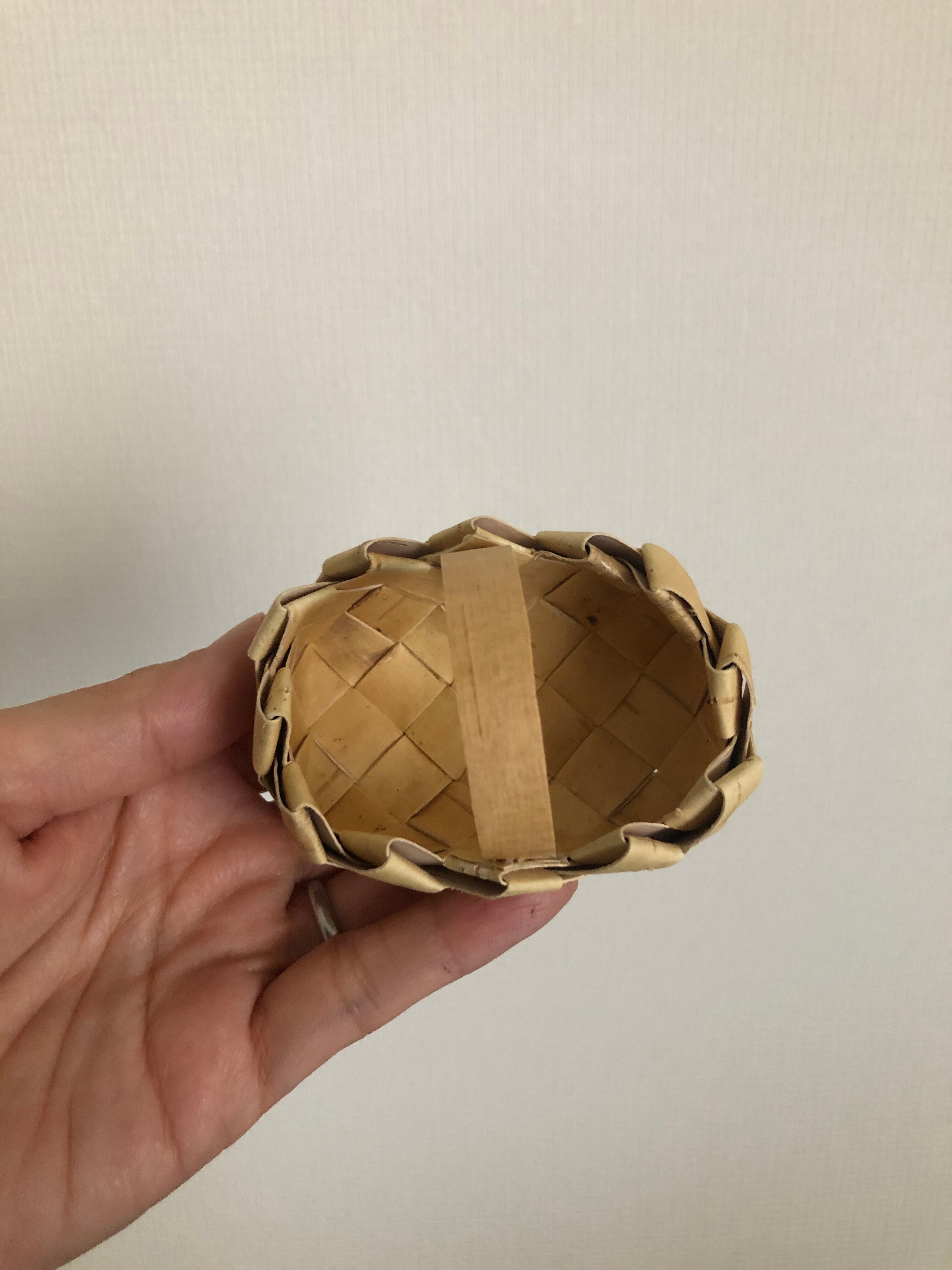 上のギザギザと、手のひらに乗るミニチュアサイズがとても可愛らしい、ナチュラルな白樺のバスケット♫