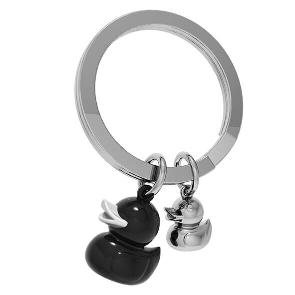 モノトーンの色合いが素敵な、アヒルのモチーフが付いたキーリングです♫