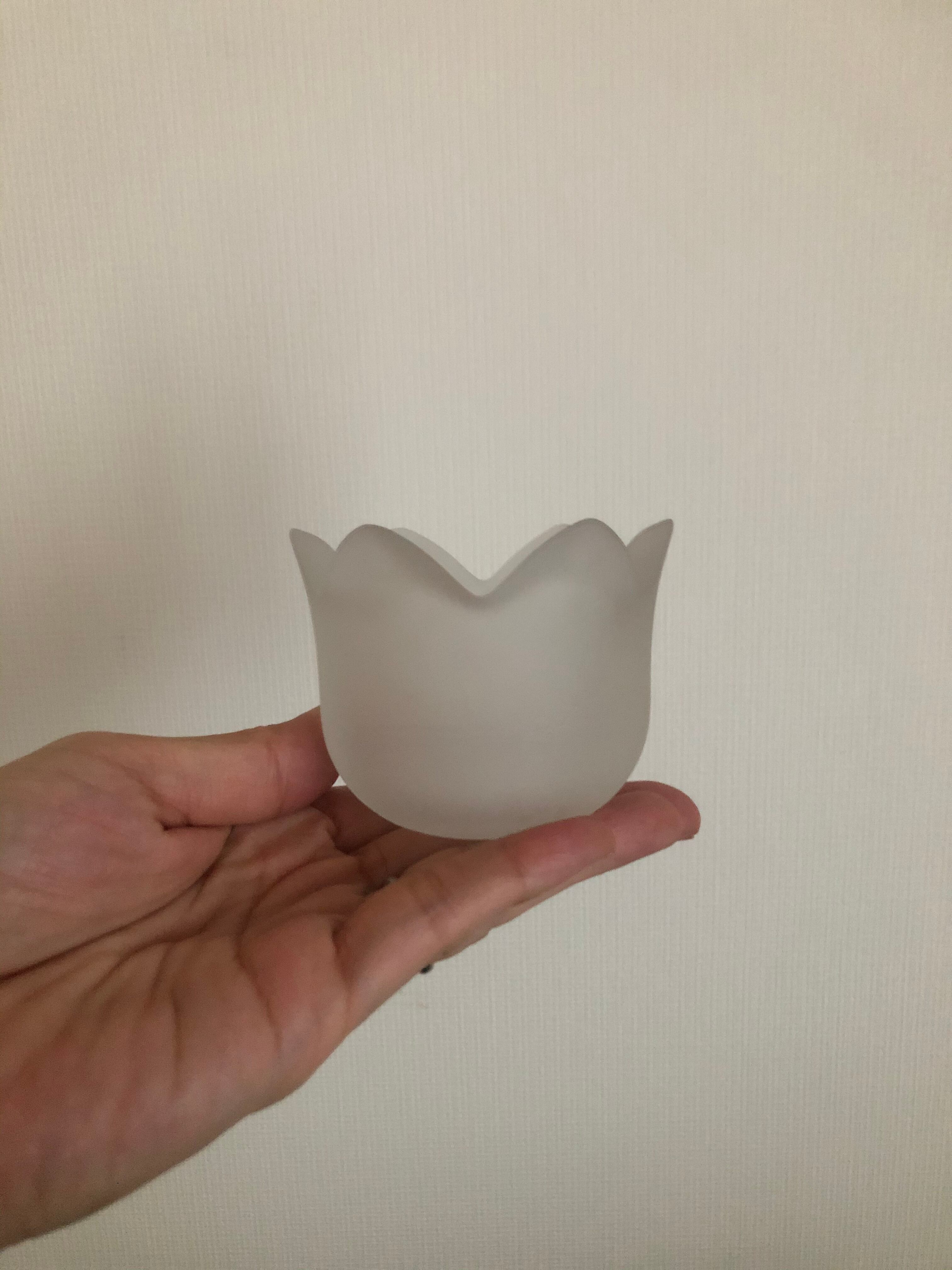 フロストガラスのキャンドルホルダーはキャンドルを灯した時の、優しい灯りが魅力的です。日中の自然光の下と、夜の部屋の明かりでまた違った雰囲気を楽しめます♫