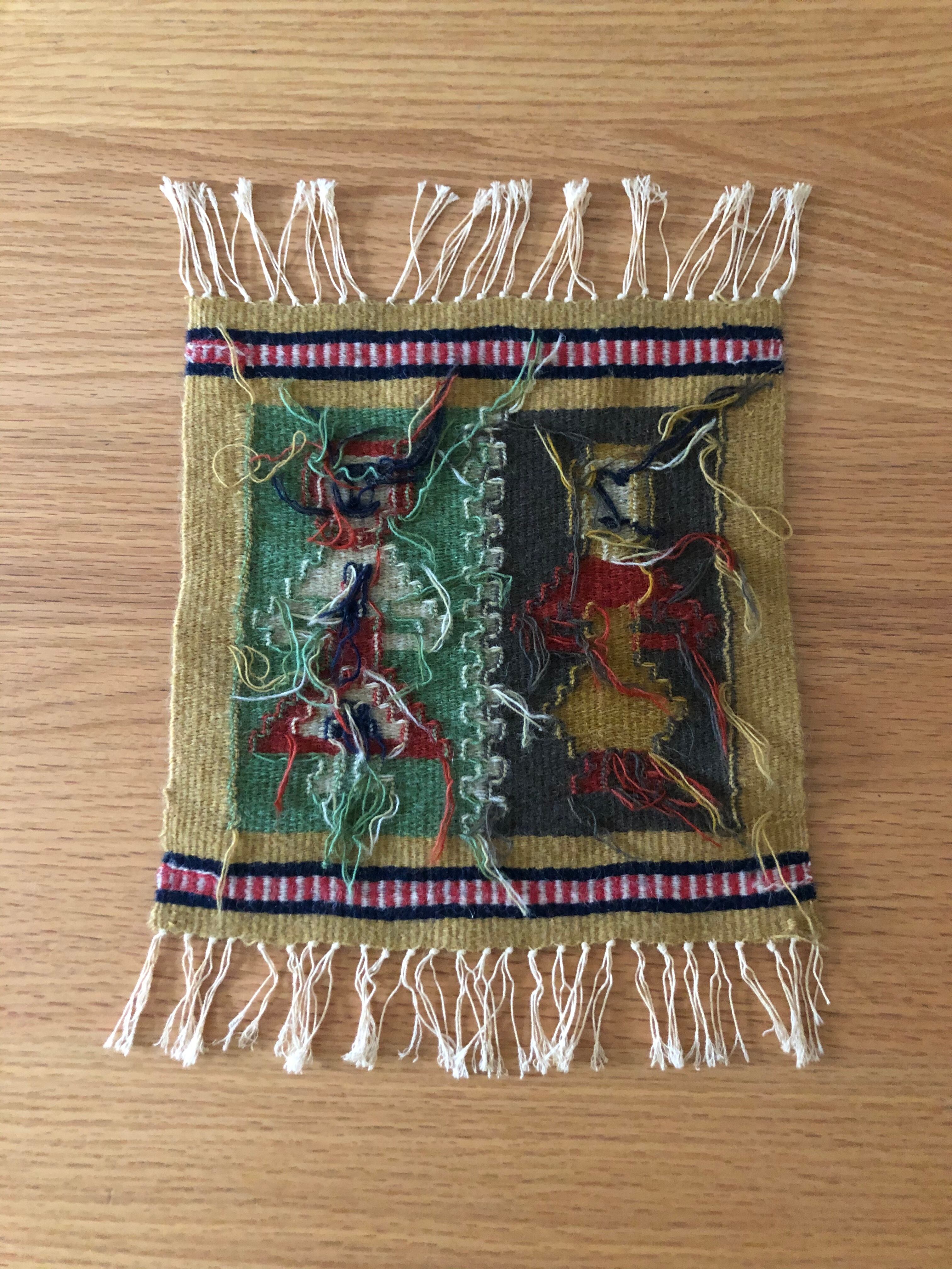 フリンジ部分にごく小さなシミが見られる箇所がございますが(写真 5枚目参照)、特に目立ったダメージなく、ヴィンテージ品にしては状態良好です。