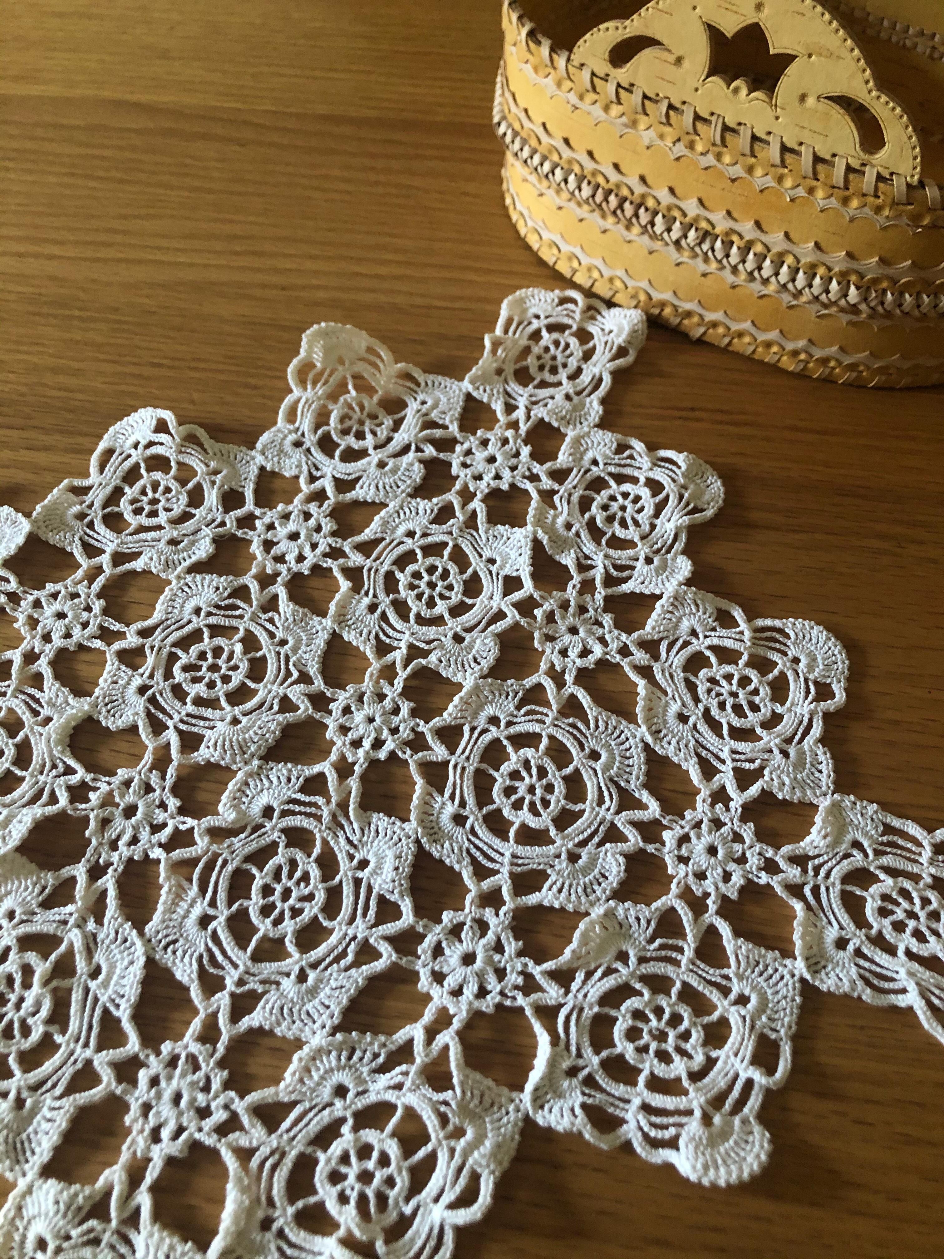 スウェーデンのヴィンテージのクロッシェレースのドイリーになります。