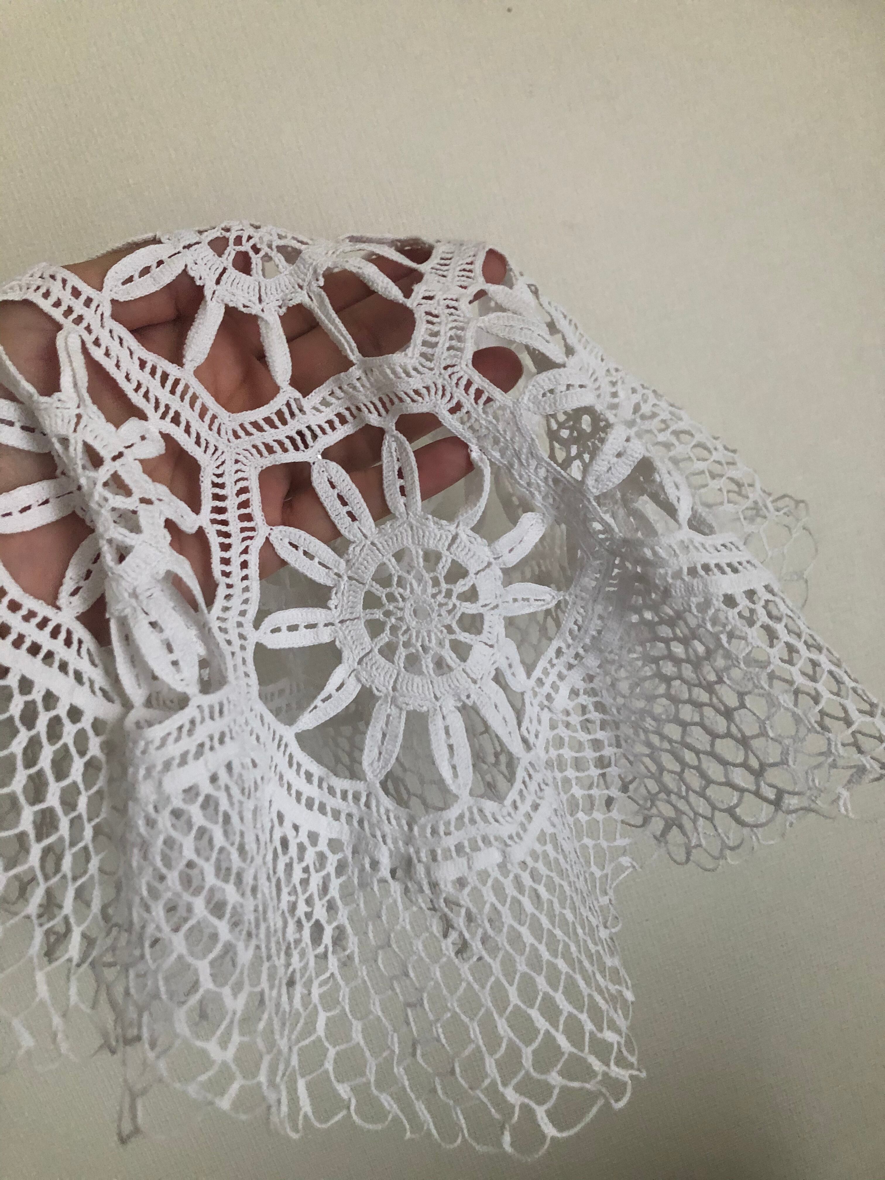 中央のお花モチーフと回りの繊細なかぎ針編みが綺麗です。