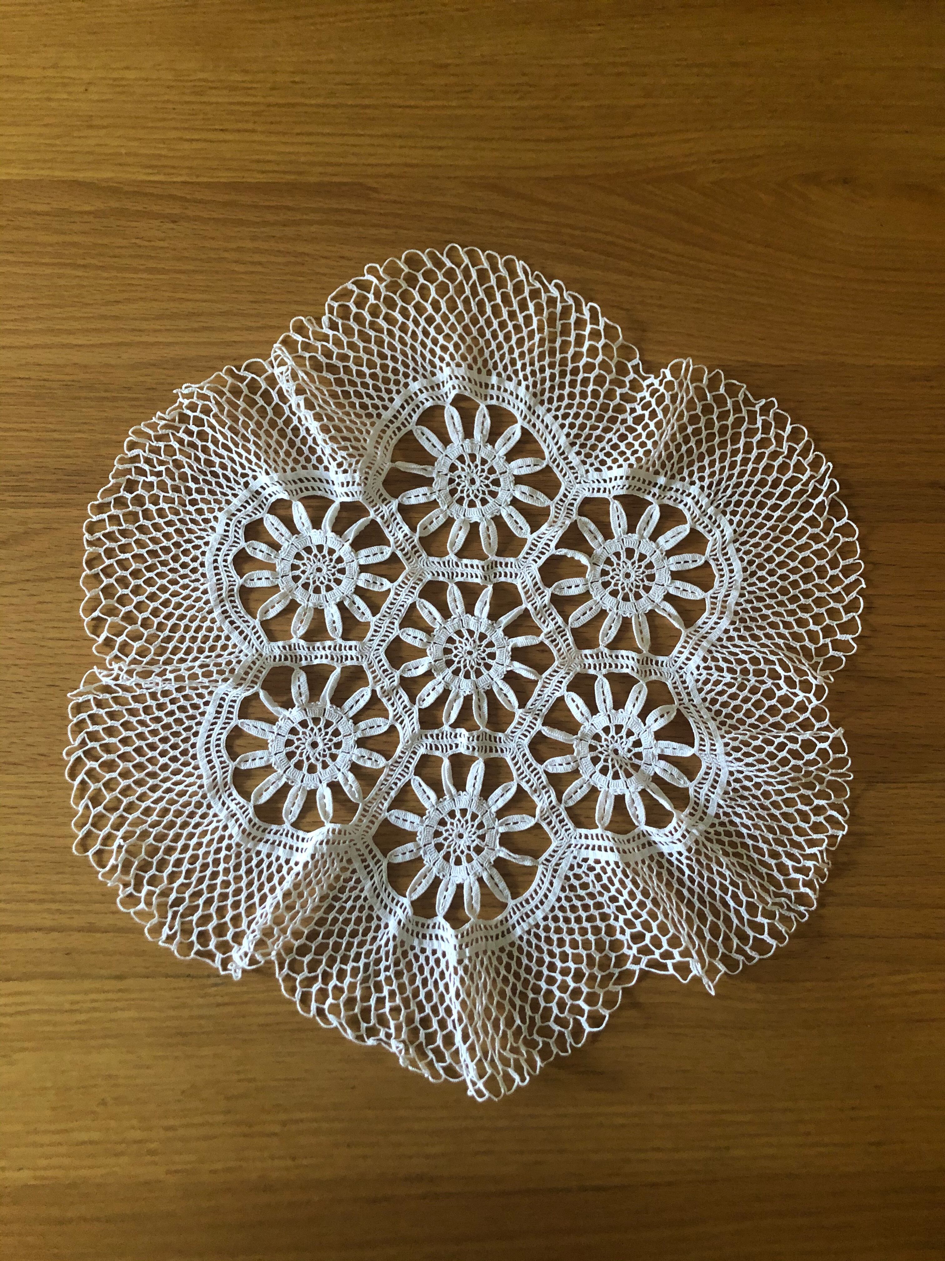 スウェーデンのヴィンテージのクロッシェレースのドイリーになります。