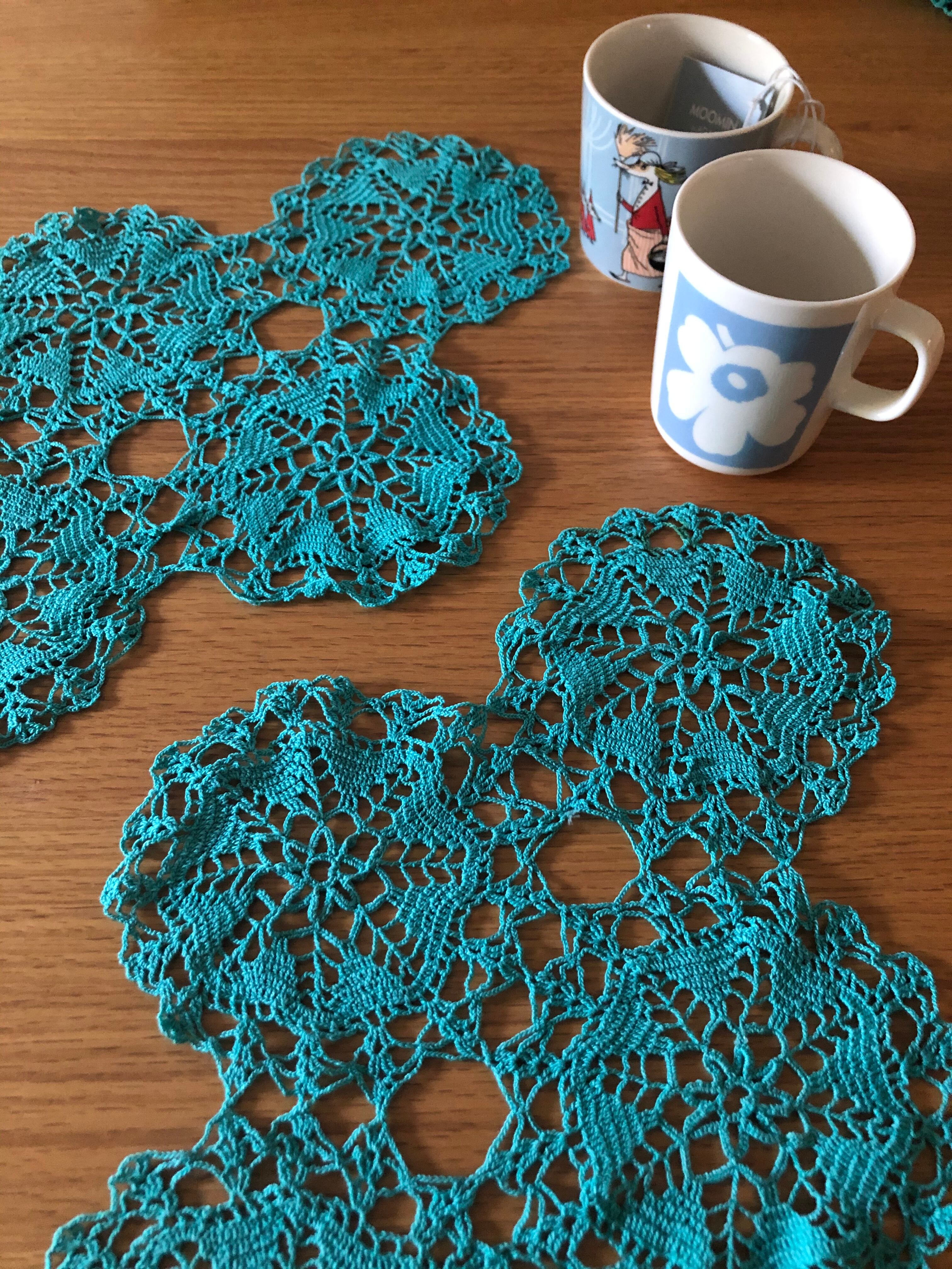 北欧 クロッシェレースのドイリー ターコイズ 2枚セット ヴィンテージ