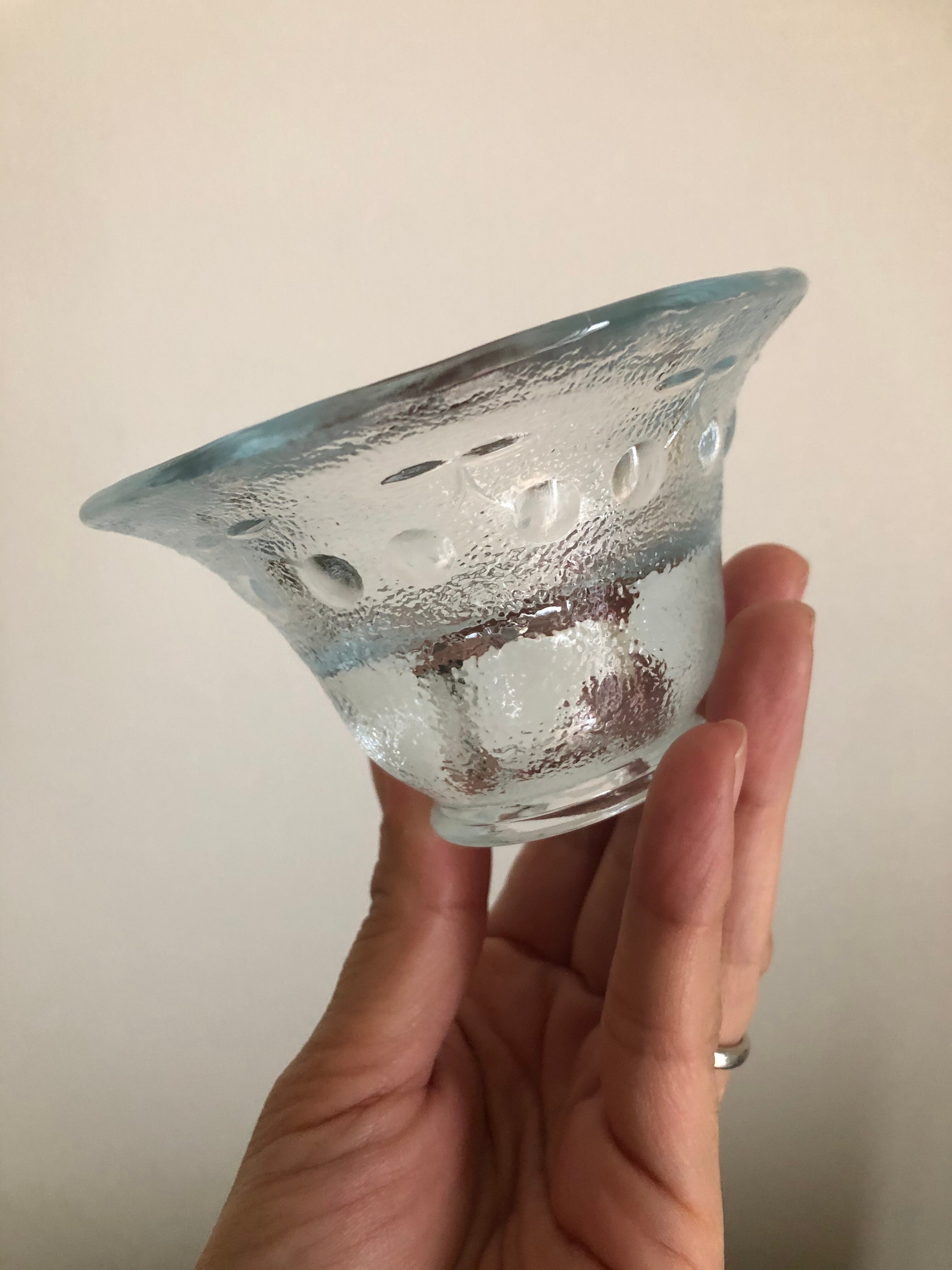 フィンランドのガラスメーカー、Riihimaen Lasiリーヒマエンラシ 社の KIRSI キルシ シリーズのガラスのキャンドルホルダーです。