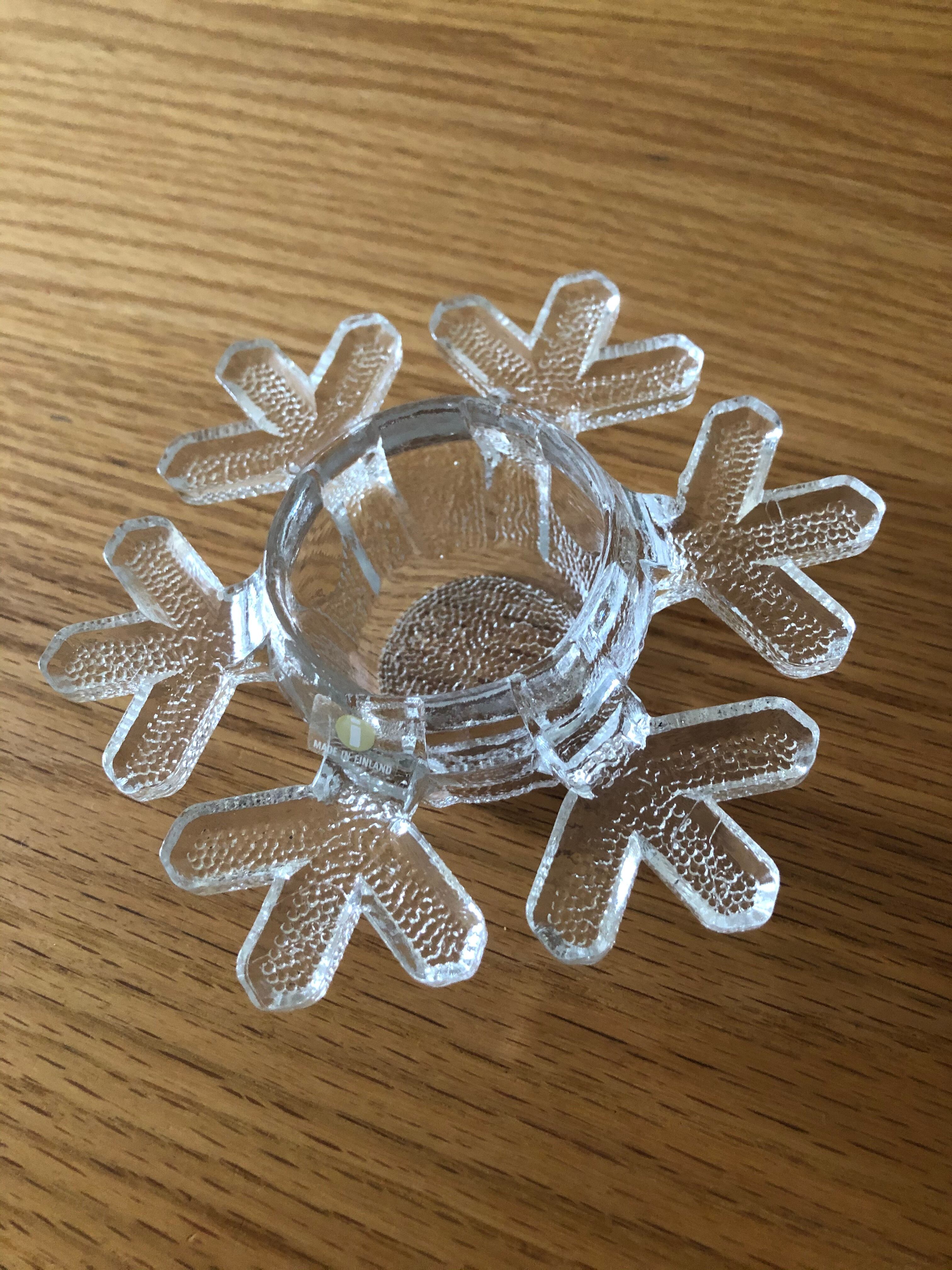 ガラスの雪の結晶の形が素敵なキャンドルホルダー。