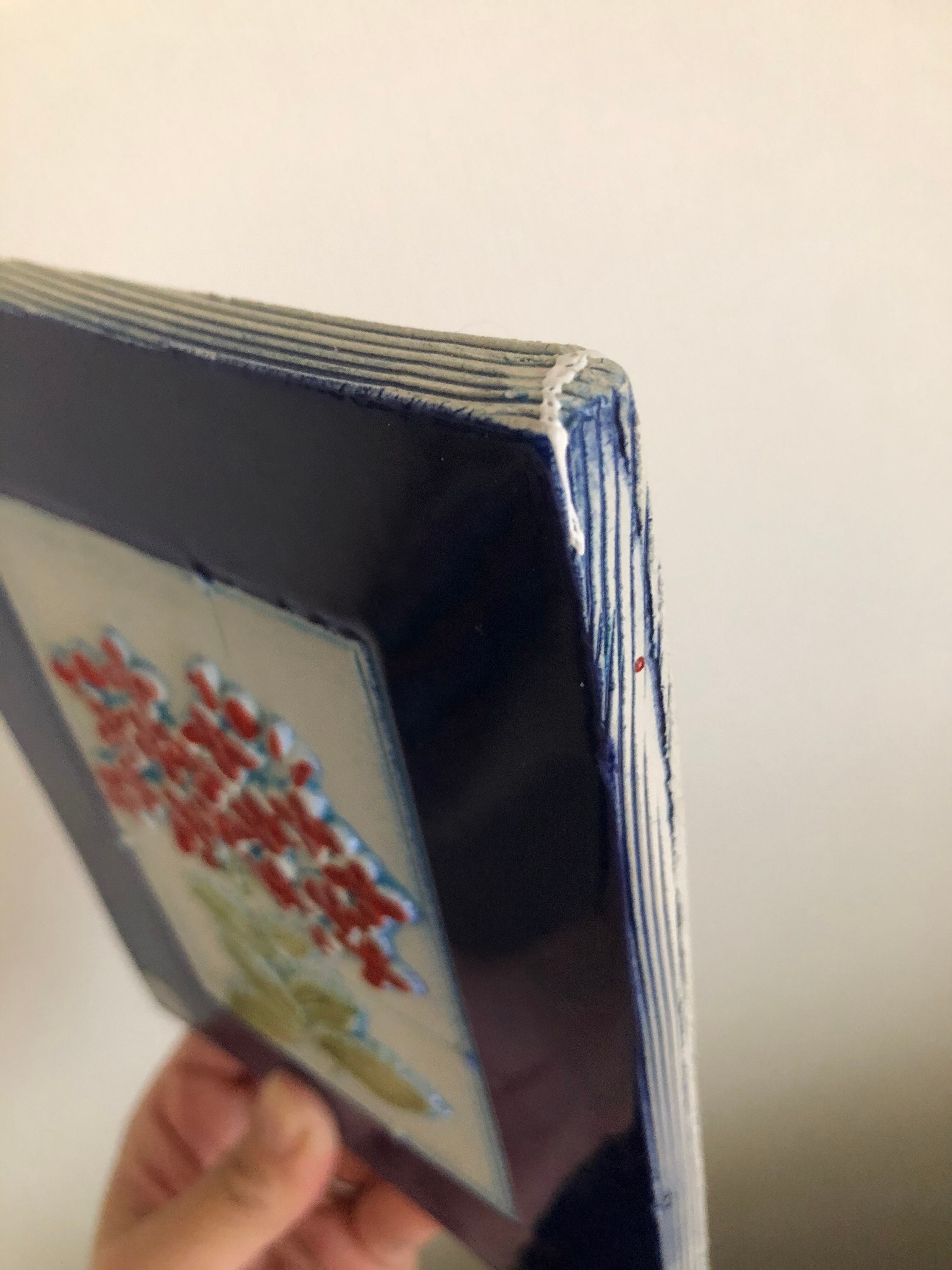 タイルのような艶やかな濃いブルーと白をベースに、立体的な赤いアジサイの絵柄が、シックで可愛らしい1枚♫