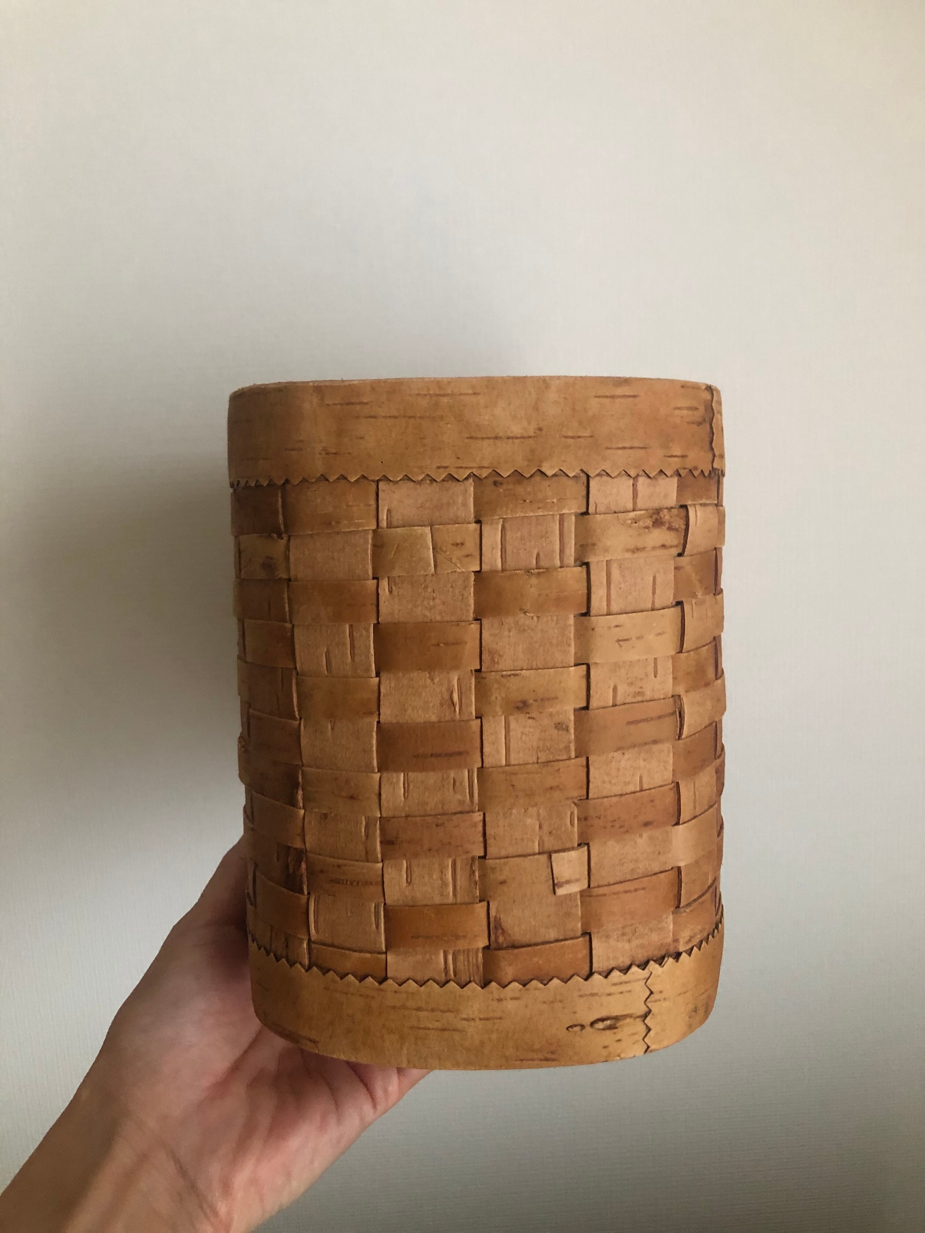 キャニスター本体と蓋の白樺編みが、とても凝っていて可愛らしいキャニスター。
