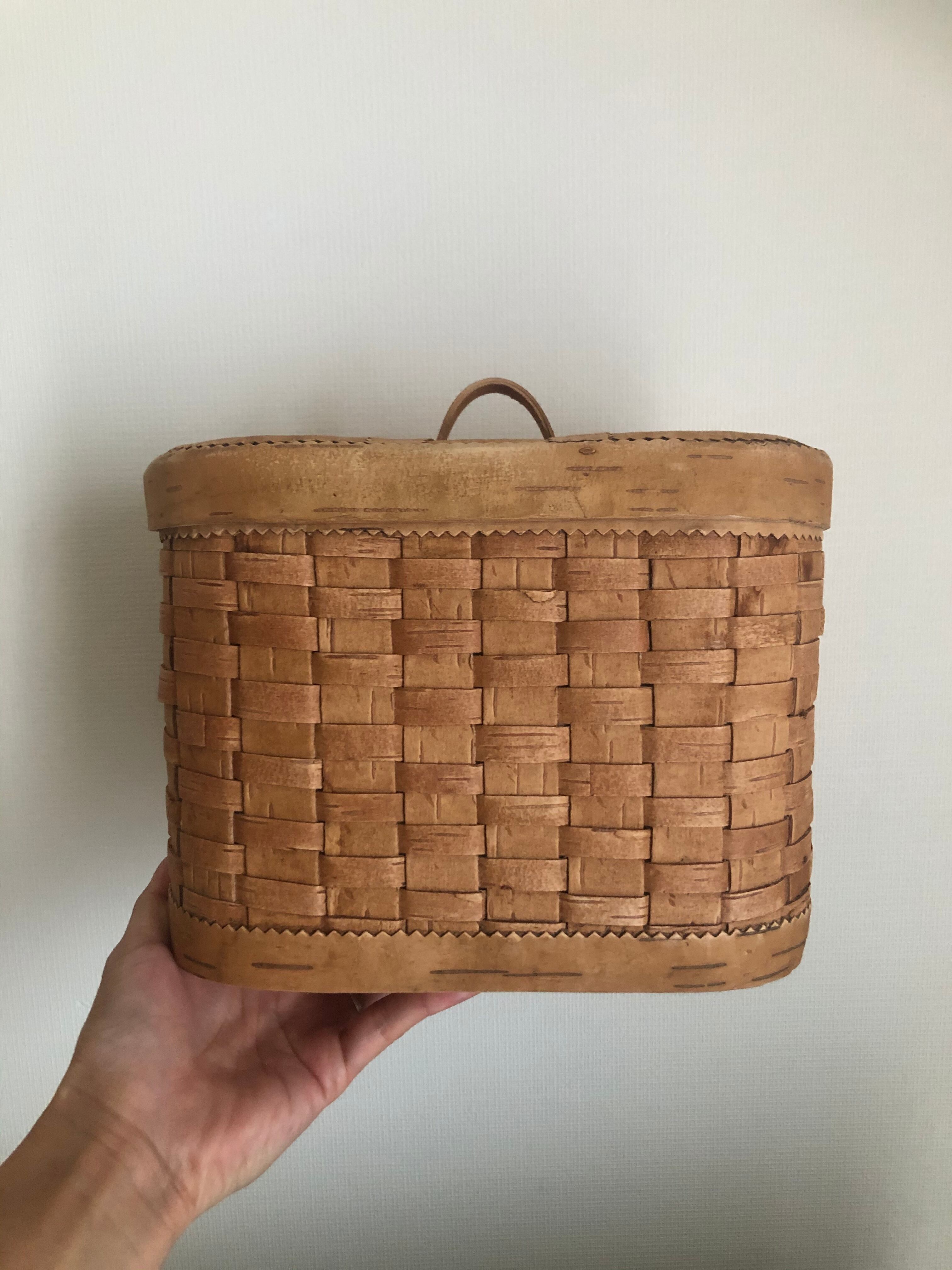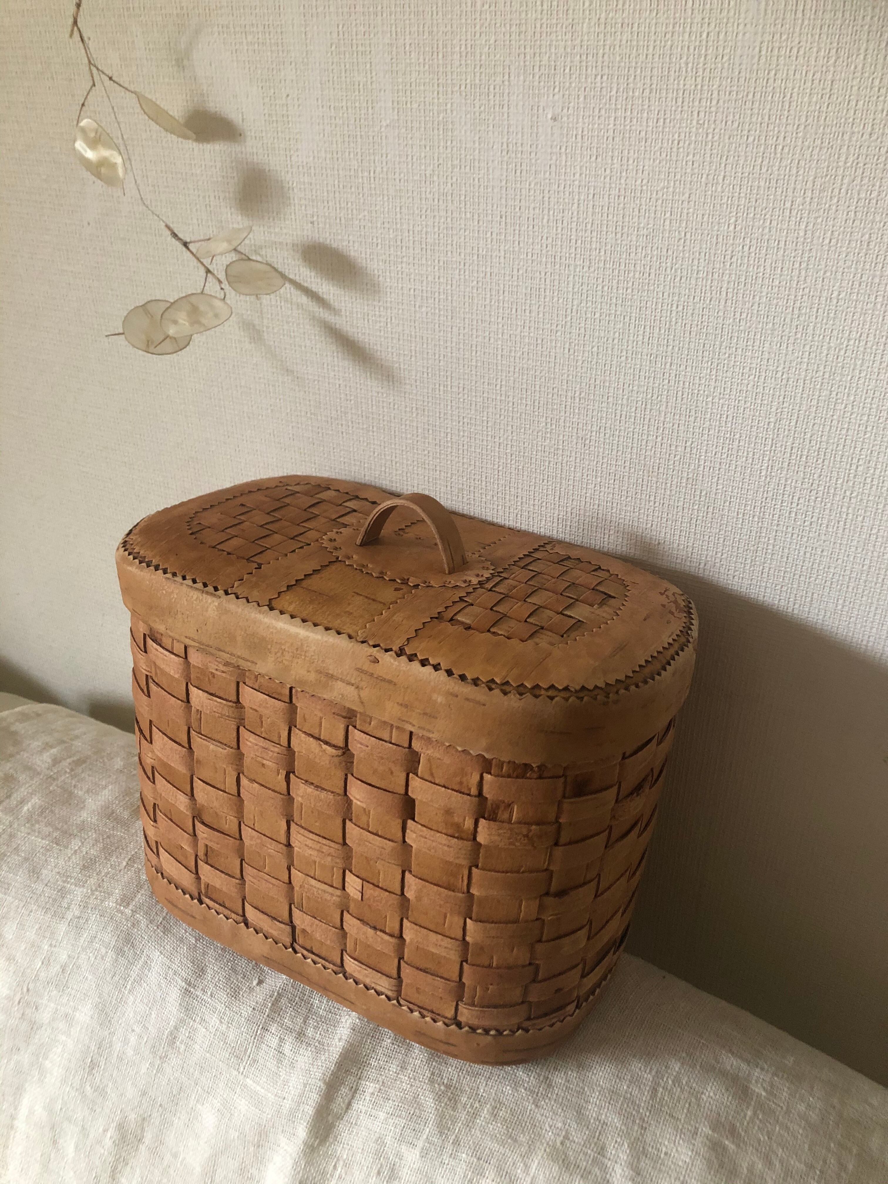 キャニスター本体と蓋の白樺編みが、とても凝っていて可愛らしいキャニスター。