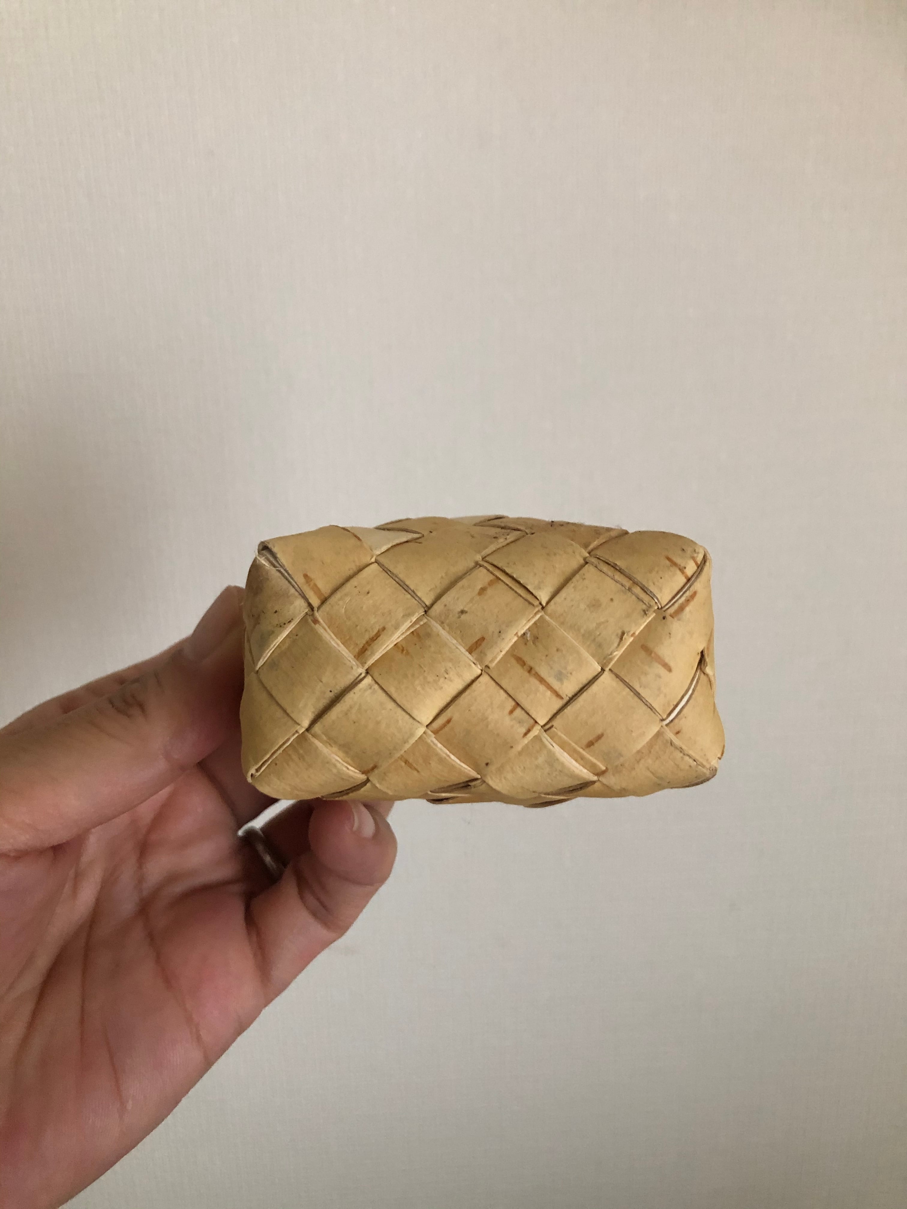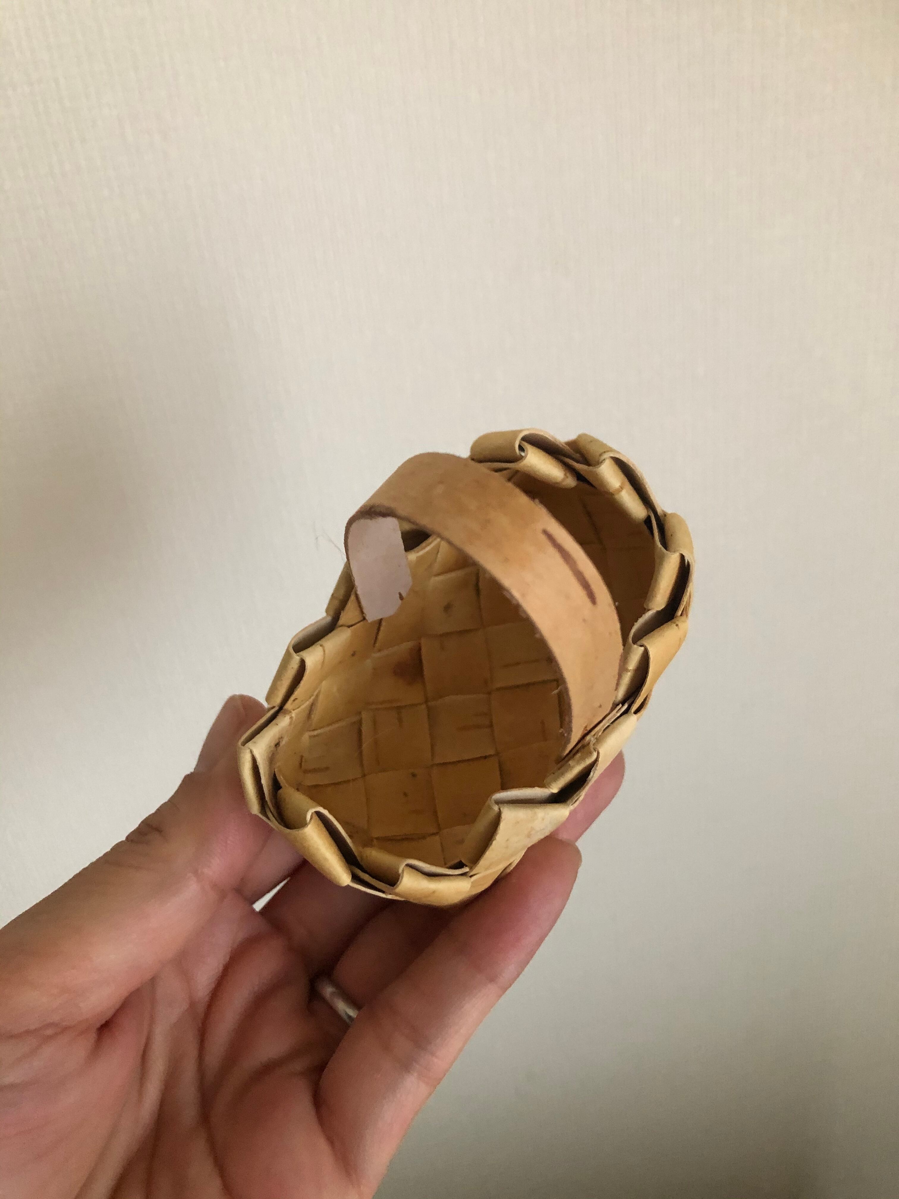 上のギザギザと、手のひらに乗るミニチュアサイズがとても可愛らしい、ナチュラルな白樺のバスケット♫