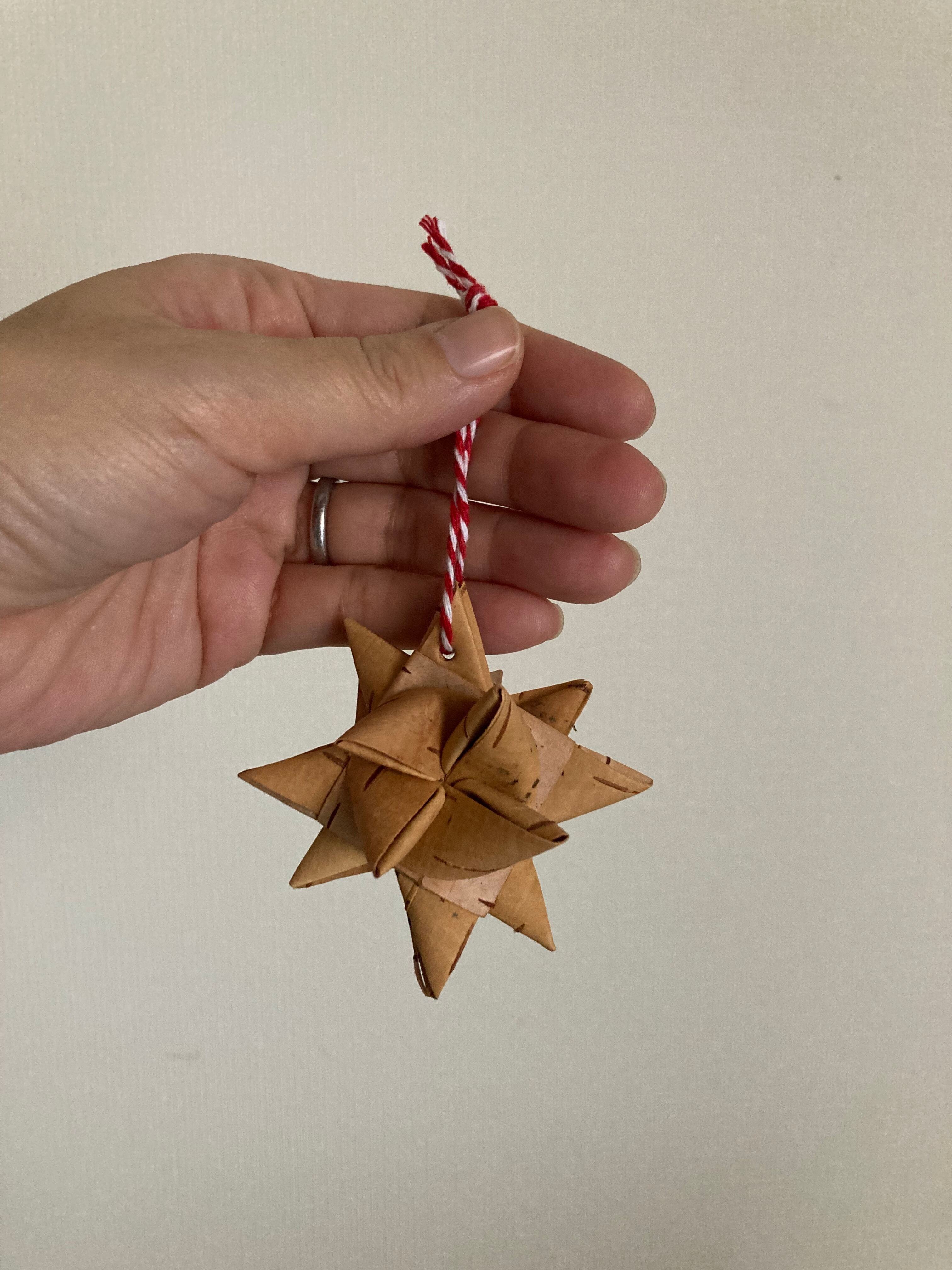 コロンとした形が可愛い、白樺の星のオーナメントです。