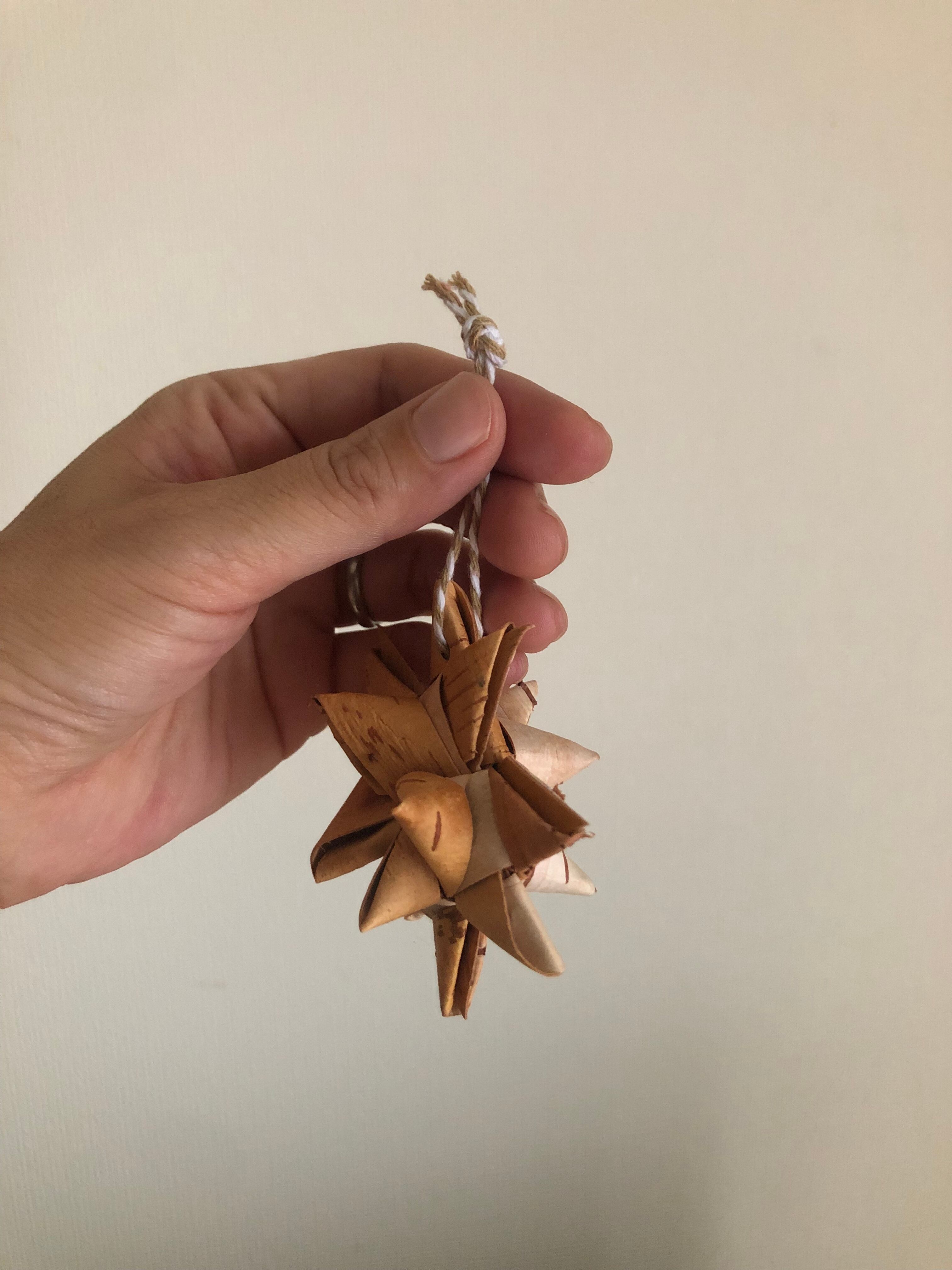 コロンとした形が可愛い、白樺の星のオーナメントです。
