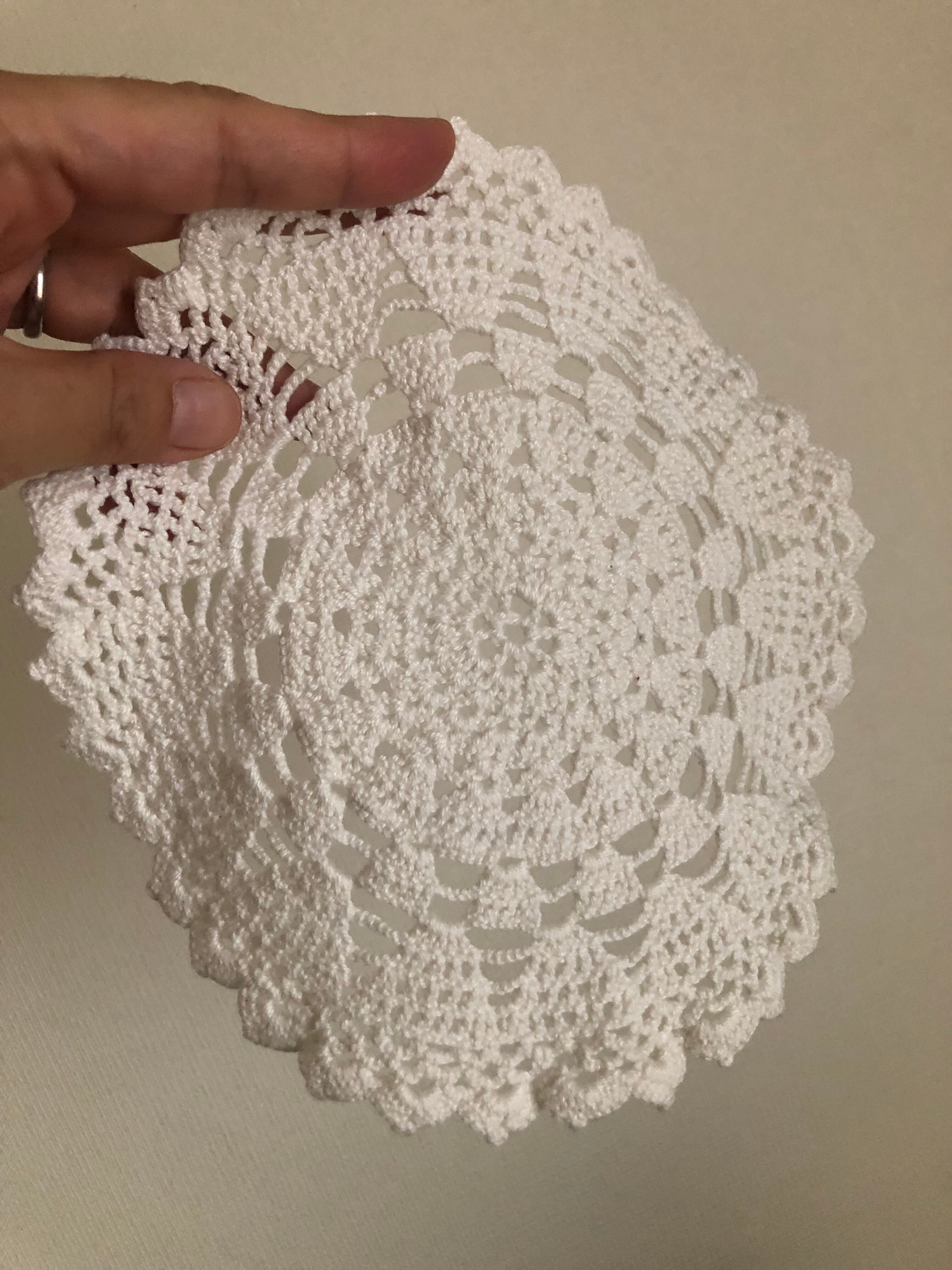 クロッシェ編みが可愛らしい白のお花型のドイリー♫
