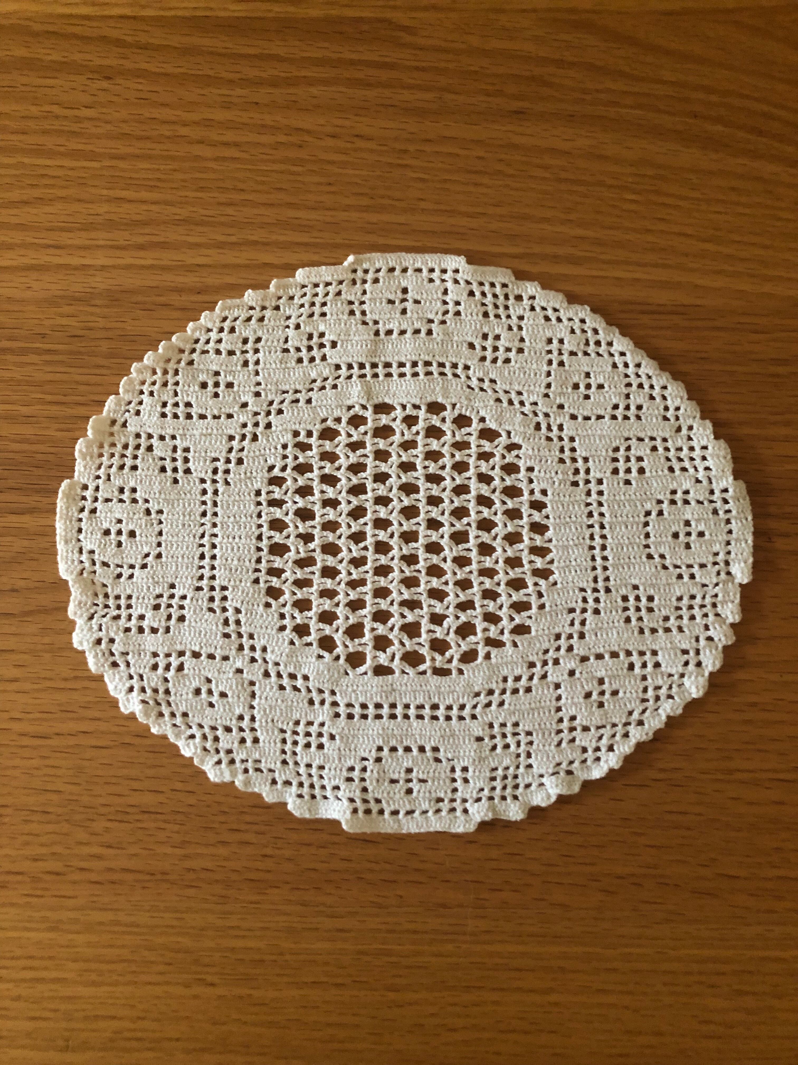 北欧 クロッシェ編みのオーバル型のドイリー ヴィンテージ