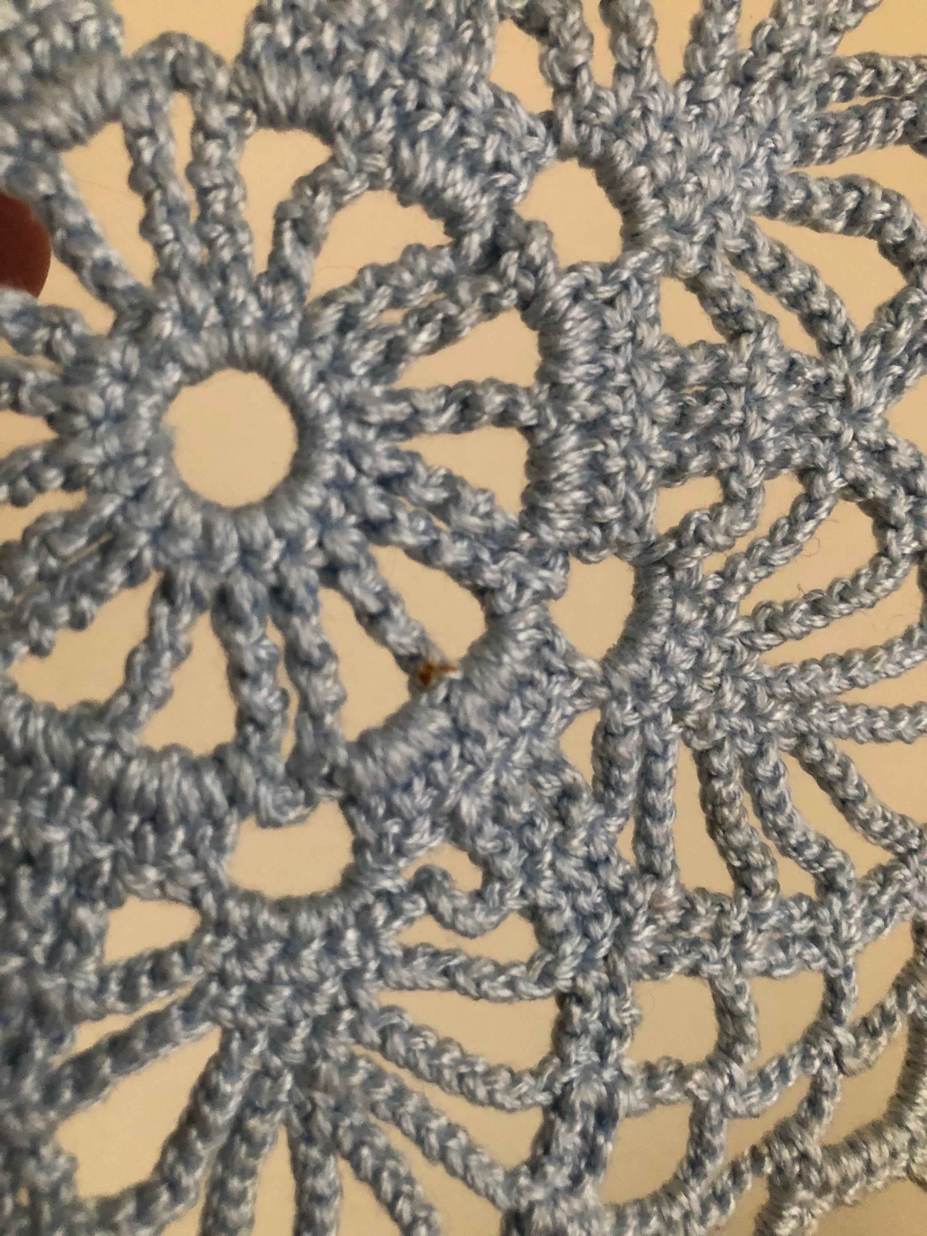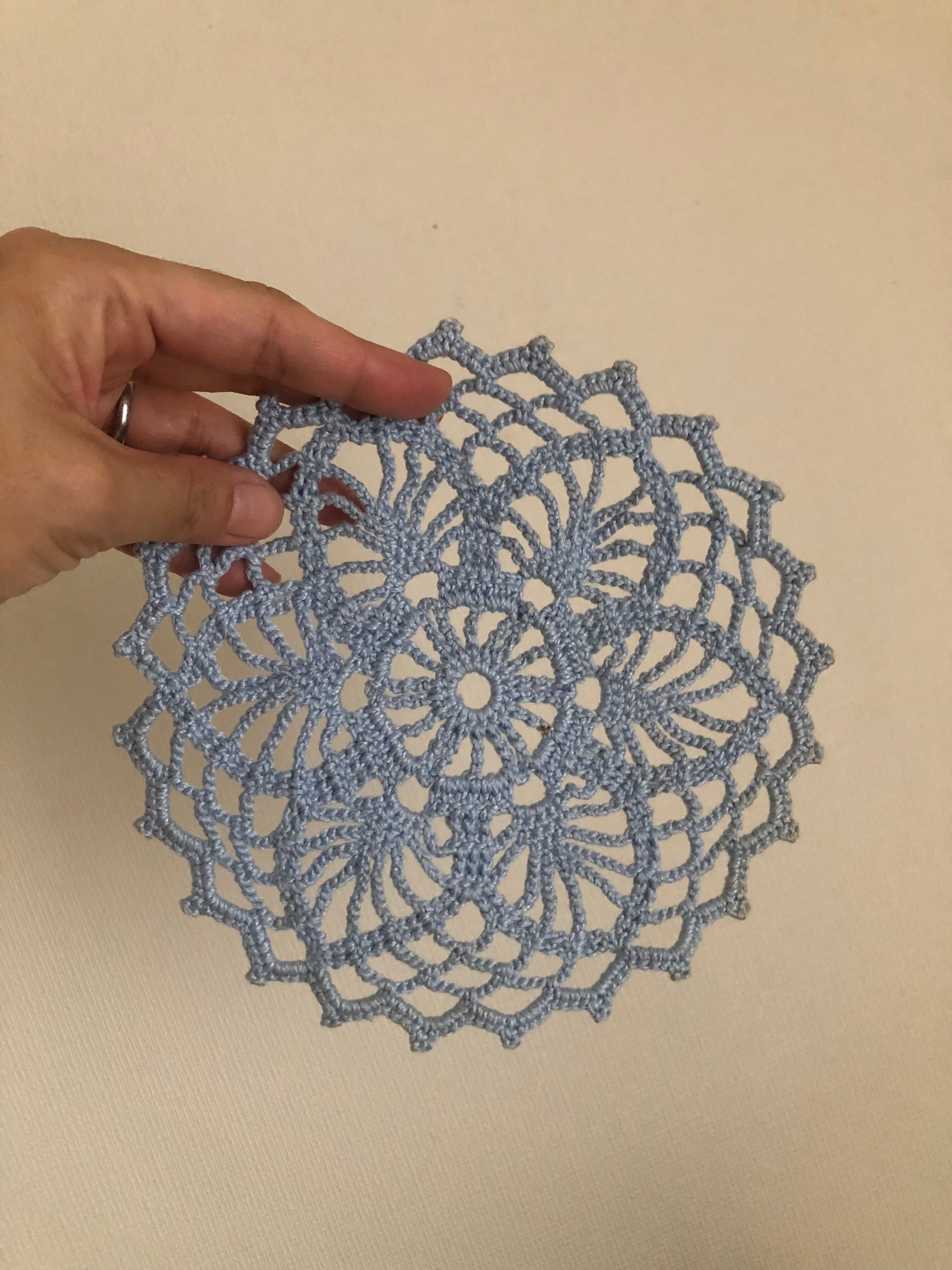 淡い水色のクロッシェ編みが可愛らしいドイリー♫