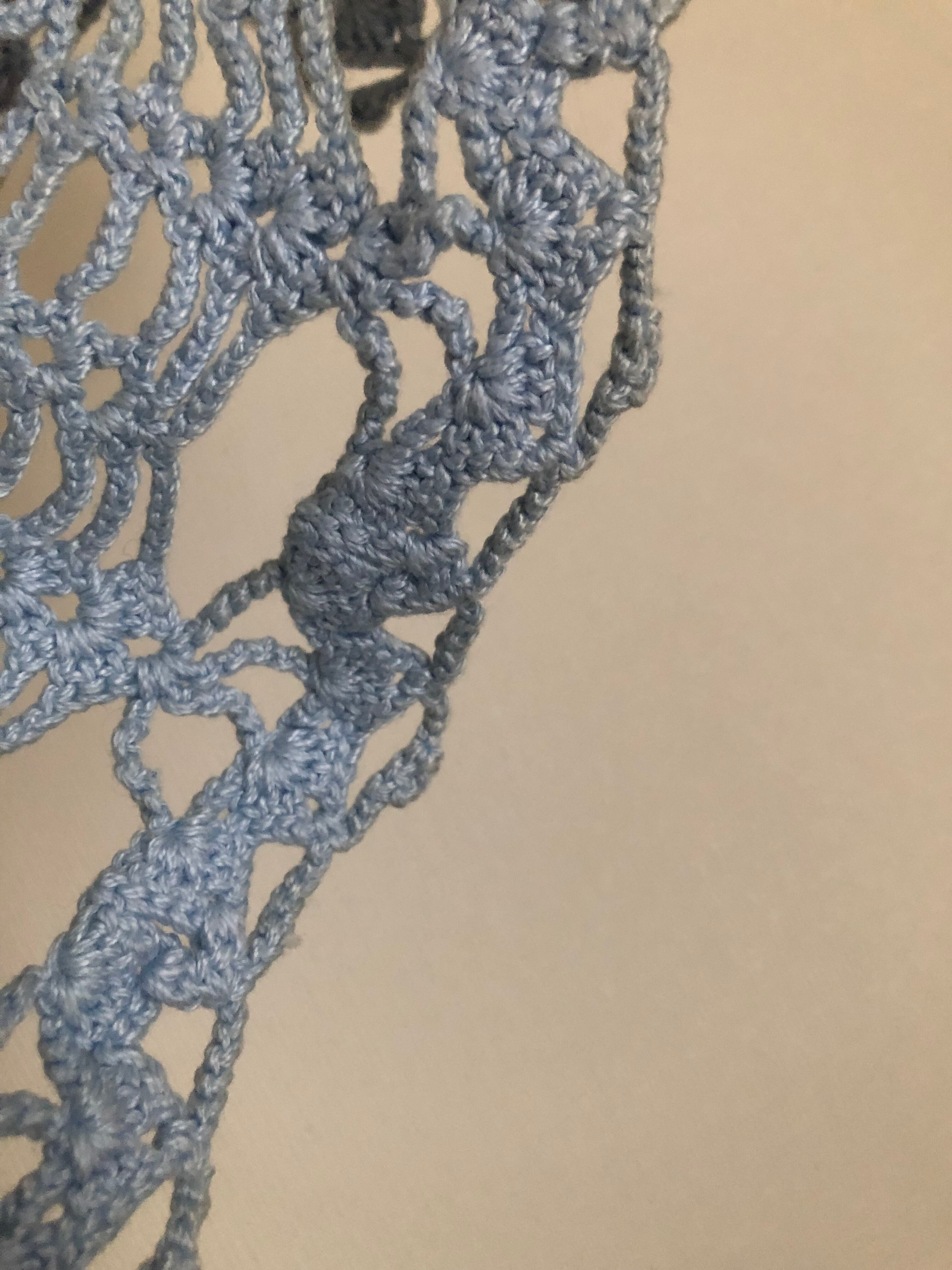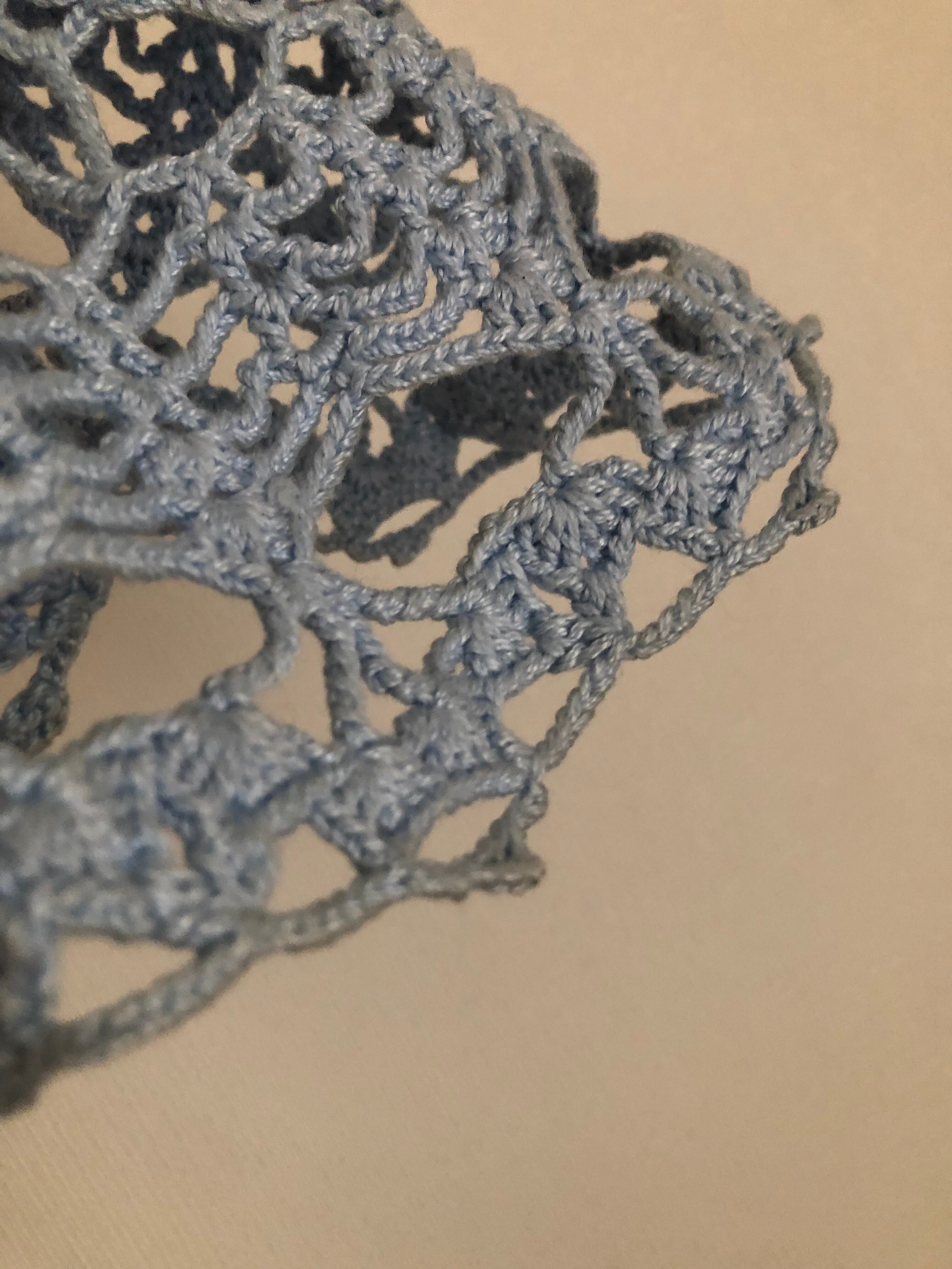 淡い水色のクロッシェ編みが可愛らしいオーバル型のドイリー♫