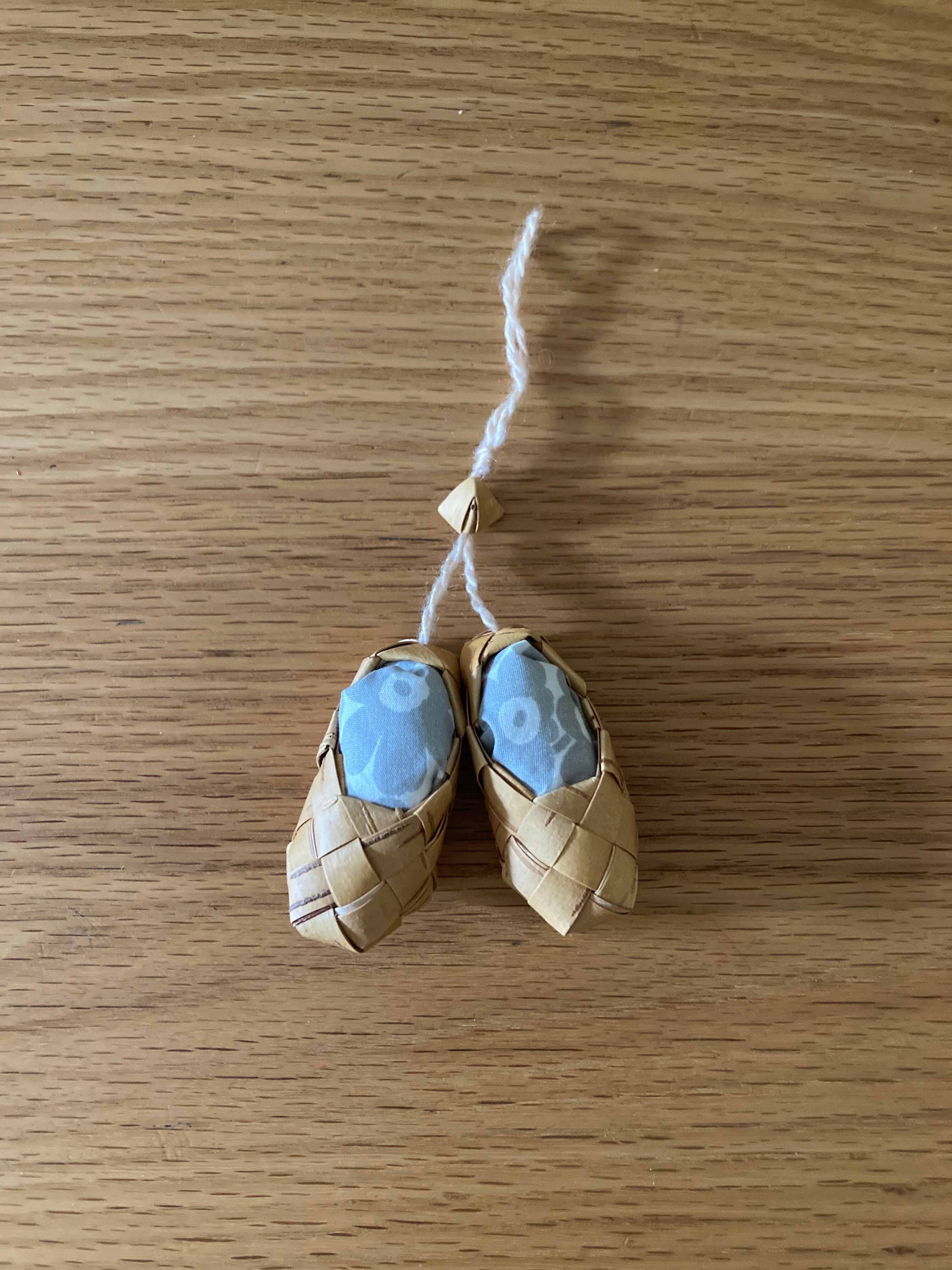 ロシア 白樺 小人の靴のオーナメント (マリメッコ 生地との組み合わせ)