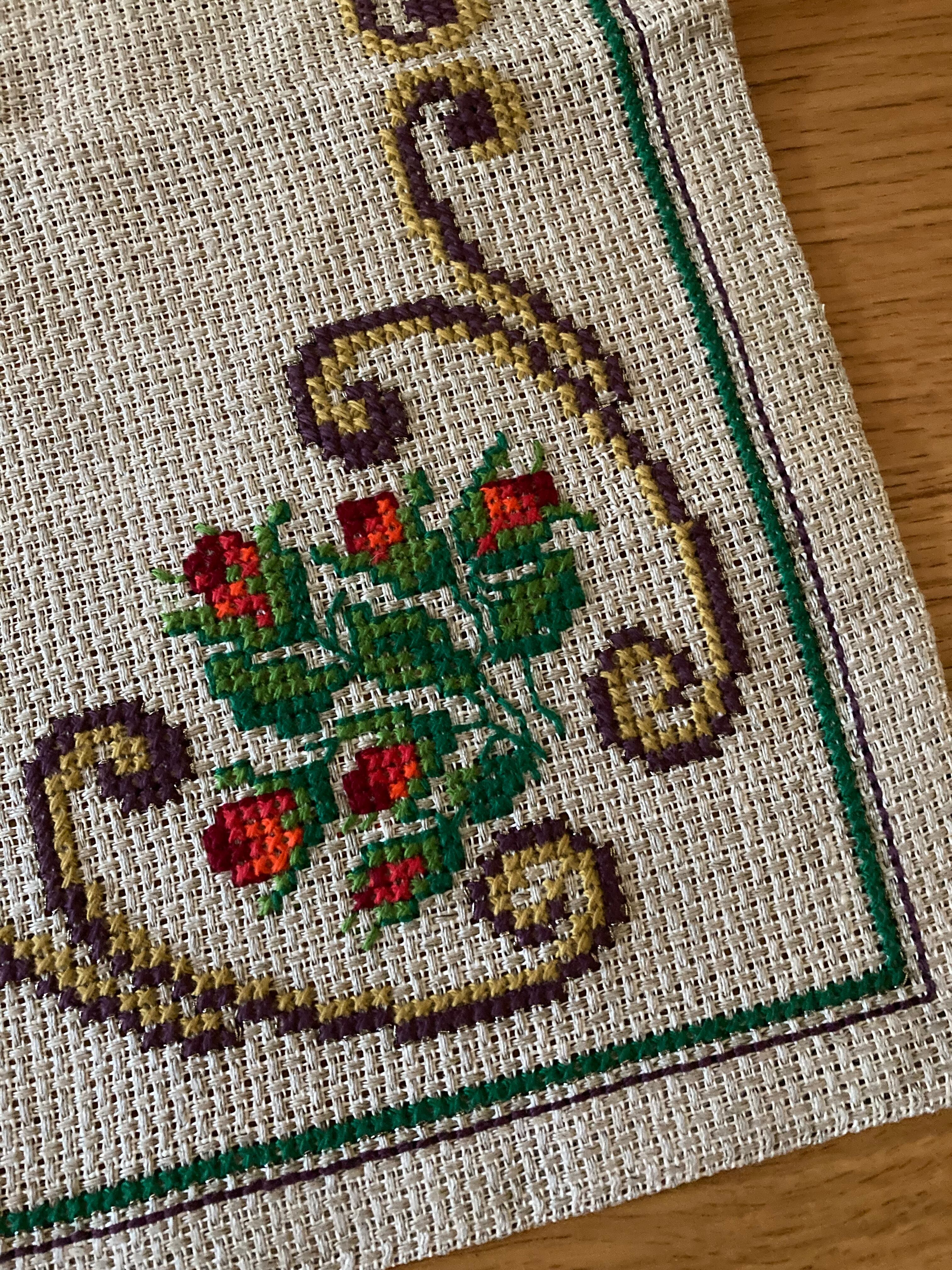 北欧 お花刺繍リネンクロス ヴィンテージ