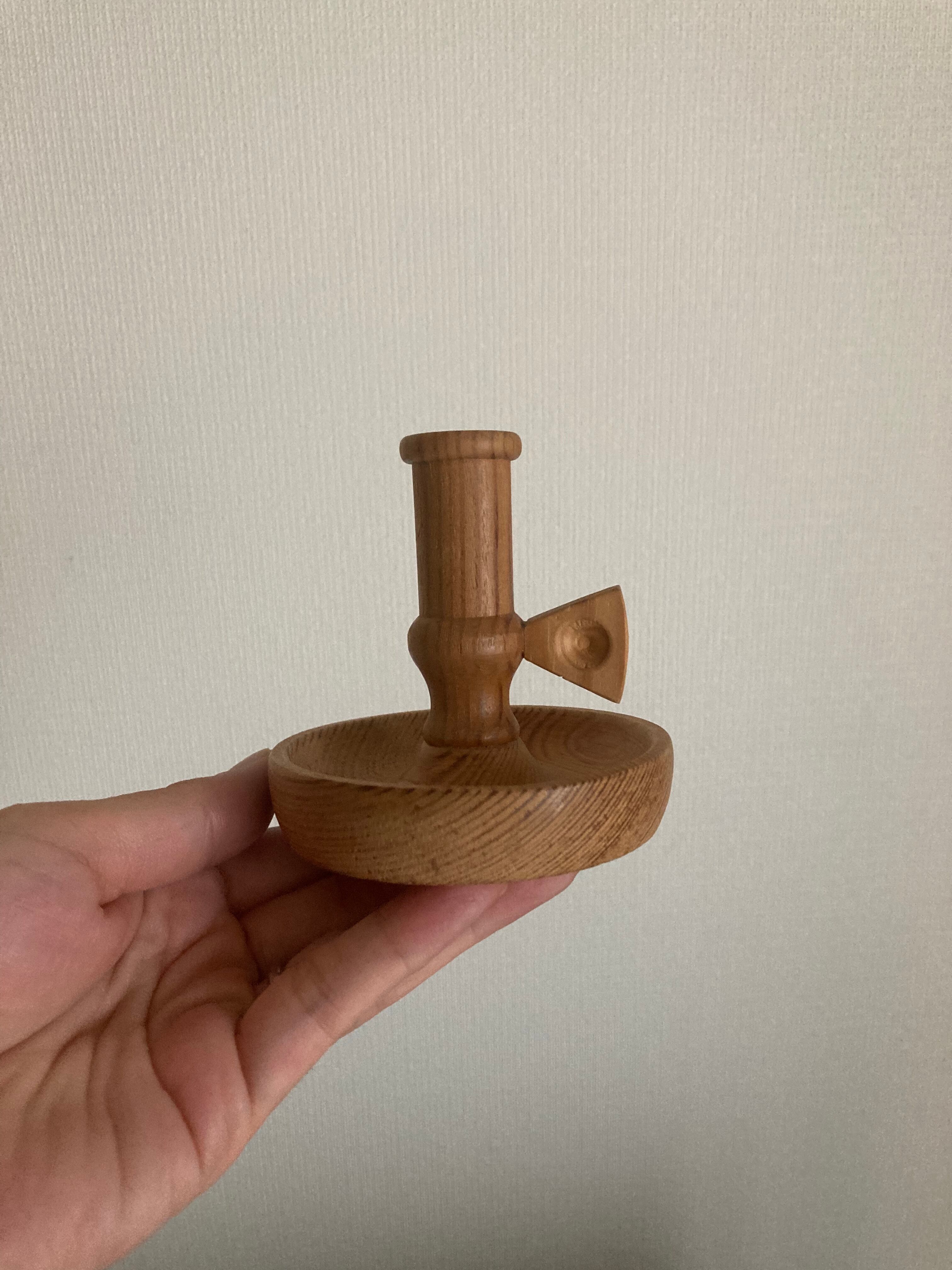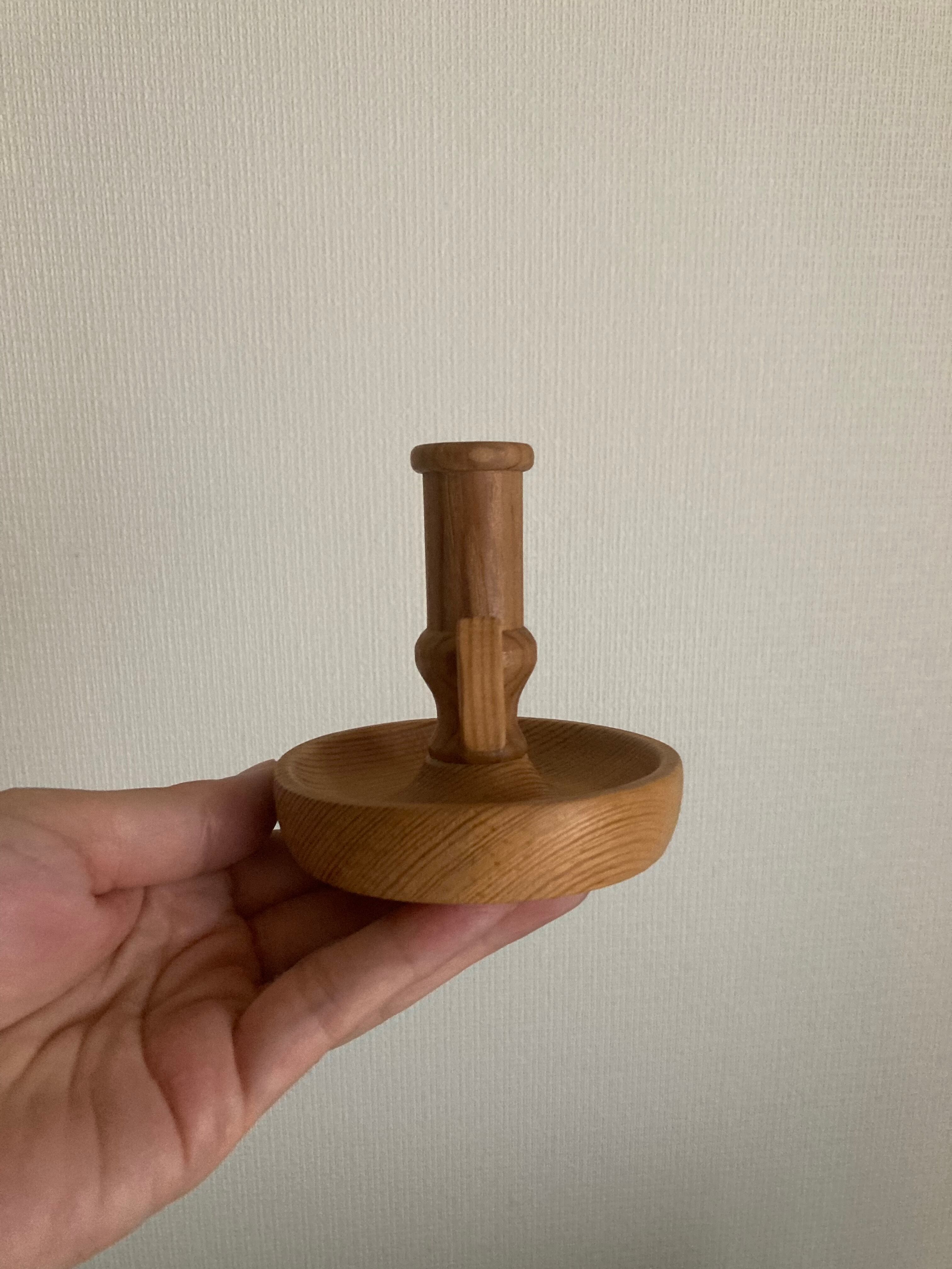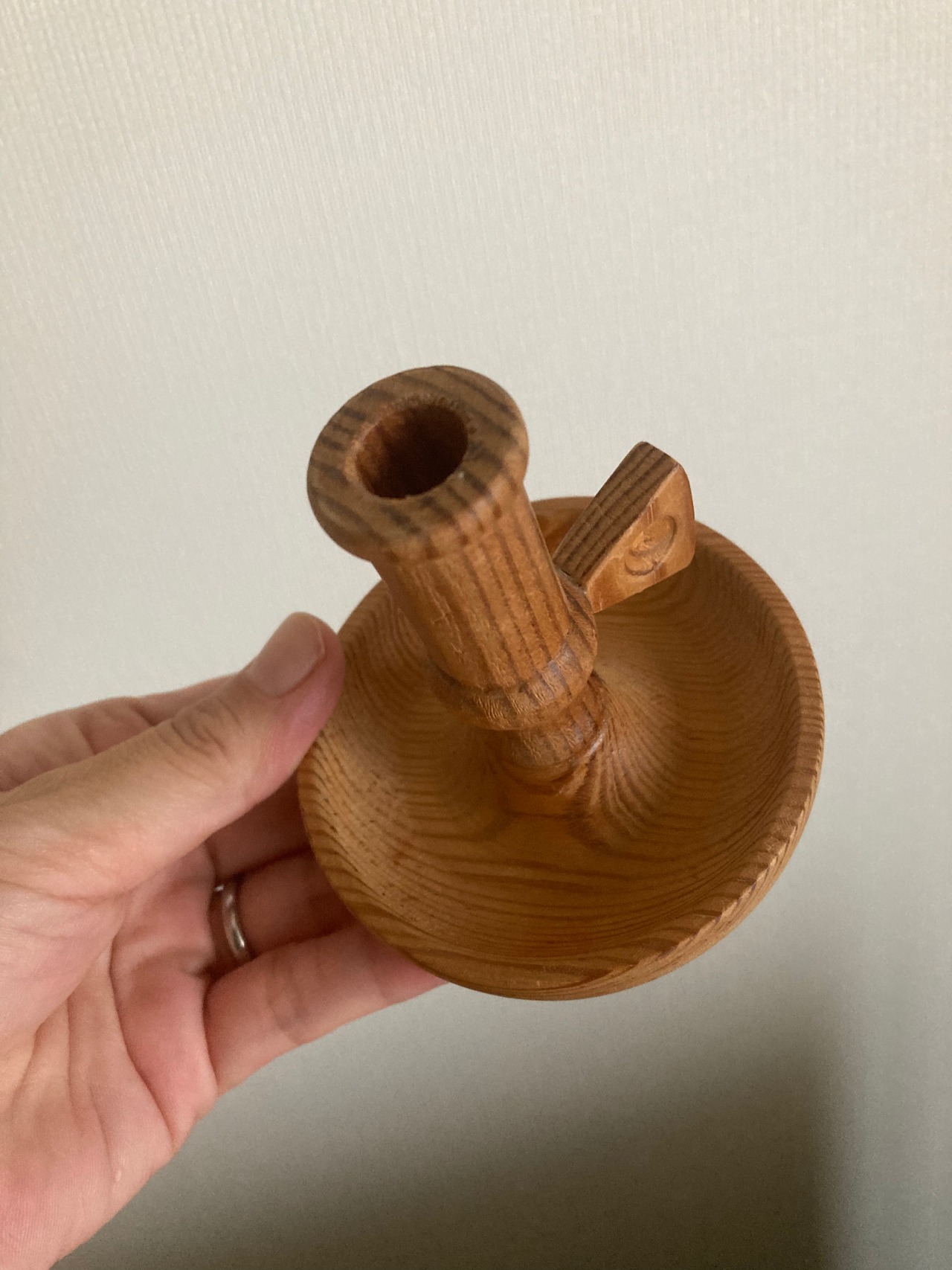 北欧 スウェーデンのヴィンテージの持ち手付きの木製のキャンドルスタンドです。