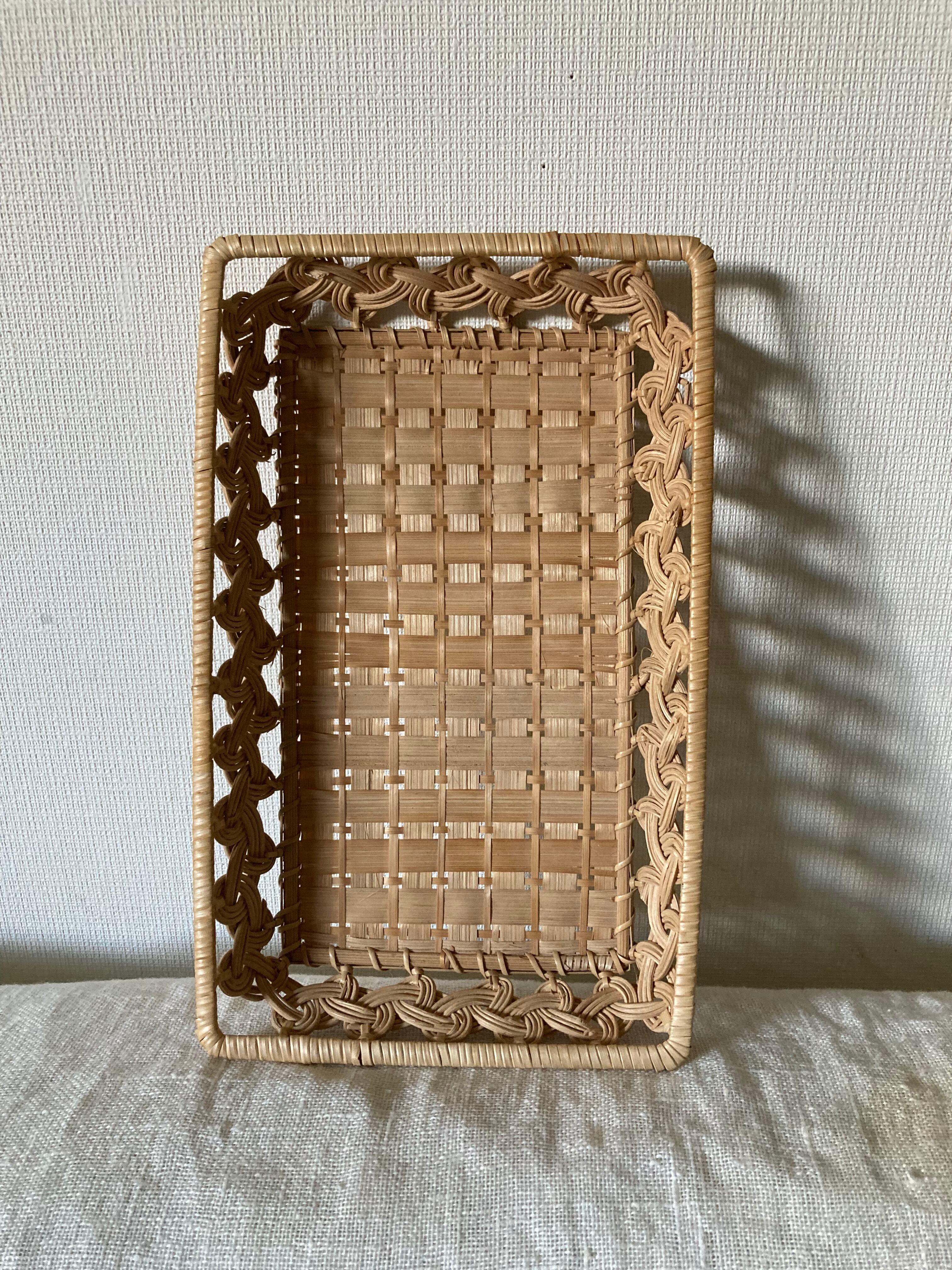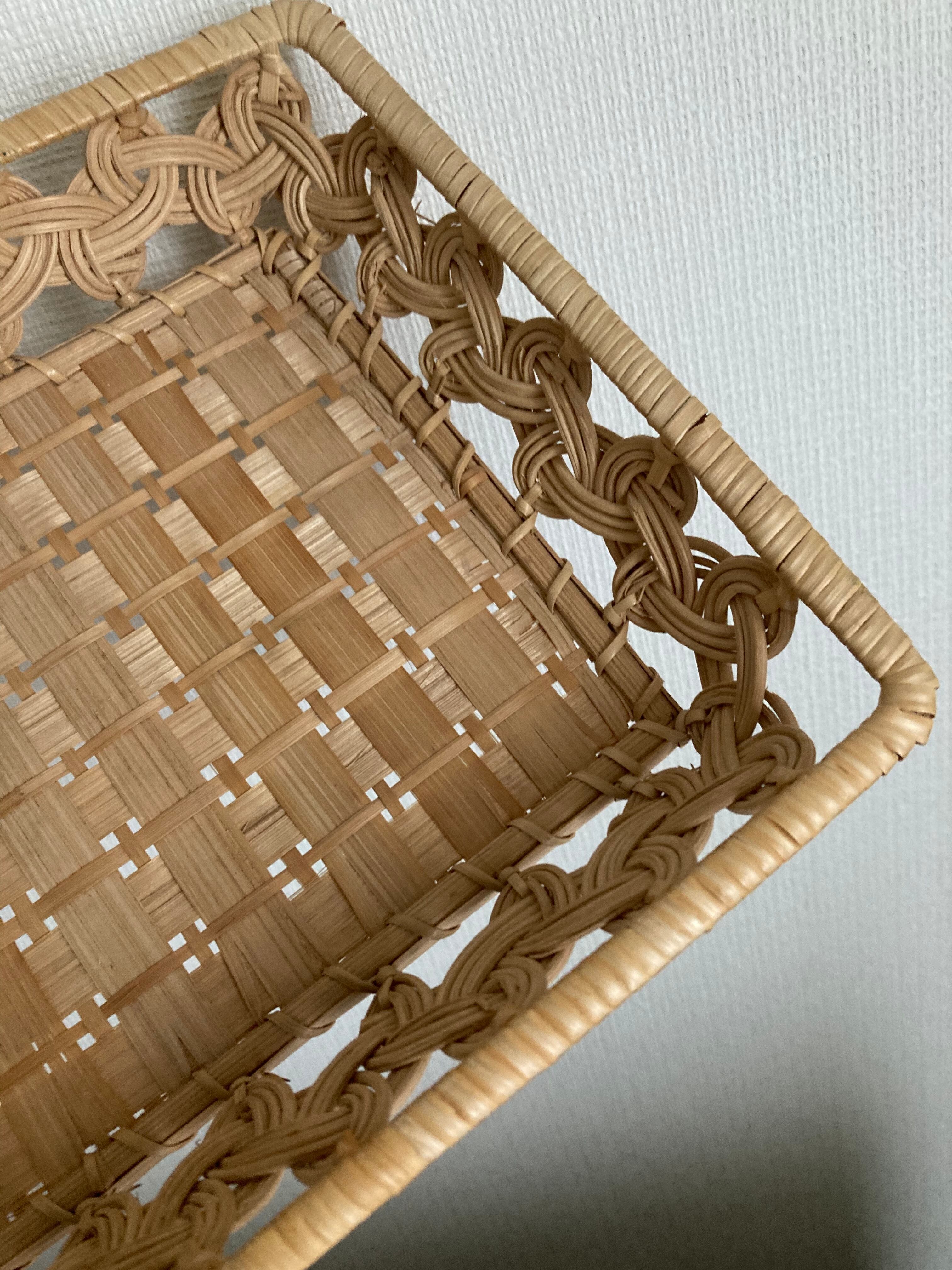 サイドの細工がとても凝っていて、素敵な長方形型のバスケットです。