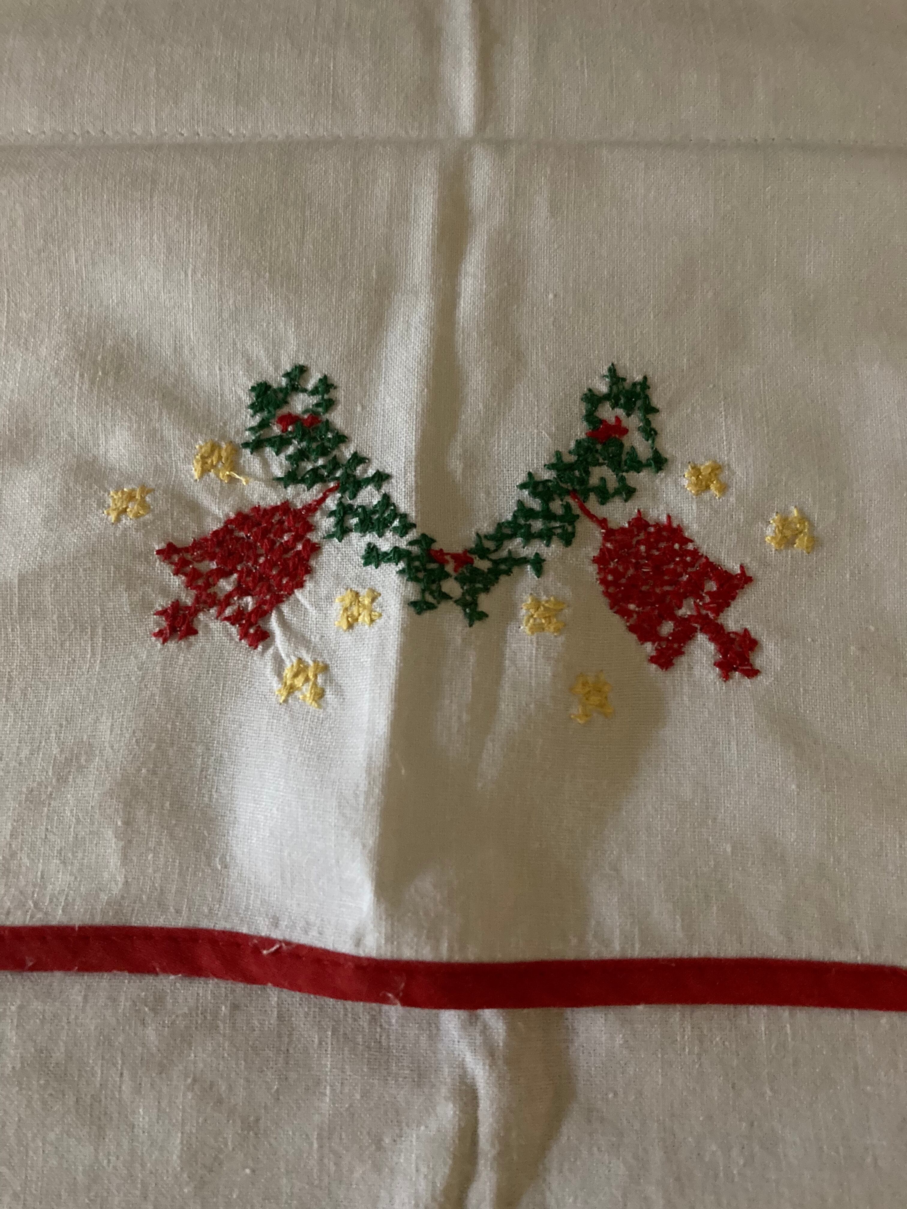 北欧 クリスマス刺繍 オーバータオル /飾り布 ヴィンテージ4