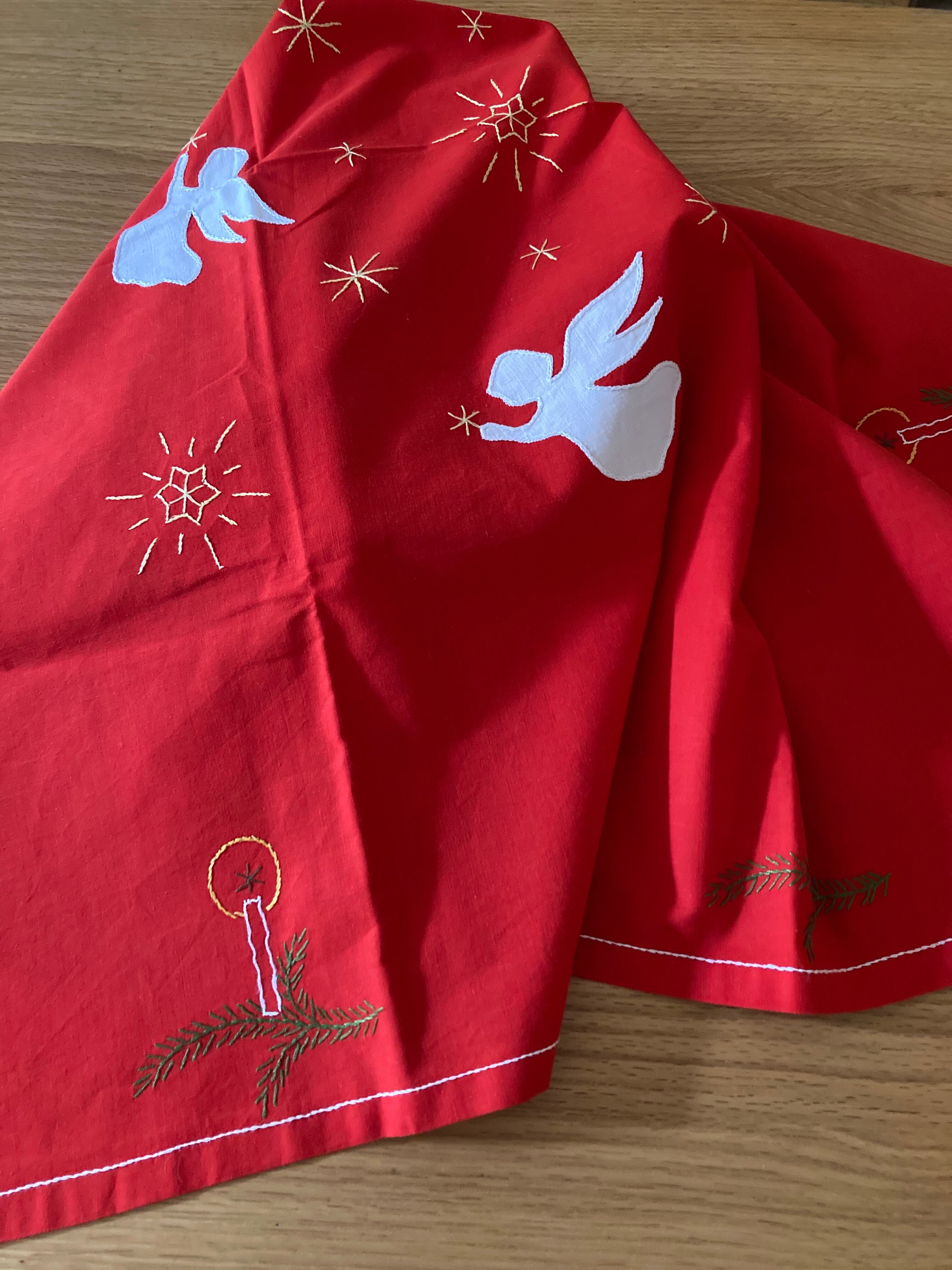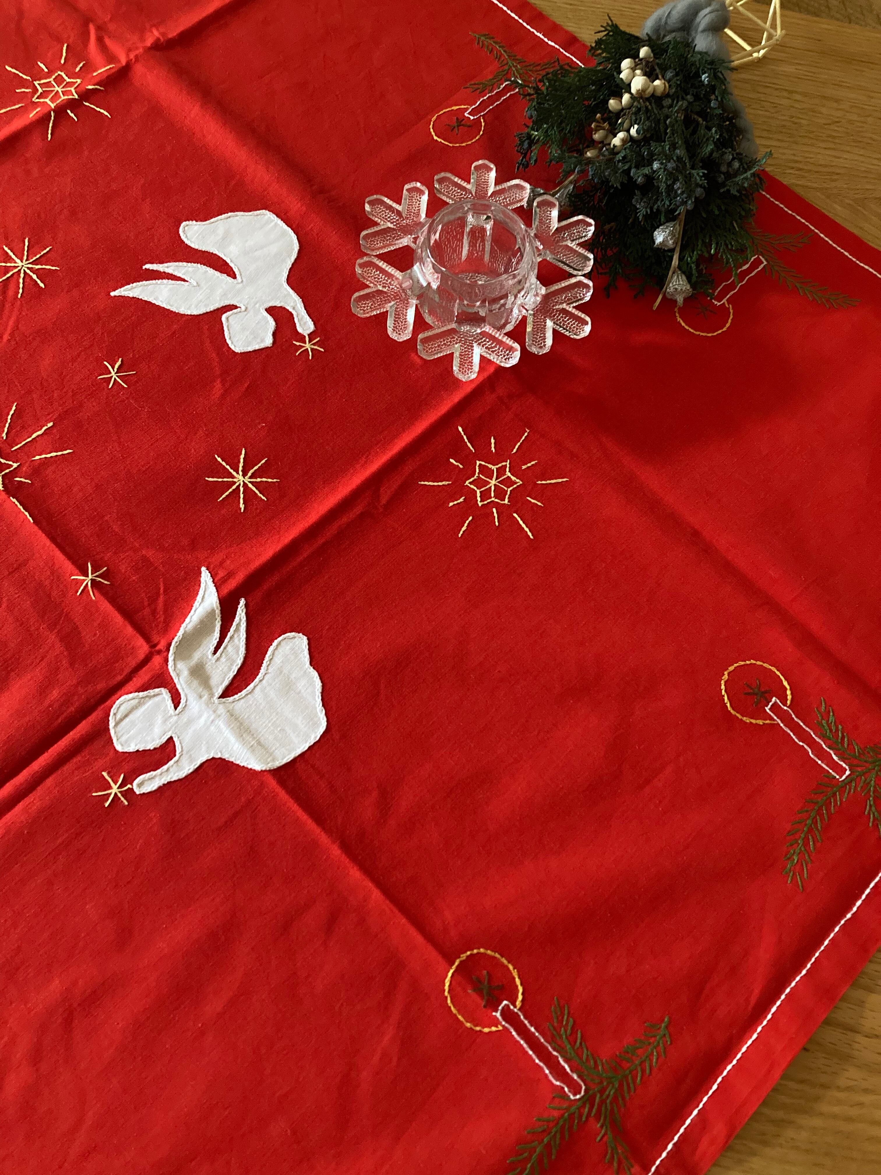 ★北欧 天使のアップリケとキャンドル刺繍のテーブルクロス ヴィンテージ