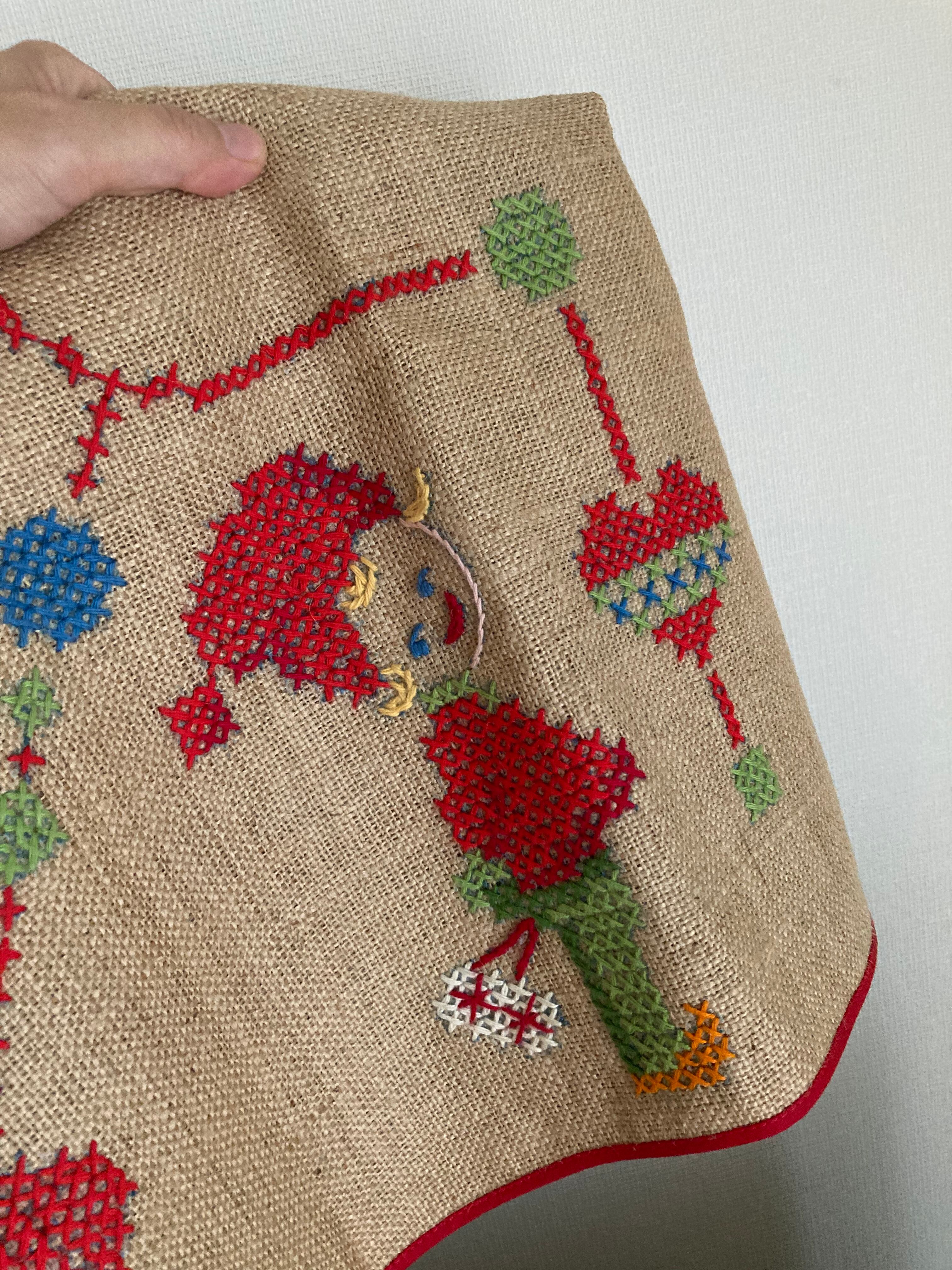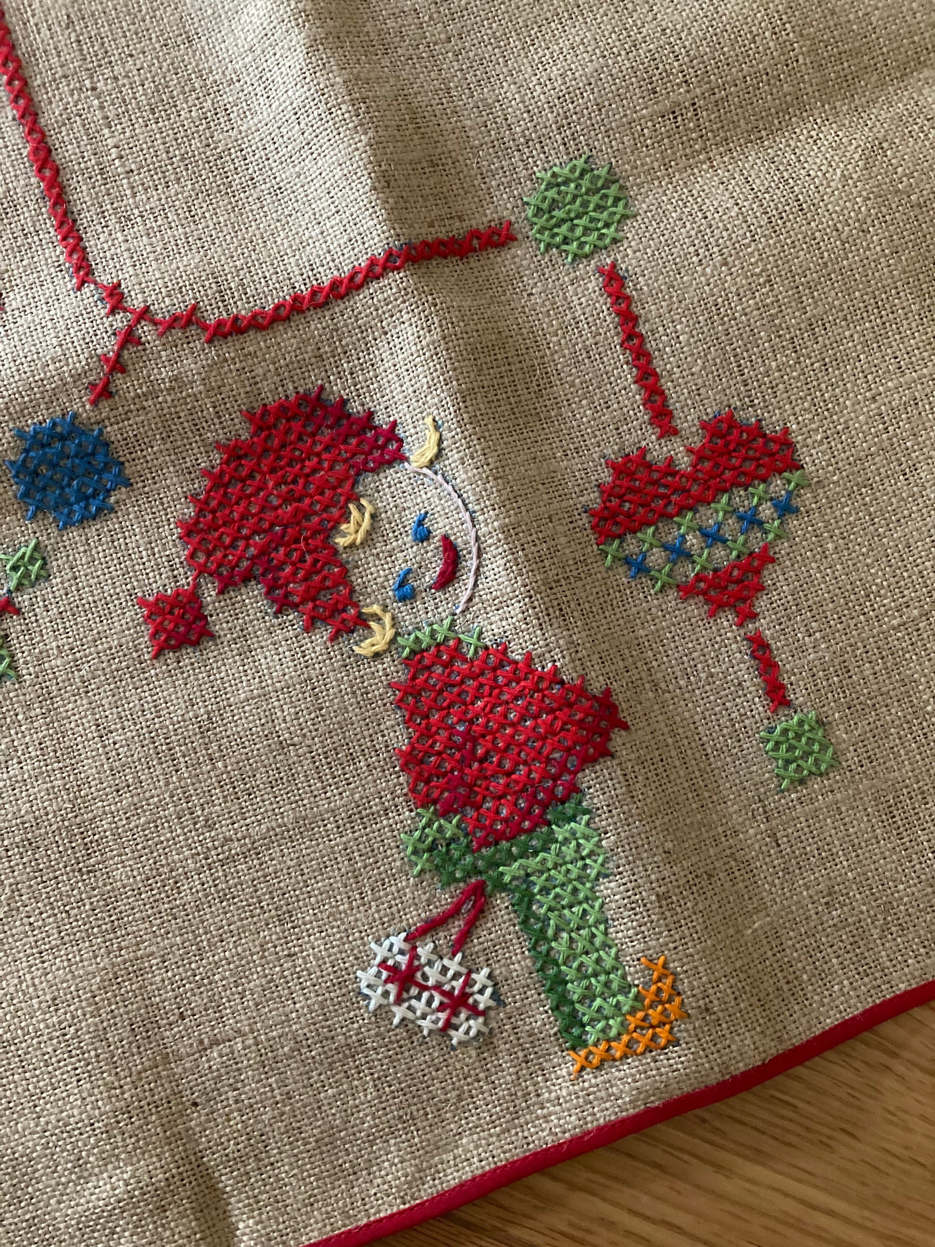 ♫Summer Sale 7/15まで♫北欧 トムテ刺繍のリネンのテーブルクロス ヴィンテージ