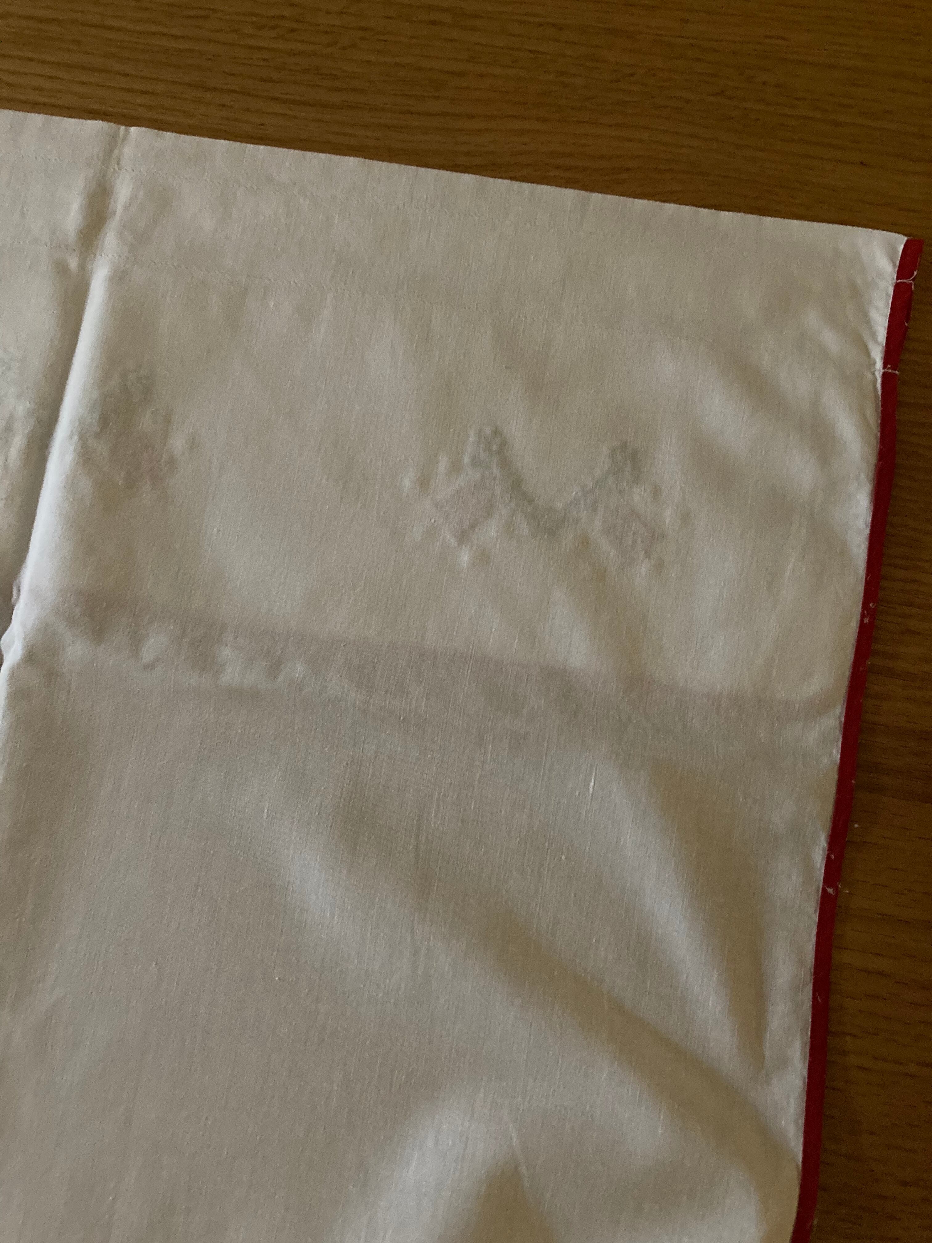 上が筒状に縫われており、棒を通せる作りになっています。上部を折り返して使うように刺繍が施されています。