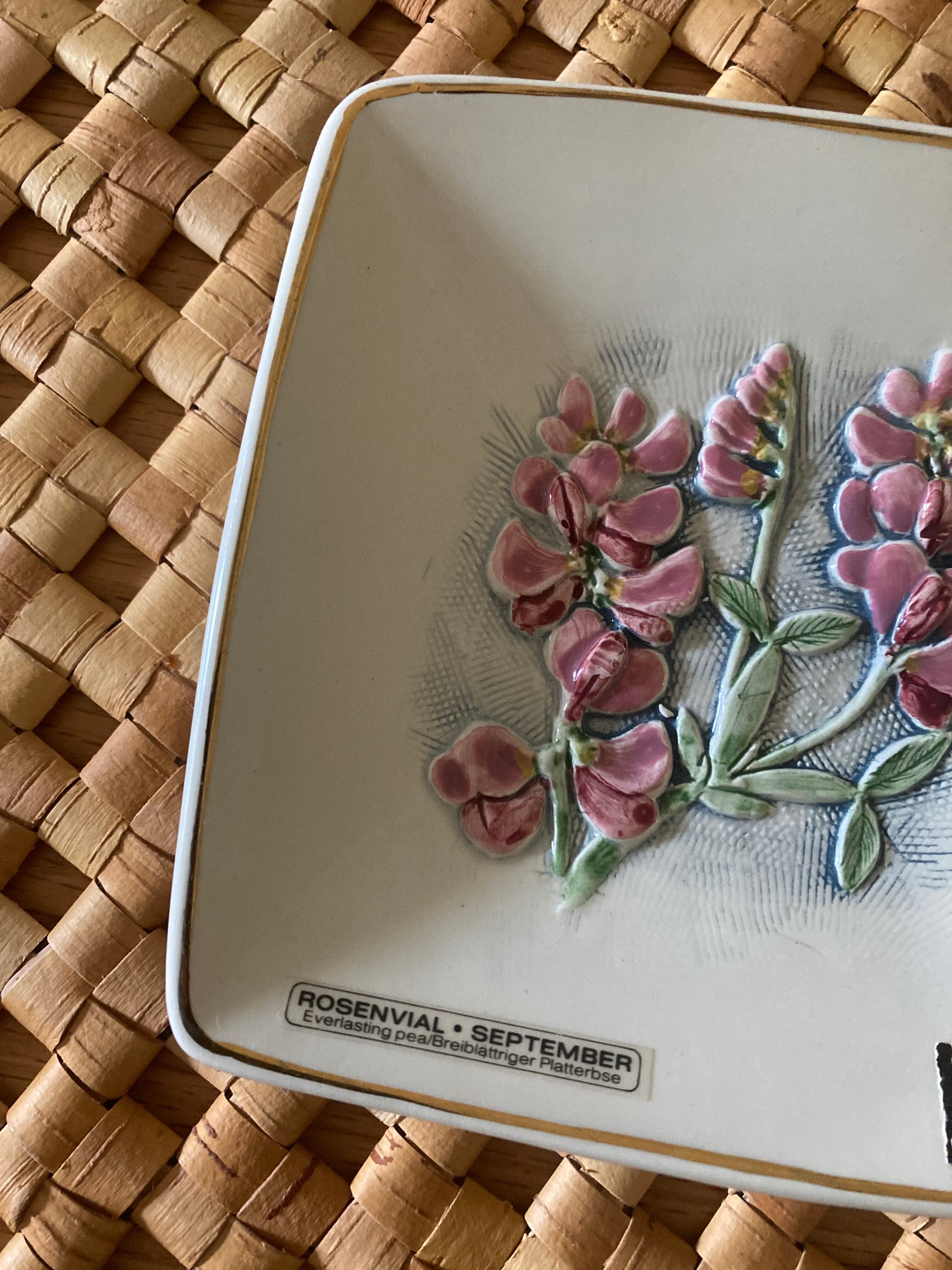 一年の月のお花シリーズの壁掛けプレートでこちらは9月のスィートピーの柄になります。左下に スウェーデン語で、スィートピー 9月 とシールで貼ってあります♫