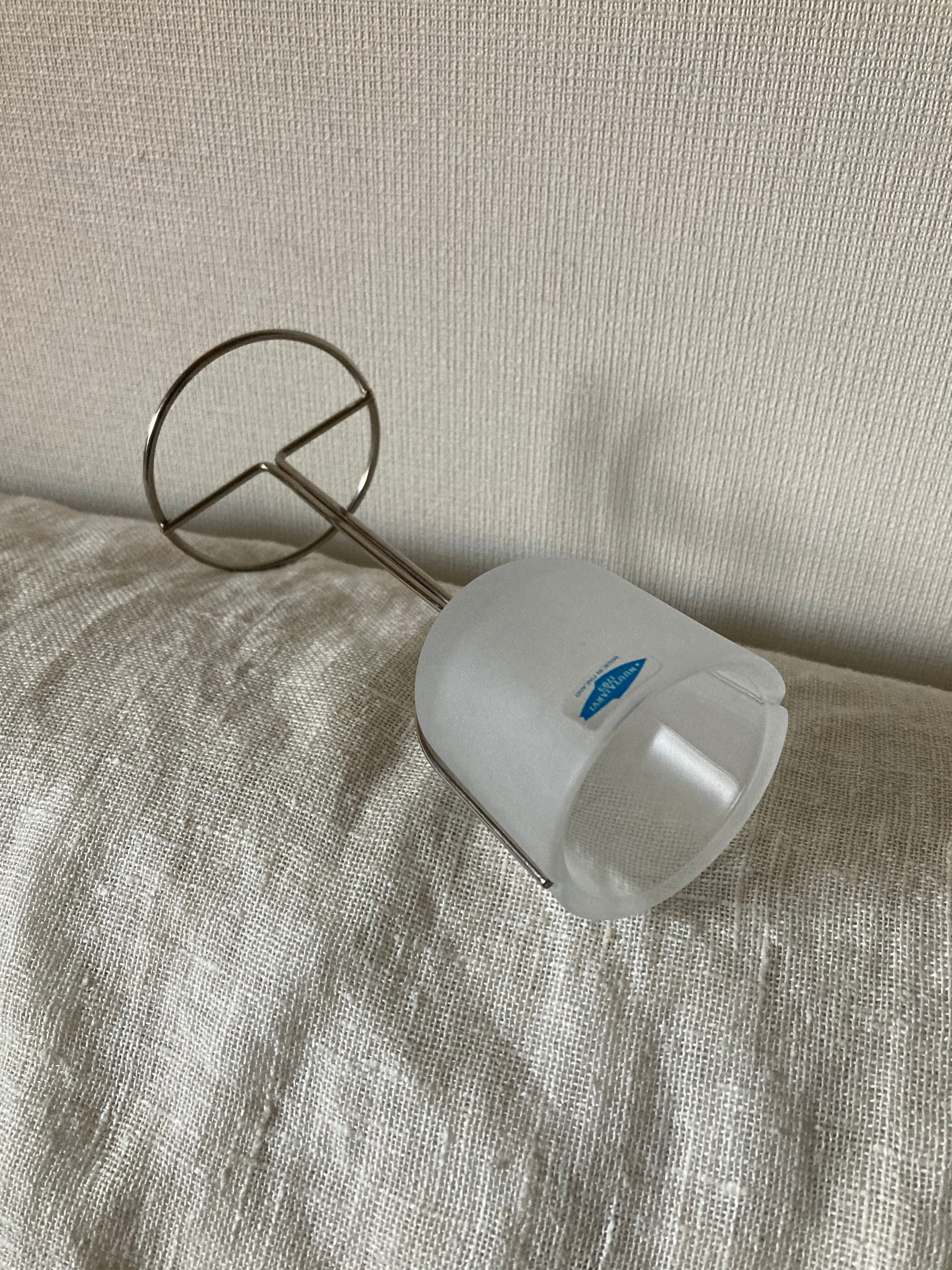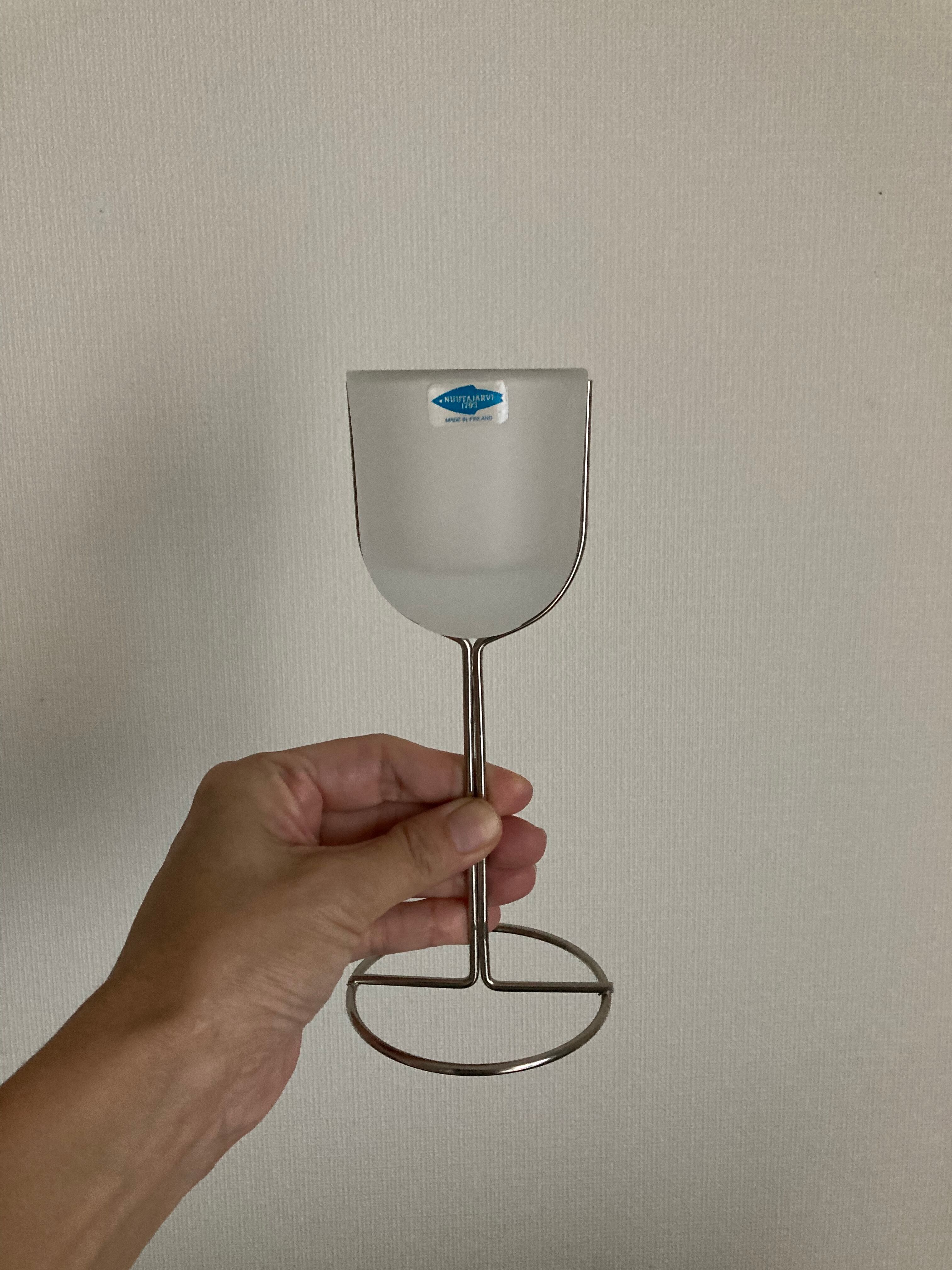 スっと背の高い金属のホルダーとシンプルなフロストガラスの組み合わせと、ワイングラスのようなフォルムが、スマートで素敵なキャンドルホルダーです♫