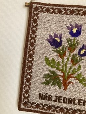 スウェーデンの州の代表的なお花や植物を刺繍したシリーズで、こちらは、オキナグサになります。