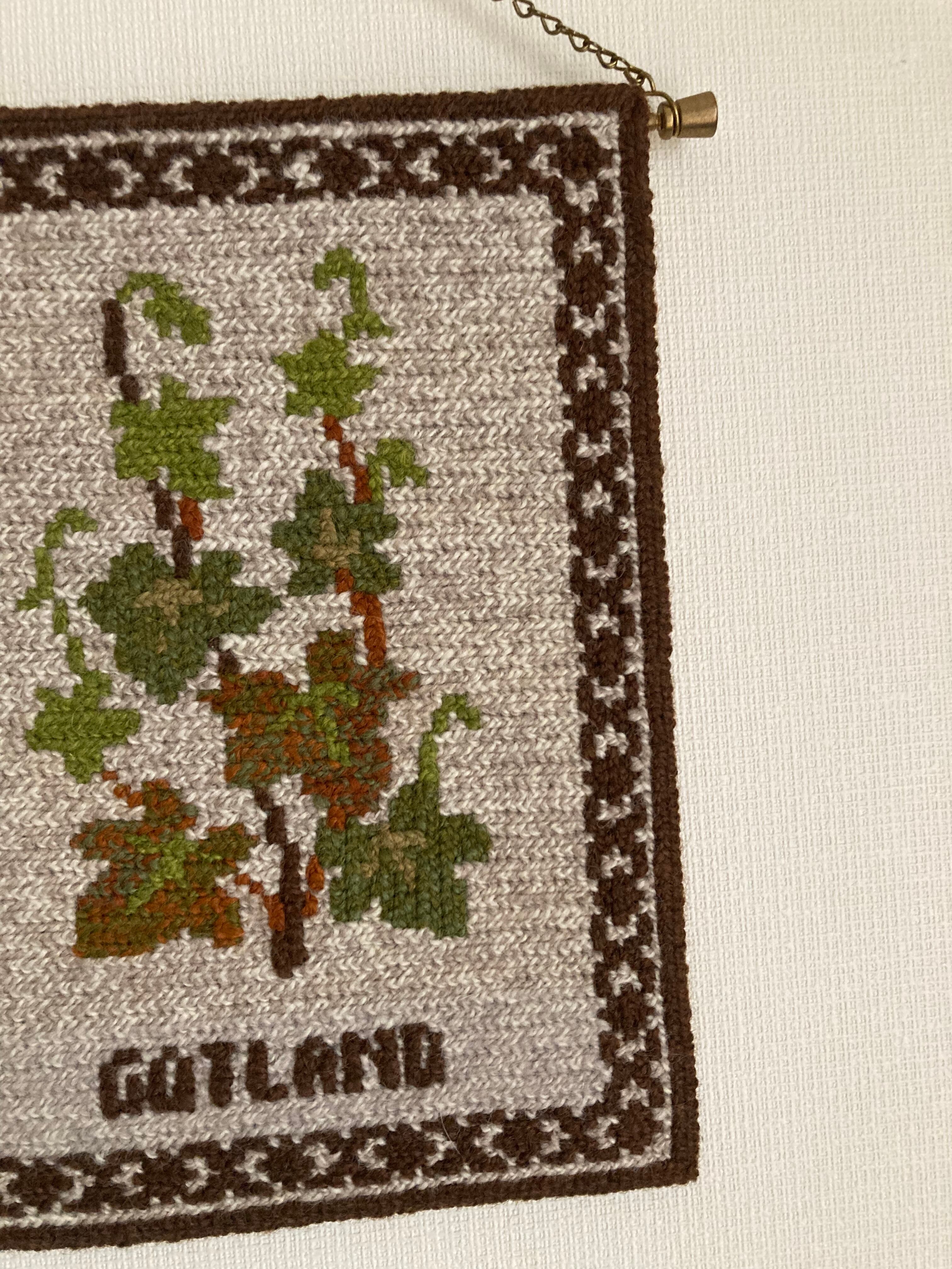 スウェーデンの州の代表的なお花や植物を刺繍したシリーズで、こちらは、ヘデラになります。