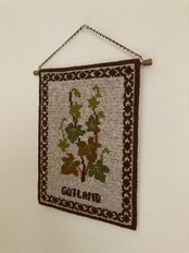 グリーンのグラデーションのヘデラの葉っぱのツヴィスト刺繍が素敵なタペストリーです。