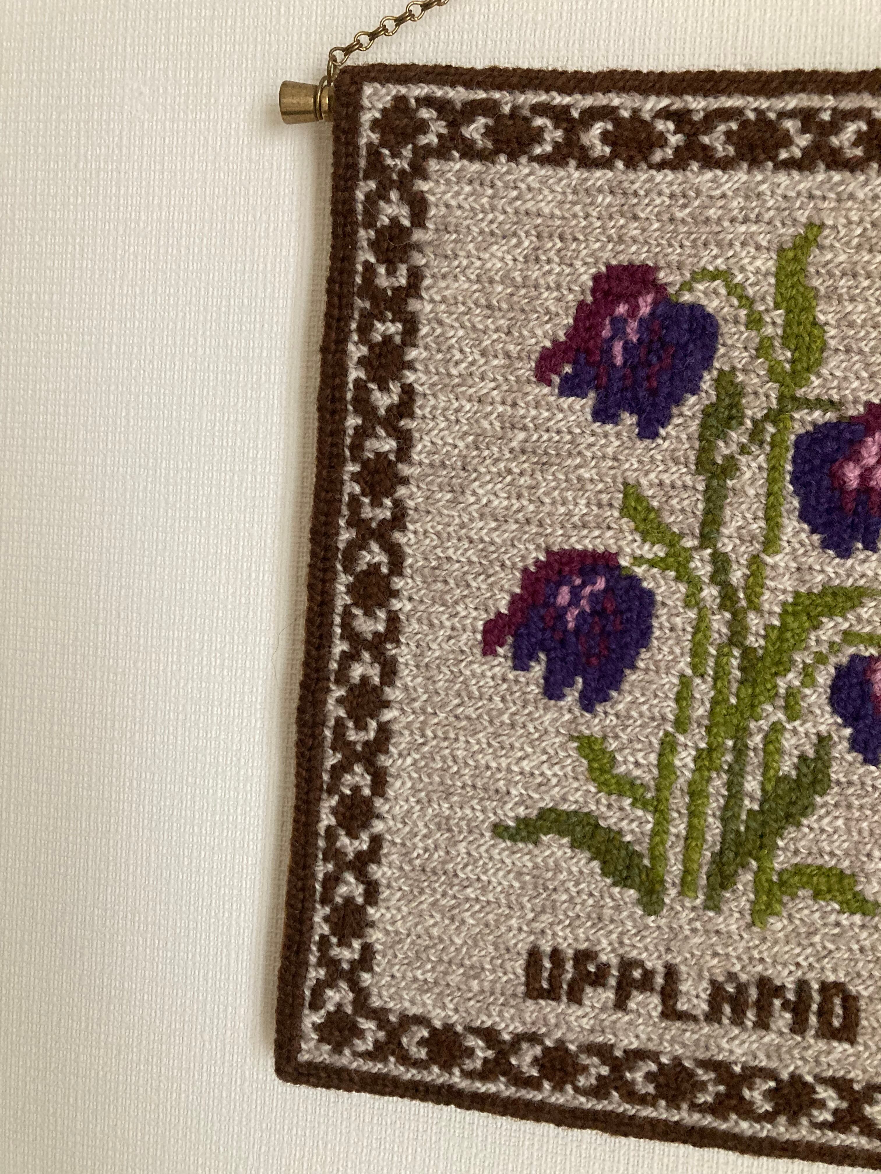 スウェーデンの州の代表的なお花や植物を刺繍したシリーズで、こちらは、フリチラリアになります。