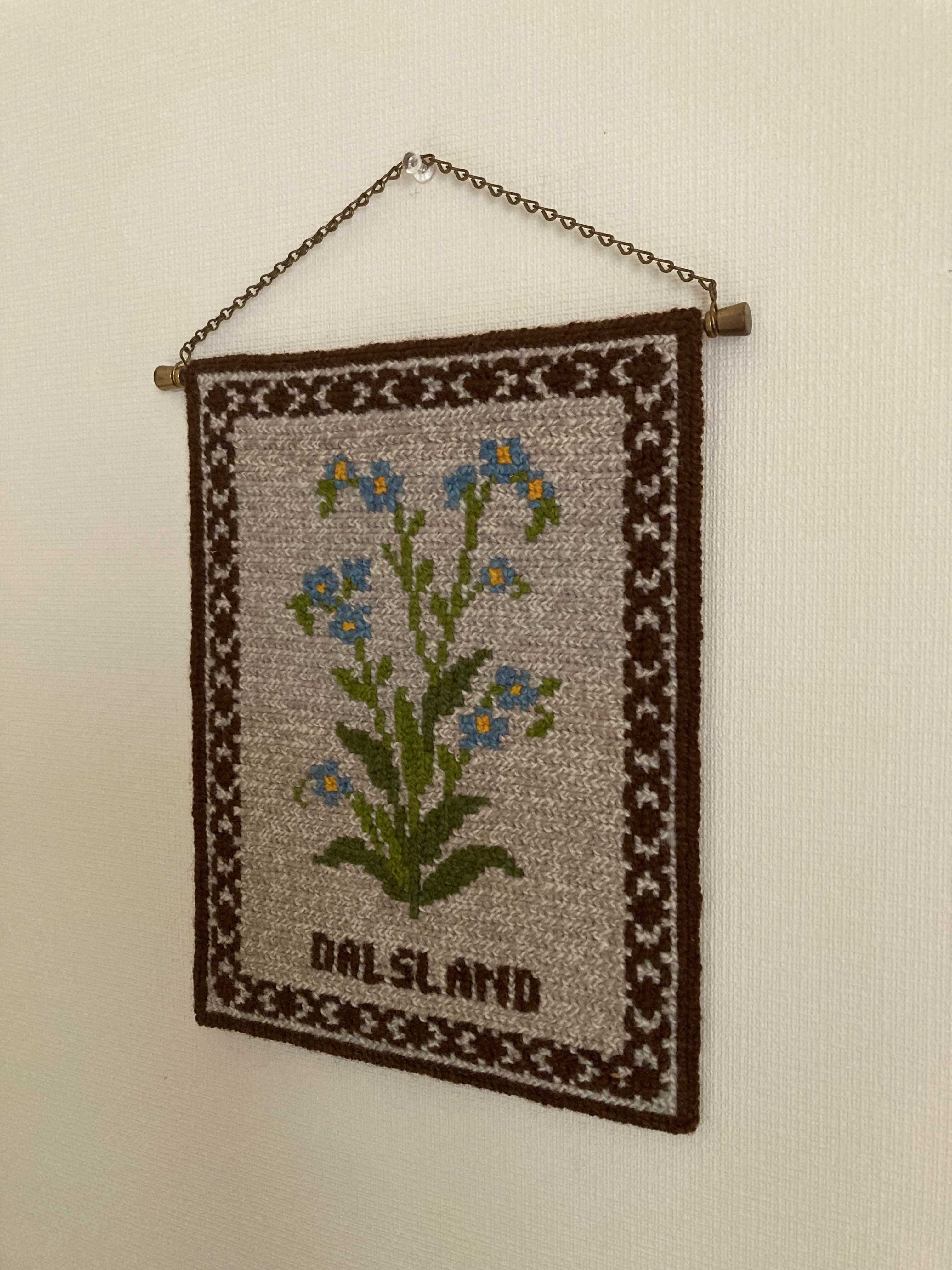 ブルーの小花のネモフィラとグリーンの葉っぱのツヴィスト刺繍が素敵なタペストリーです。