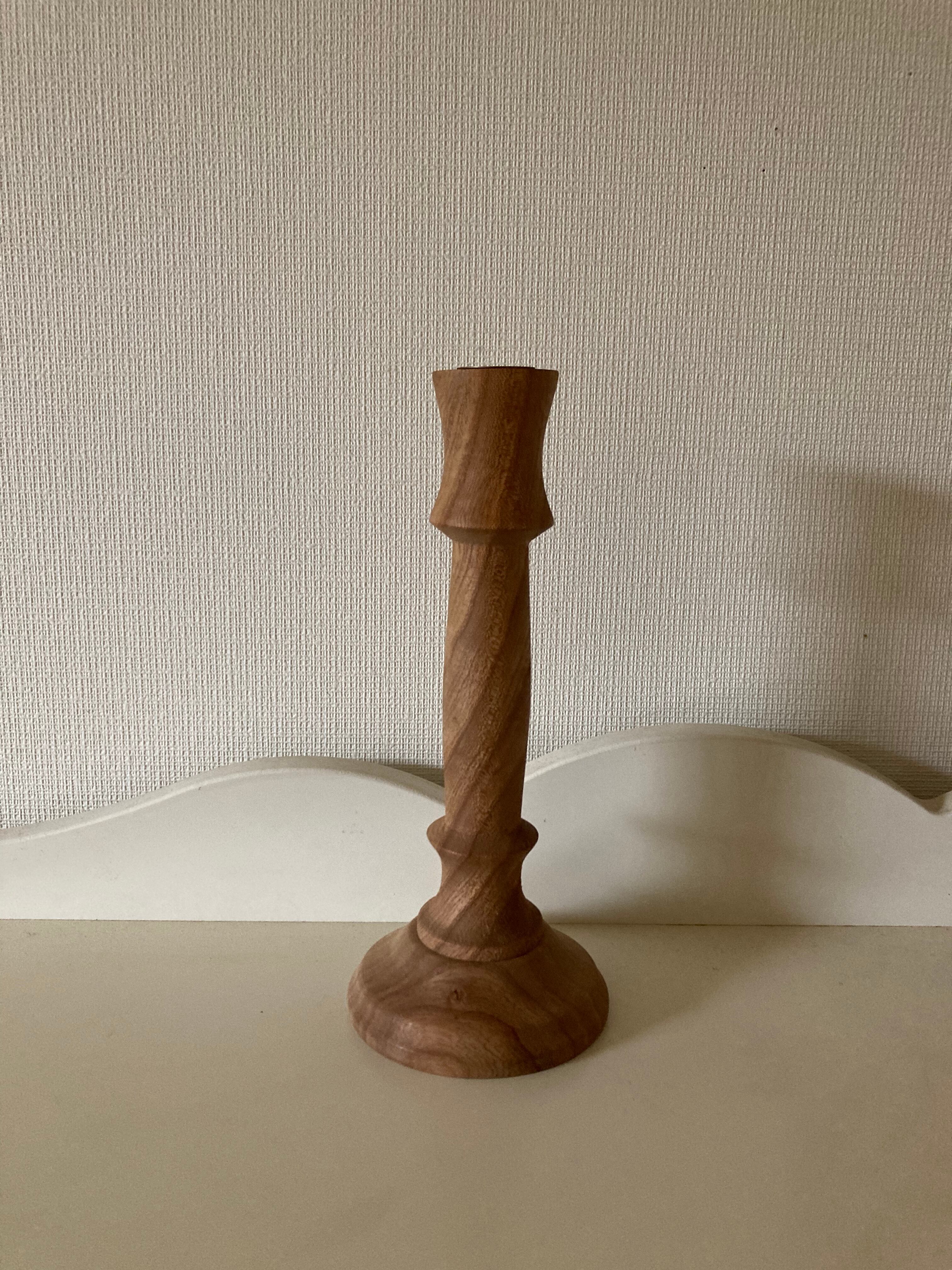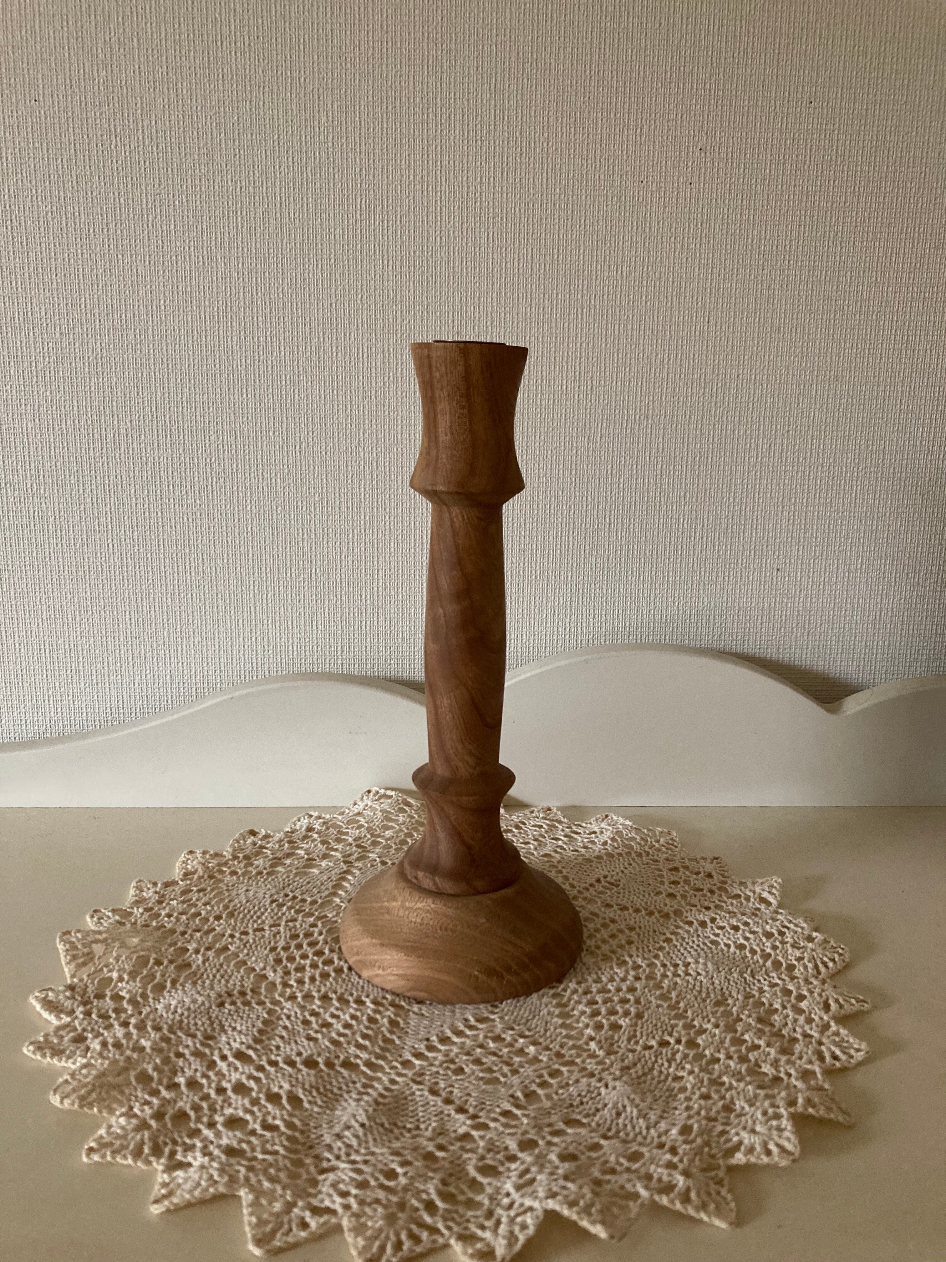 ナチュラルな濃いめの木の色合いが素敵な背の高いキャンドルスタンド。