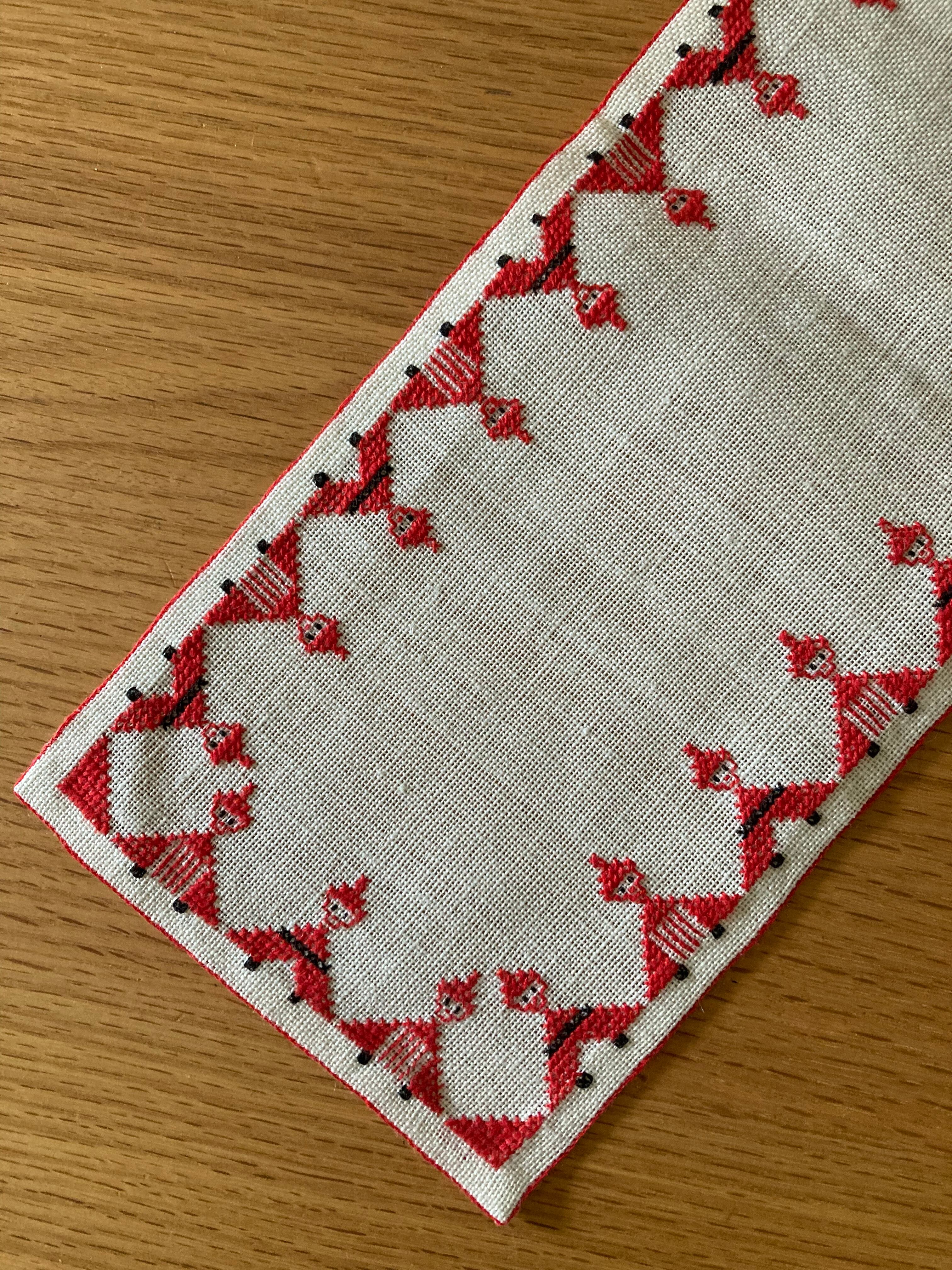 北欧 サンタ刺繍のリネンクロス ヴィンテージ