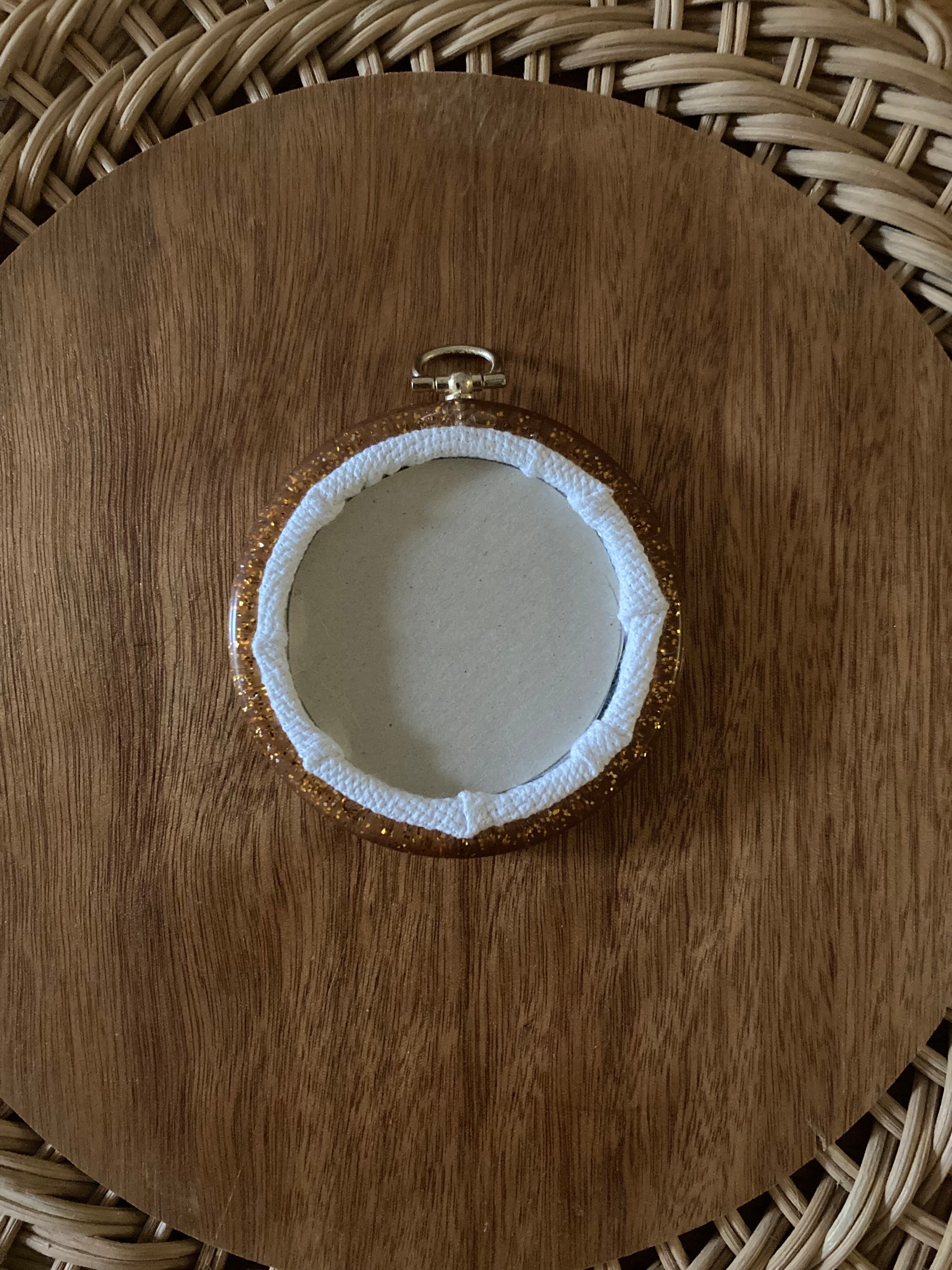 丸額に入ったスウェーデンのヴィンテージ刺繍飾りです。