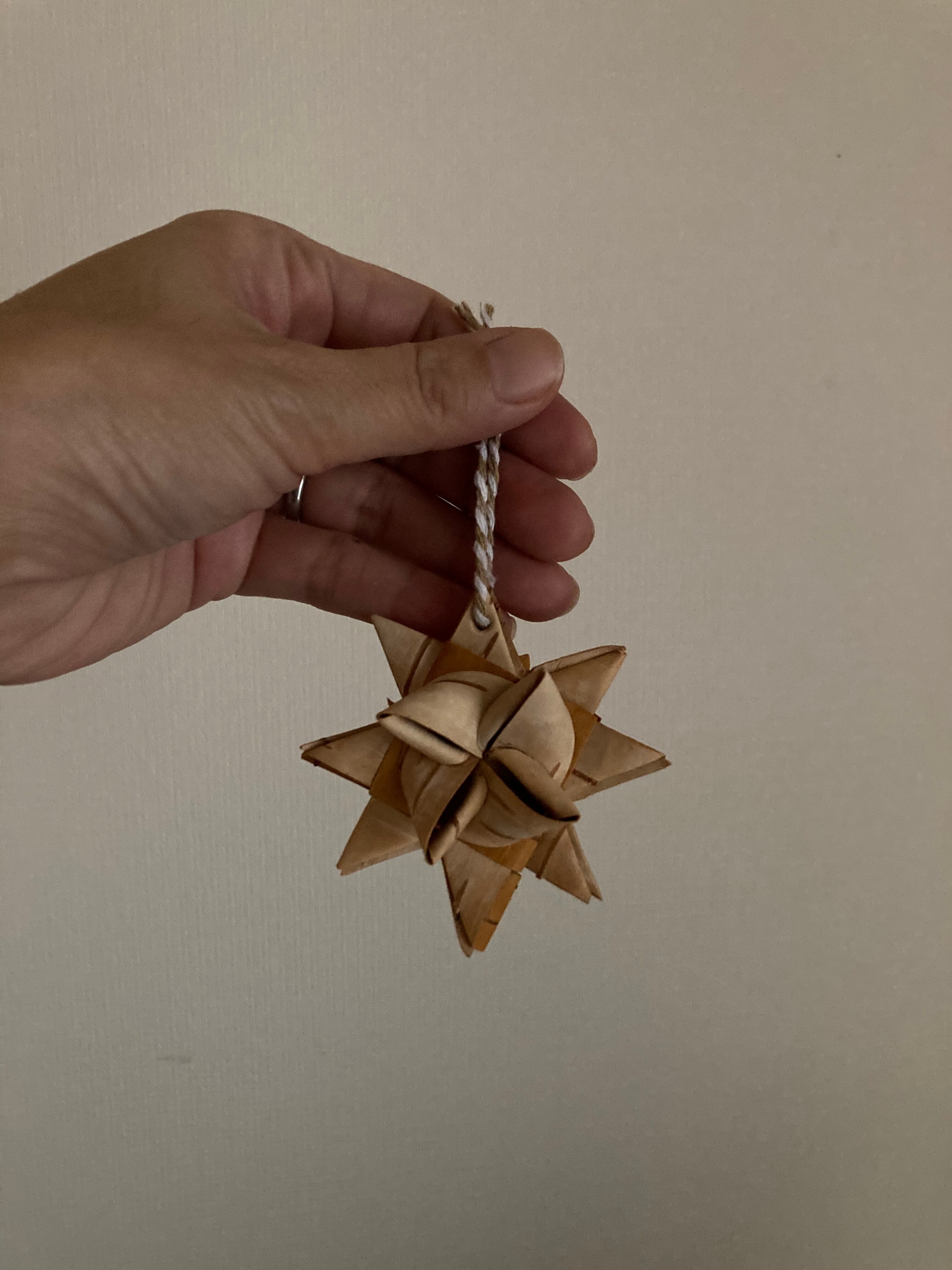 コロンとした形が可愛い、白樺の立体的な星のオーナメント♫