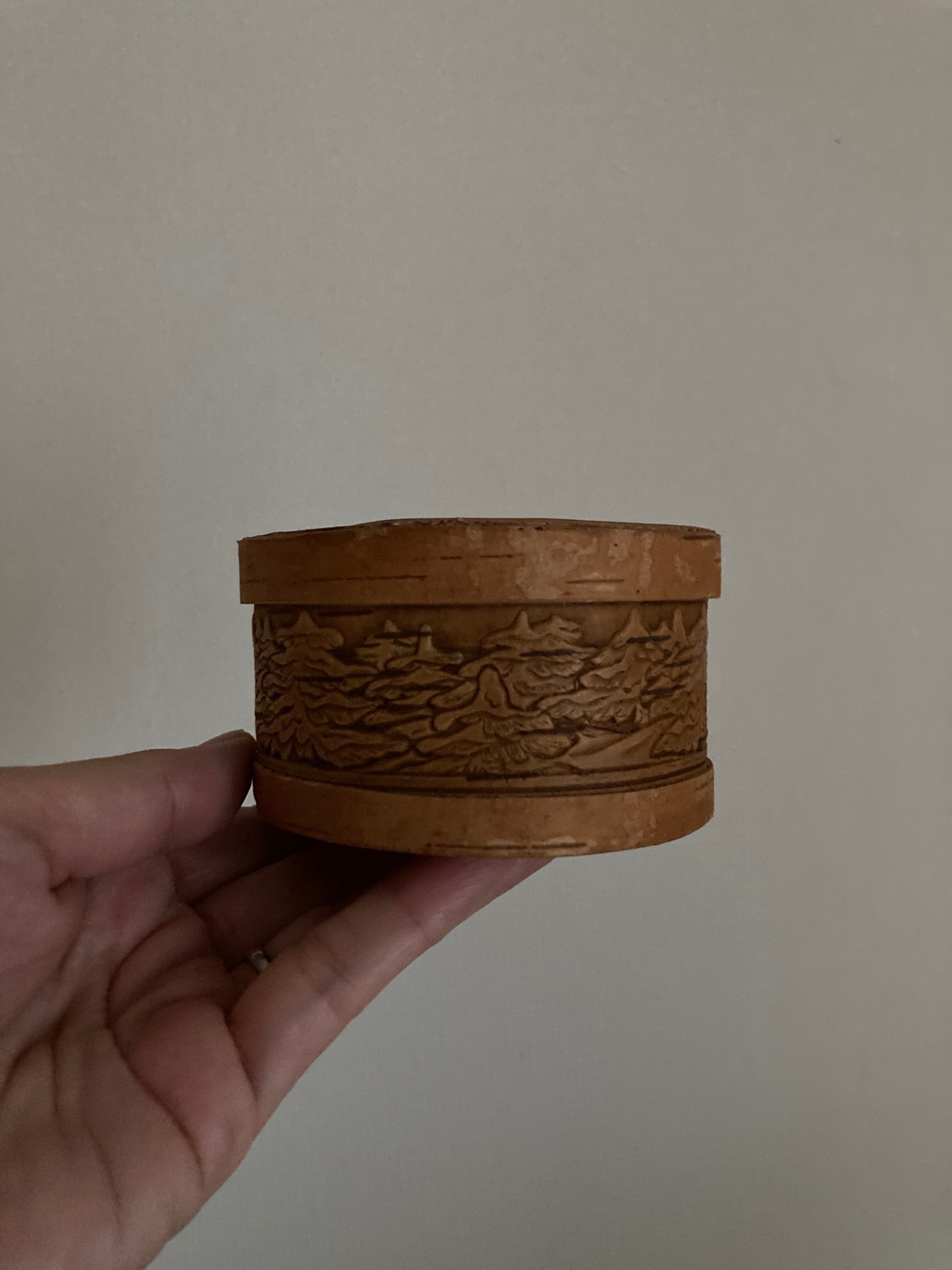 ロシアの白樺細工、ベレスタの型押し丸型ボックスになります。