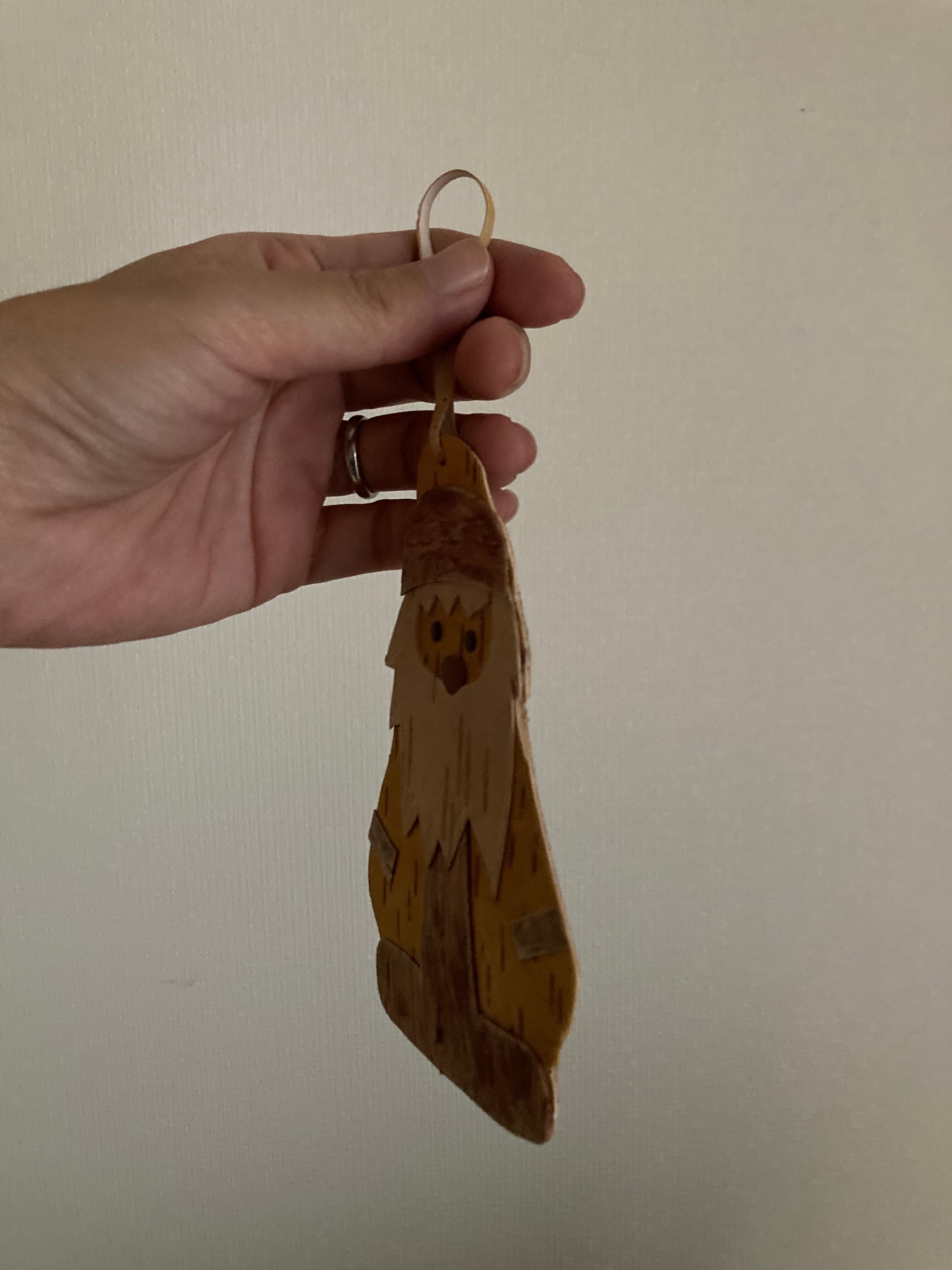 サンタはクッキーみたいな色味がナチュラルで可愛らしいです♫紐も白樺の樹皮になります。
