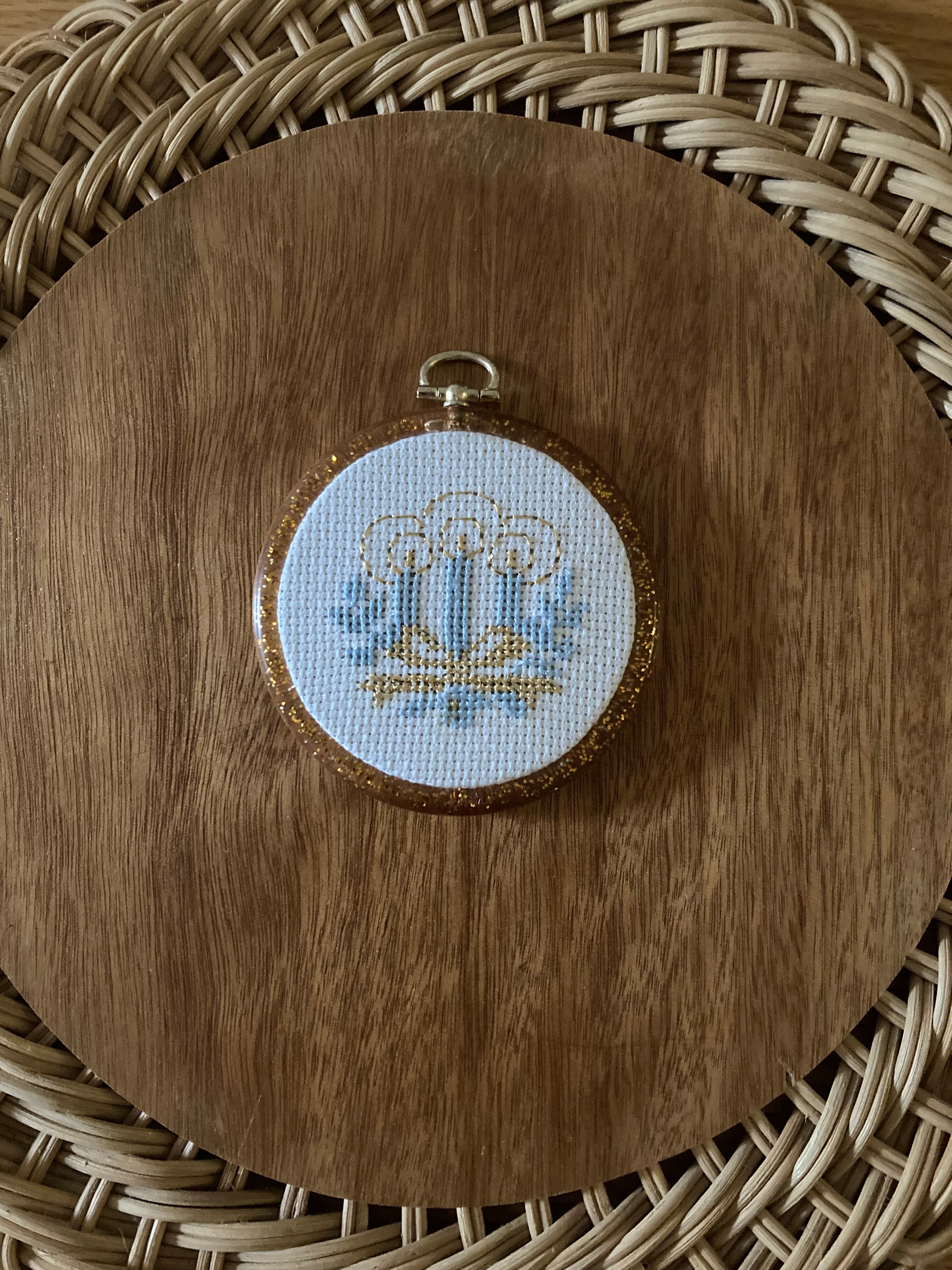 ・北欧 スウェーデン 丸額入りクリスマス刺繍飾り ヴィンテージ