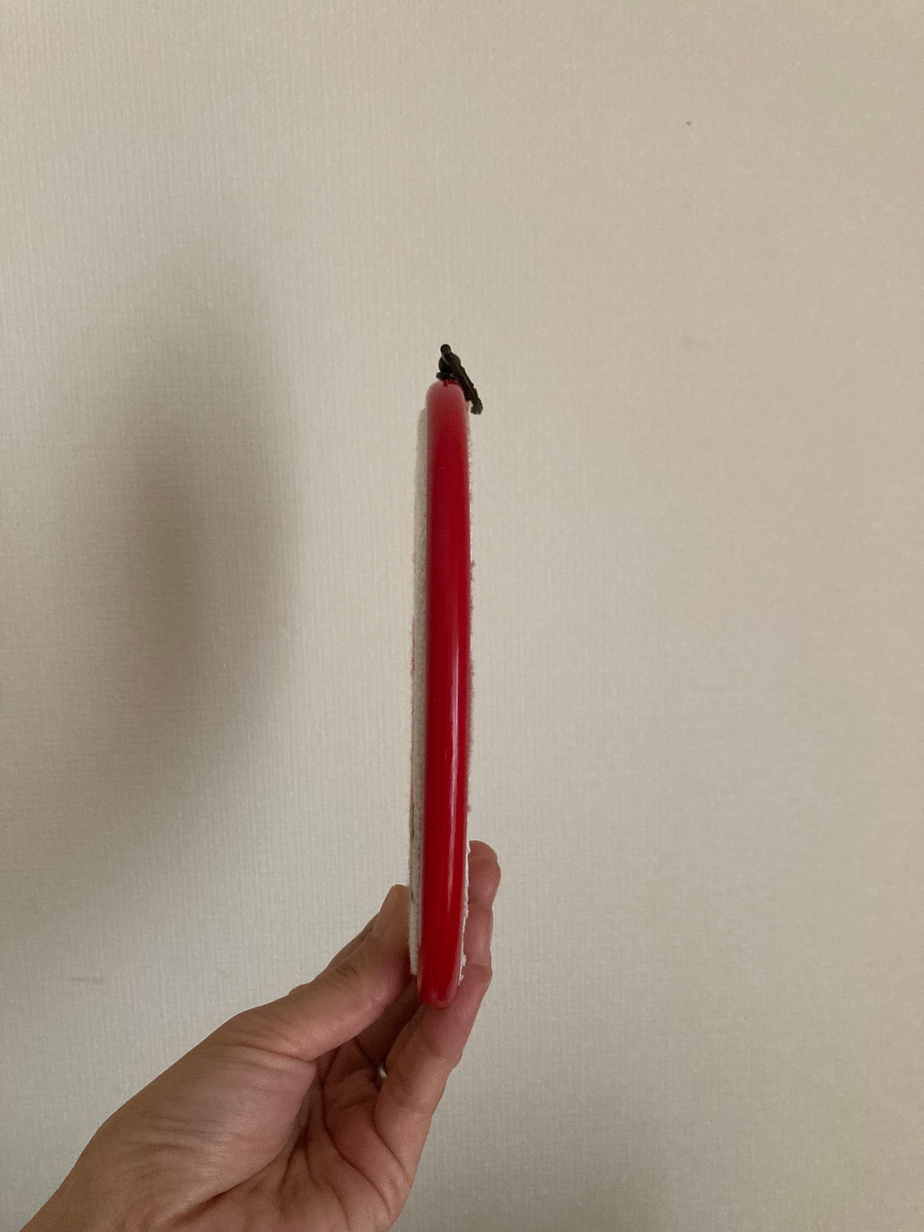 壁にかける金具もヴィンテージ感があり素敵です。赤い額はプラスティック製なので、軽いので、気軽に飾って頂けます♫