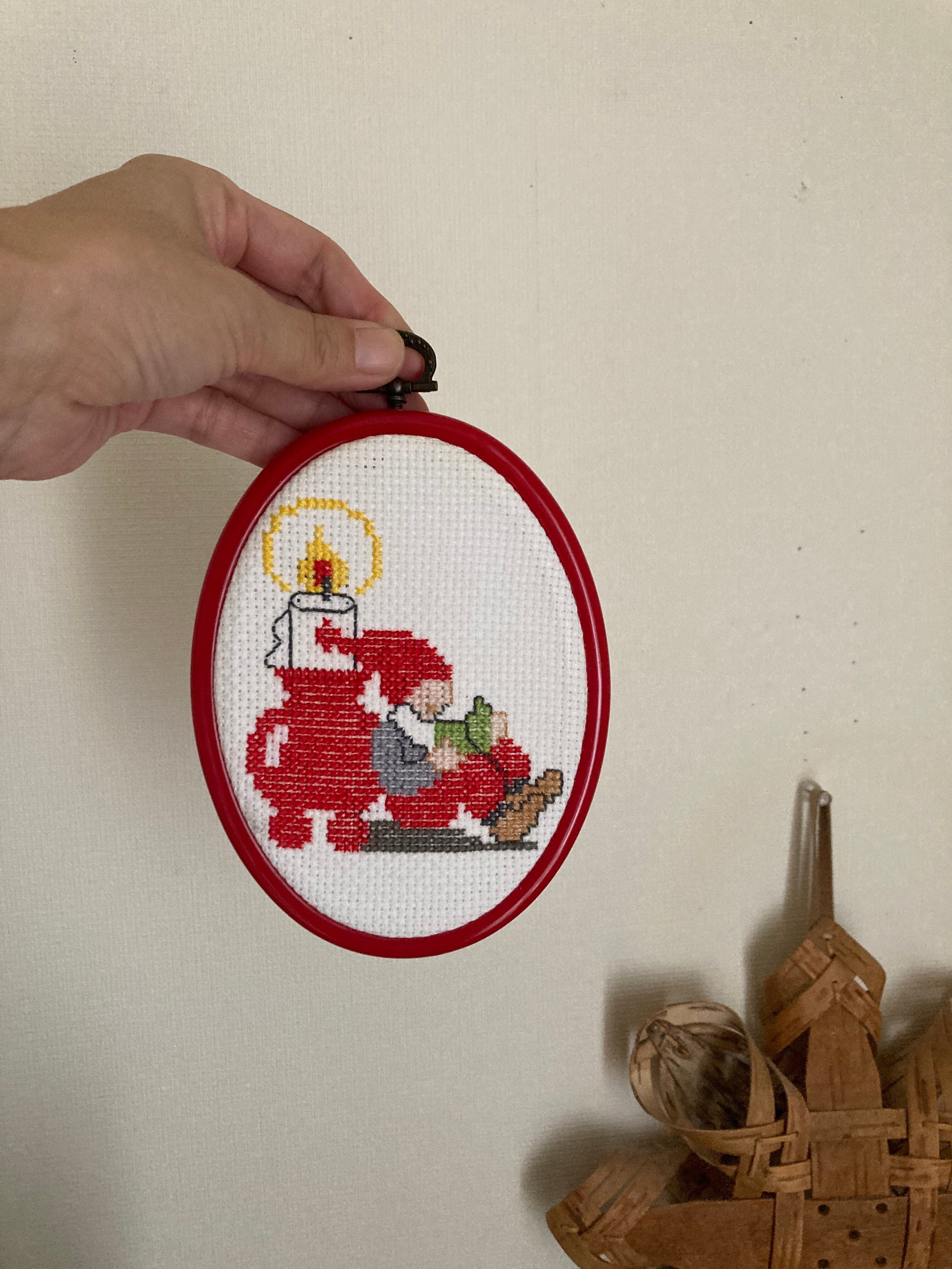 ❤︎ 12/12まで限定30%OFF 北欧 スウェーデン 楕円額入りトムテ刺繍飾り ヴィンテージ