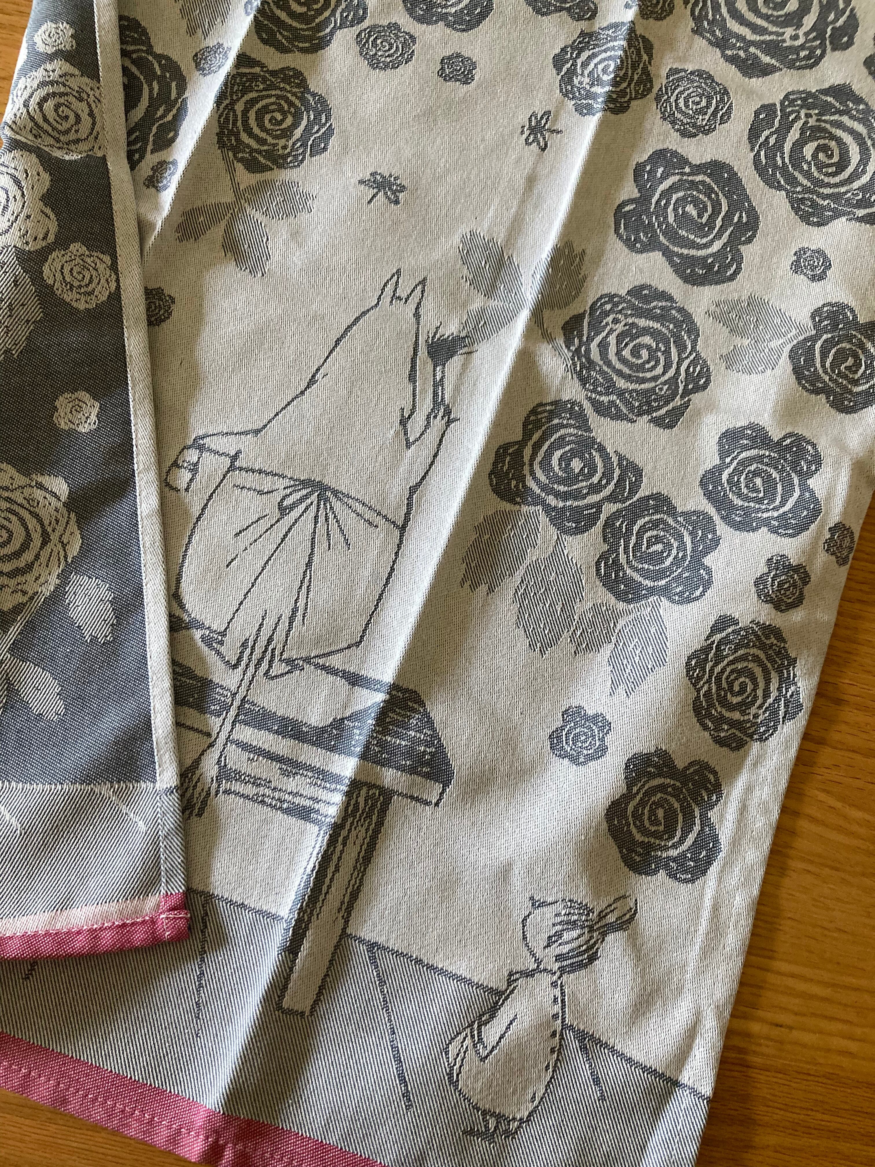 1820年創業の長い歴史と伝統を持つ、フィンランドの老舗ホームテキスタイルのブランド、Finlayson フィンレイソンのローズムーミンママシリーズでは、『ムーミンパパ海へいく』の中の挿絵が使われています。
