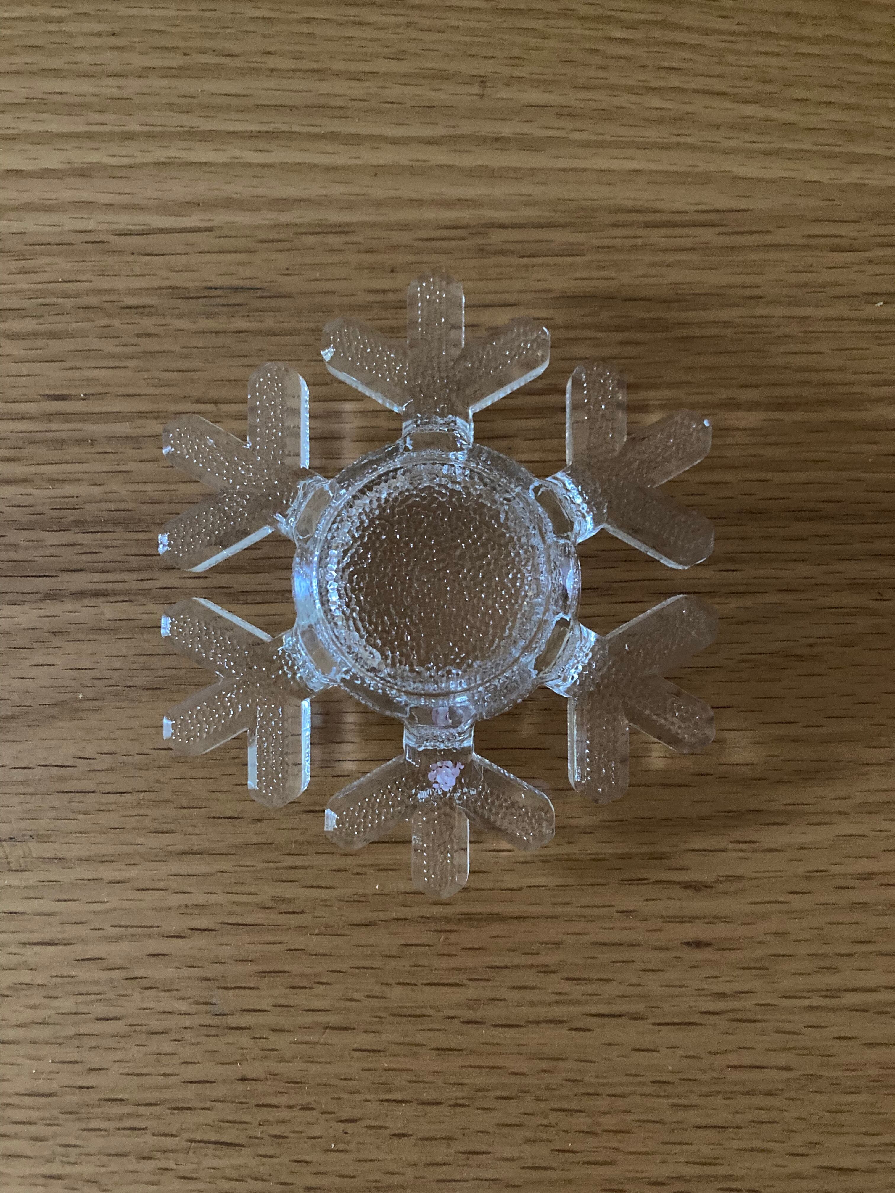 ガラスの雪の結晶の形が素敵なキャンドルホルダー。