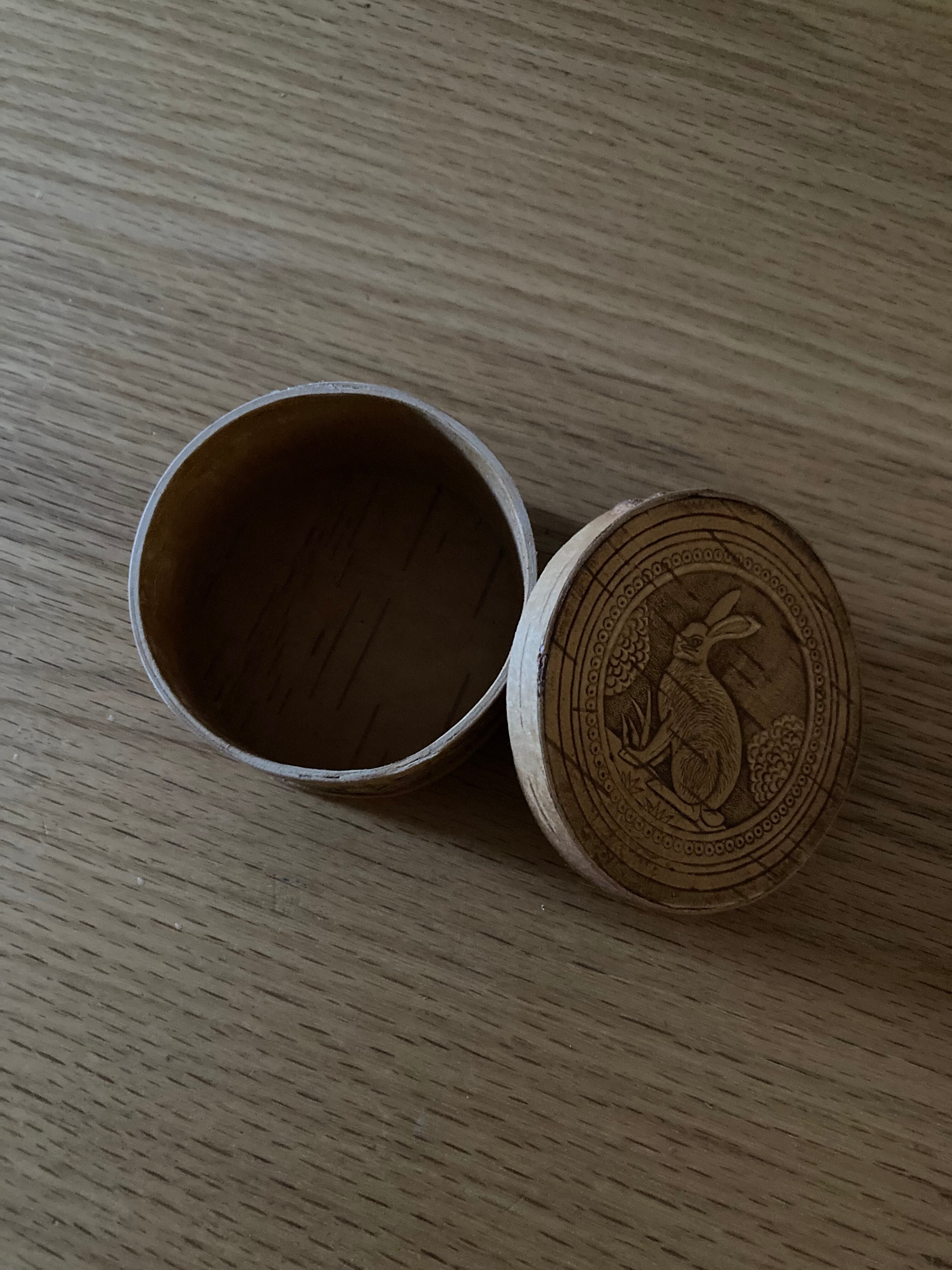 ♫特別価格♫ロシア 白樺細工 ベレスタ ウサギの型押し丸型ボックス