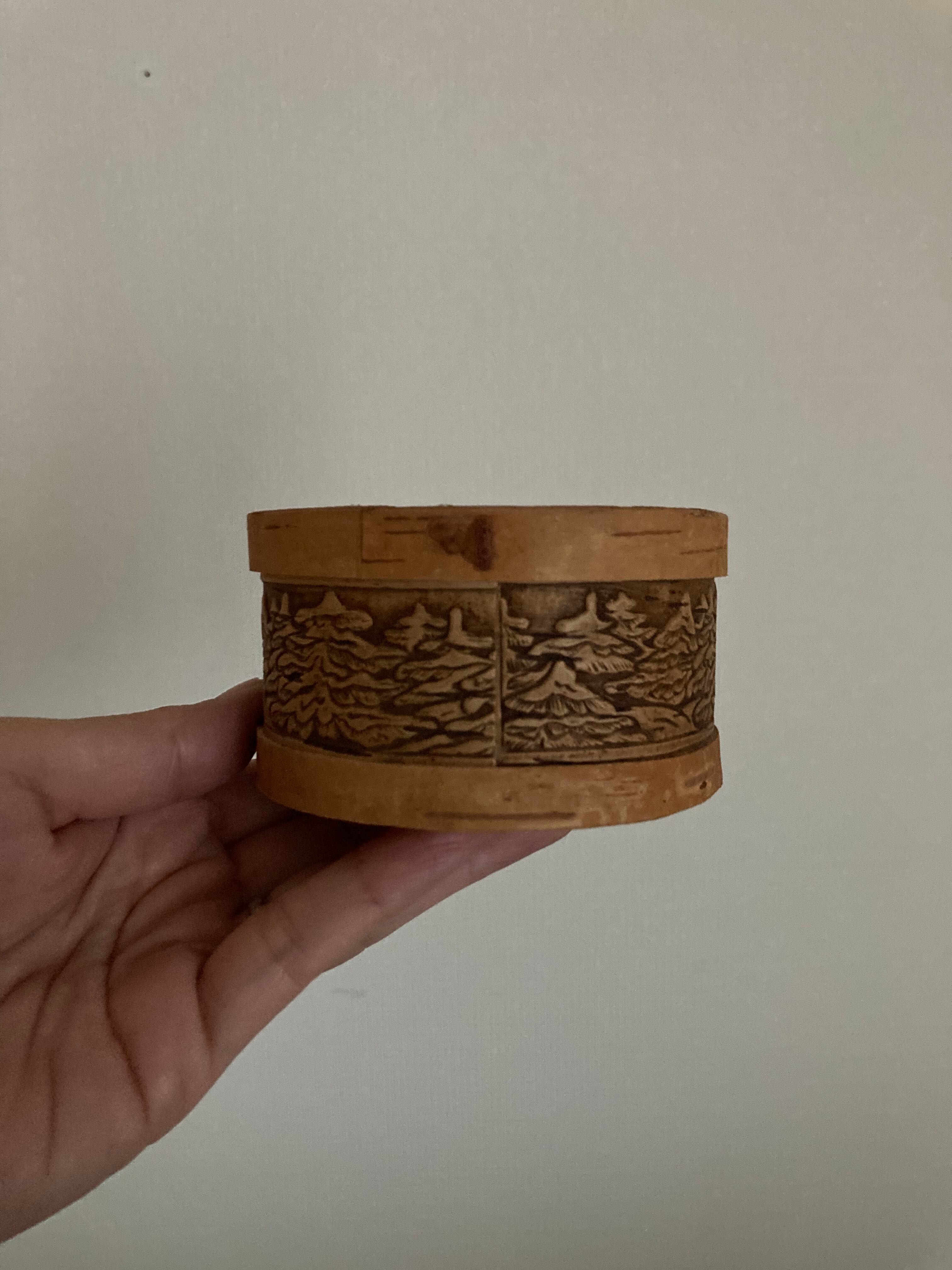 ロシアの白樺細工、ベレスタの型押し丸型ボックスになります。