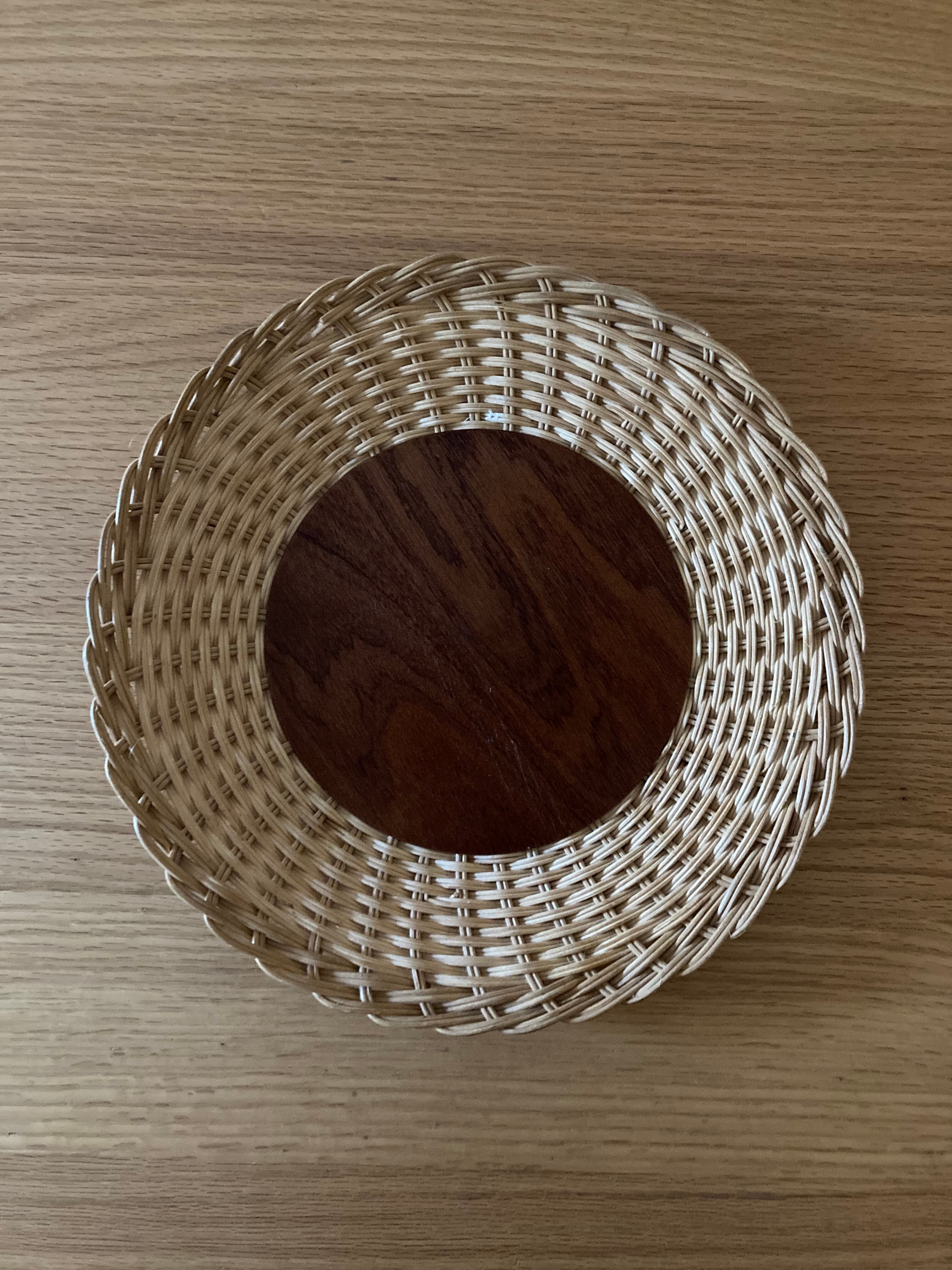 北欧 スウェーデンのヴィンテージ の 籐とチークのトレイになります。